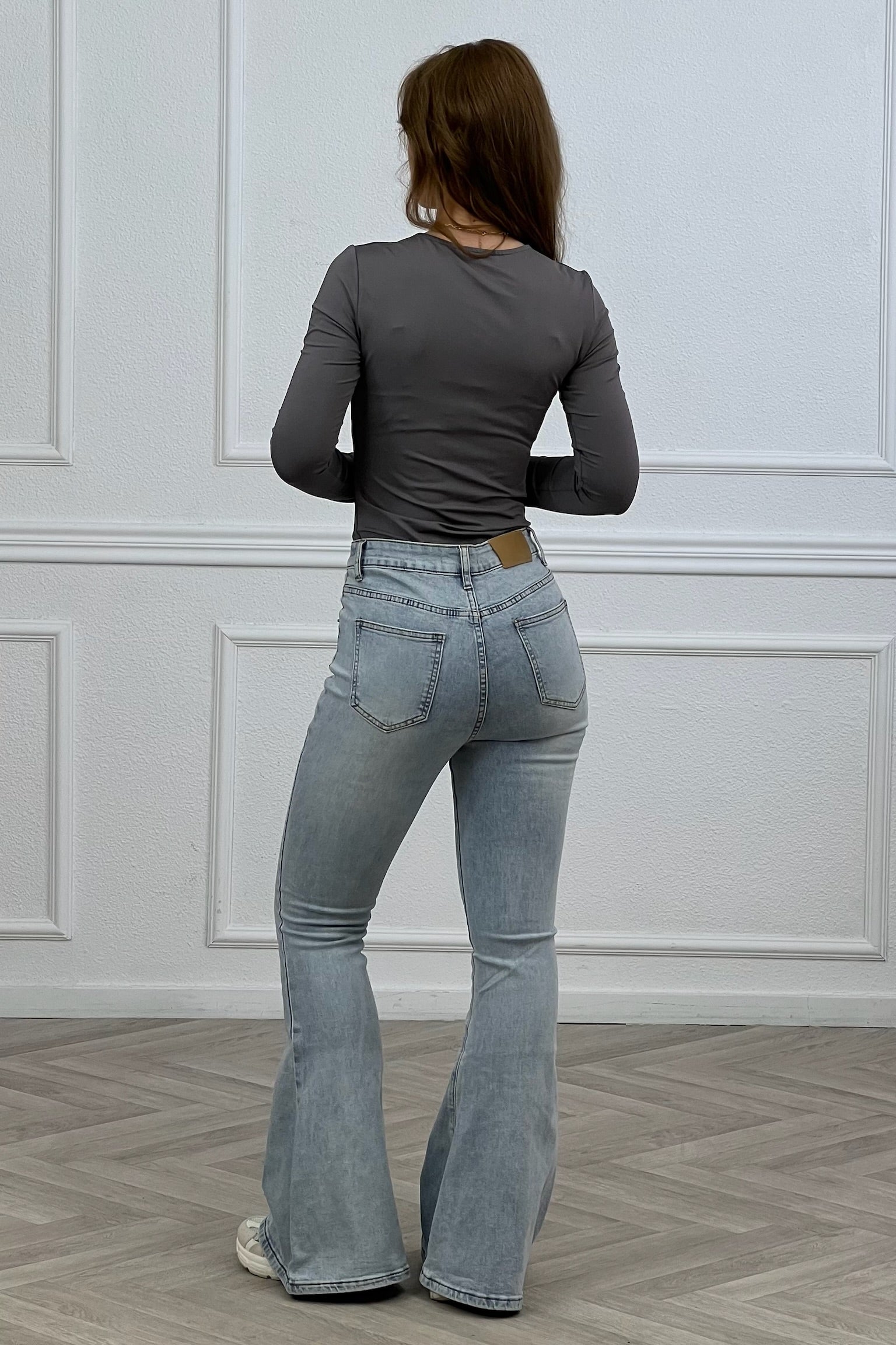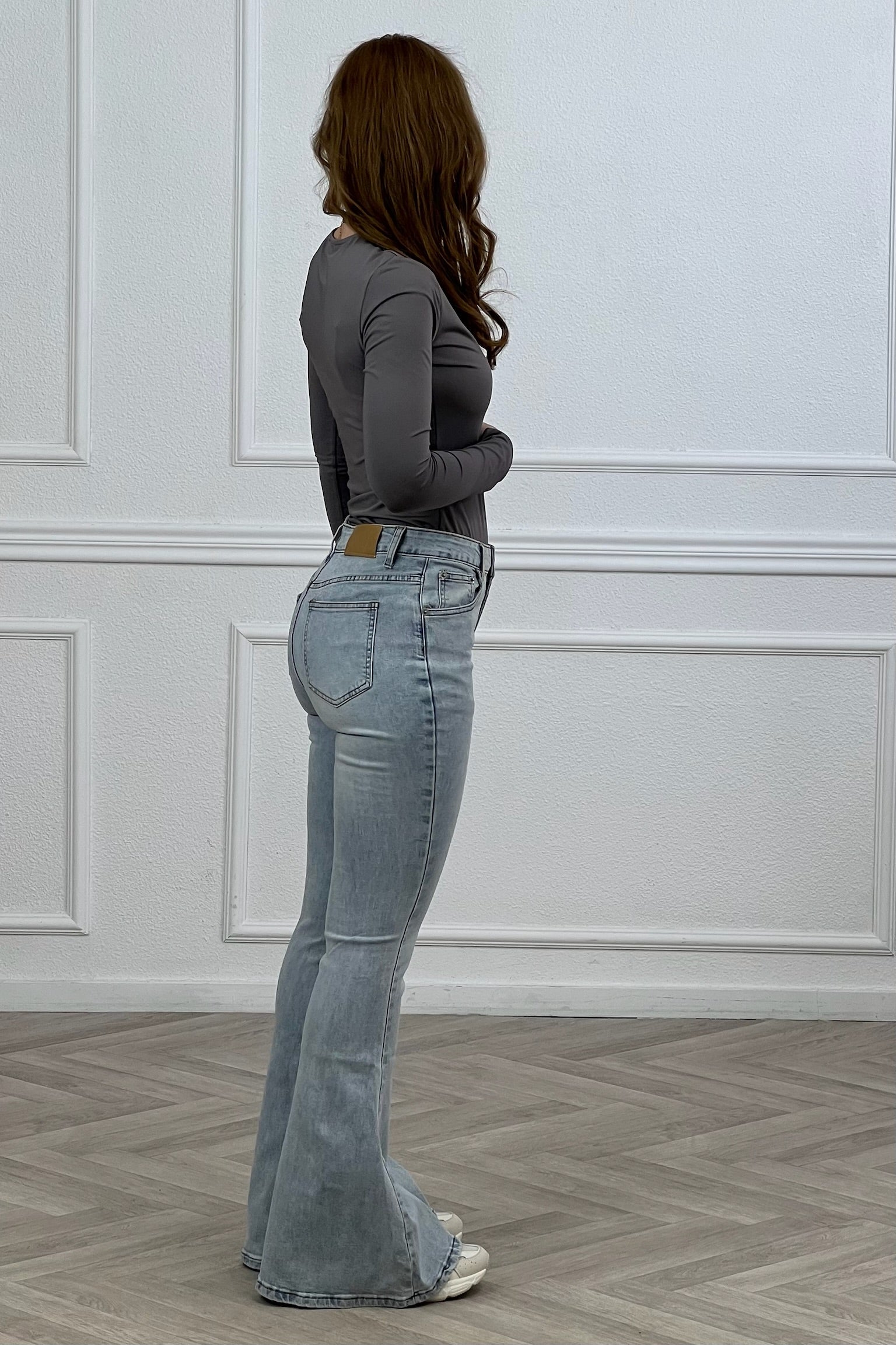 Deze perfecte flared jeans is eindeloos te combineren! Shop hem nu in denim blue!