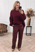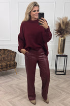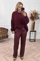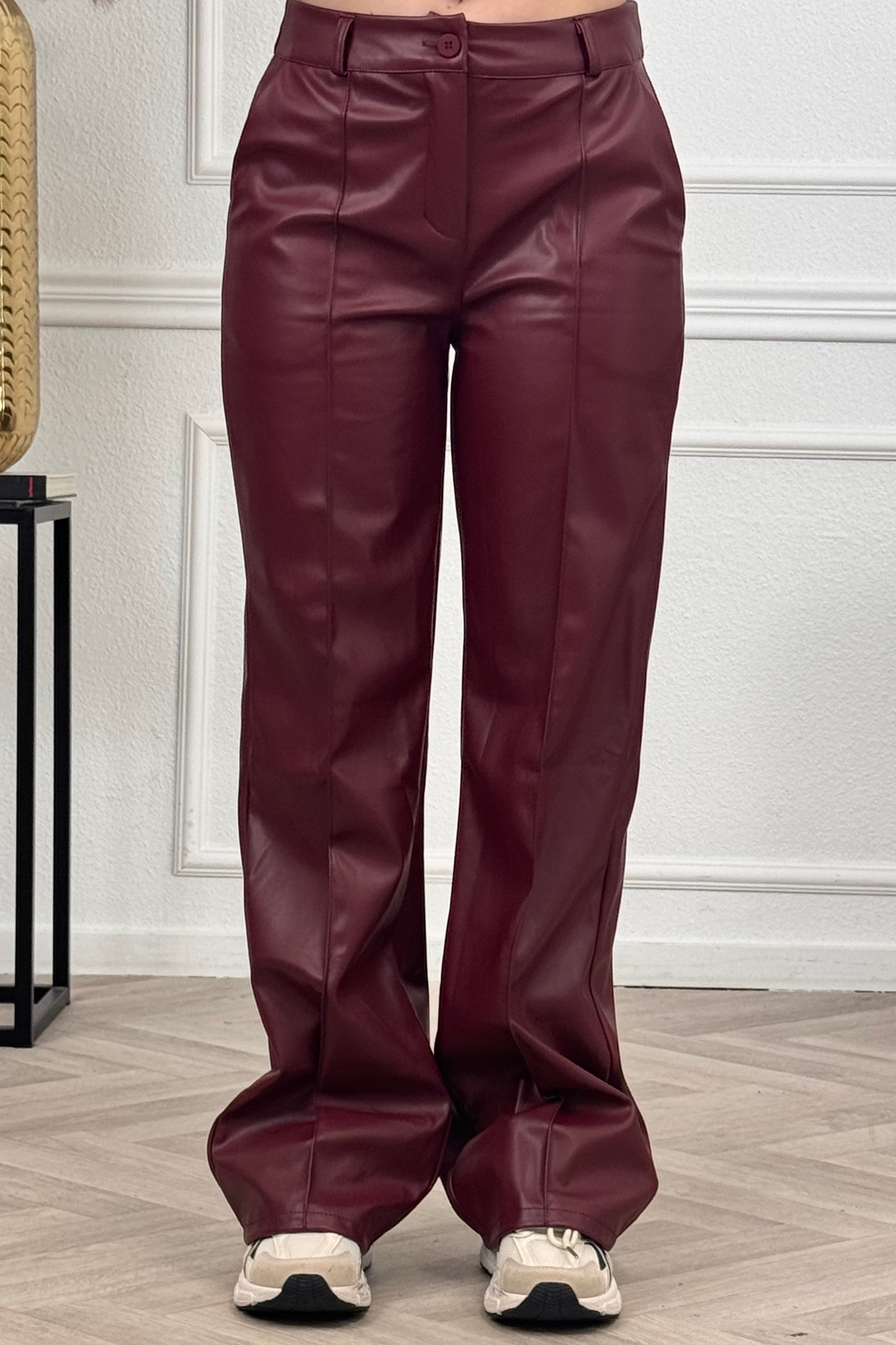 Onze nieuwe wide leg leather pants, onderdeel van onze nieuwe eigen luxury collectie, shop je nu online! Shop hem in bordeaux!