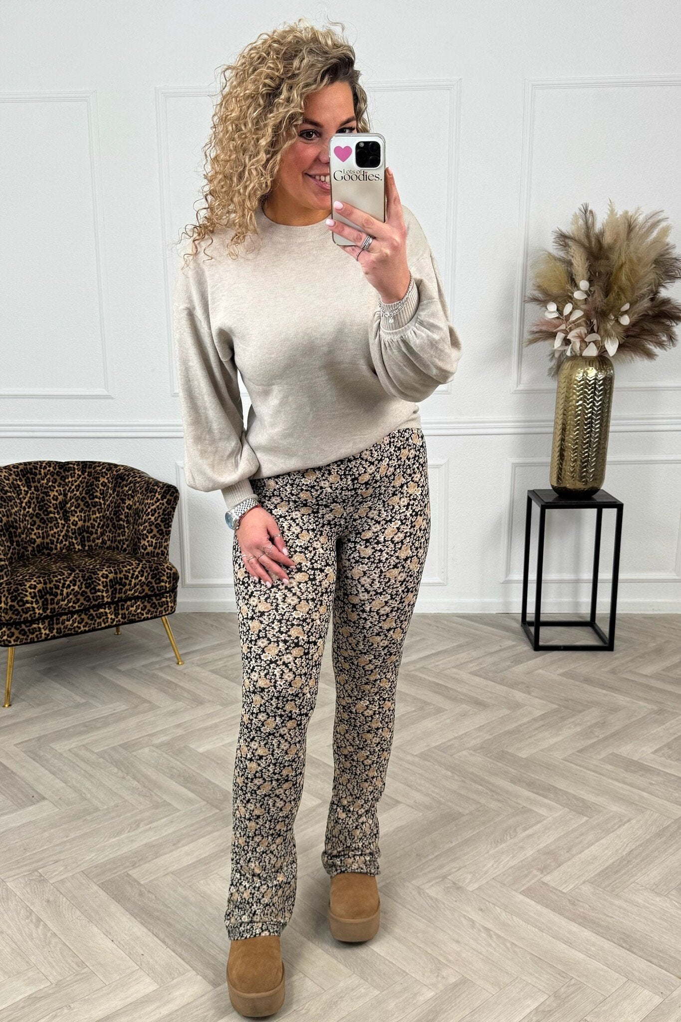 THE PERFECT MATCH! Ideaal voor tall girls!! Deze super leuke flared pants heeft een print, hoge taille een elastieken band rond de taille en is super stretchy. Style deze broek met een oversized trui & you’re ready to go!