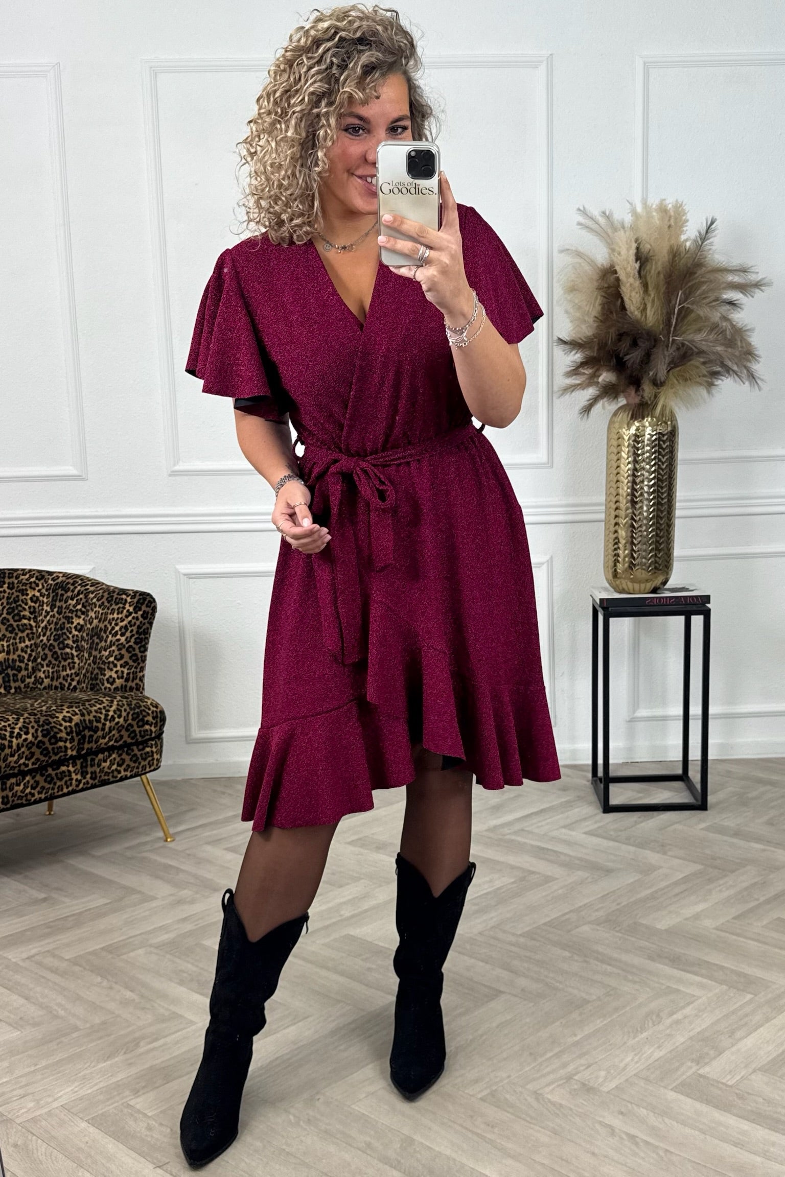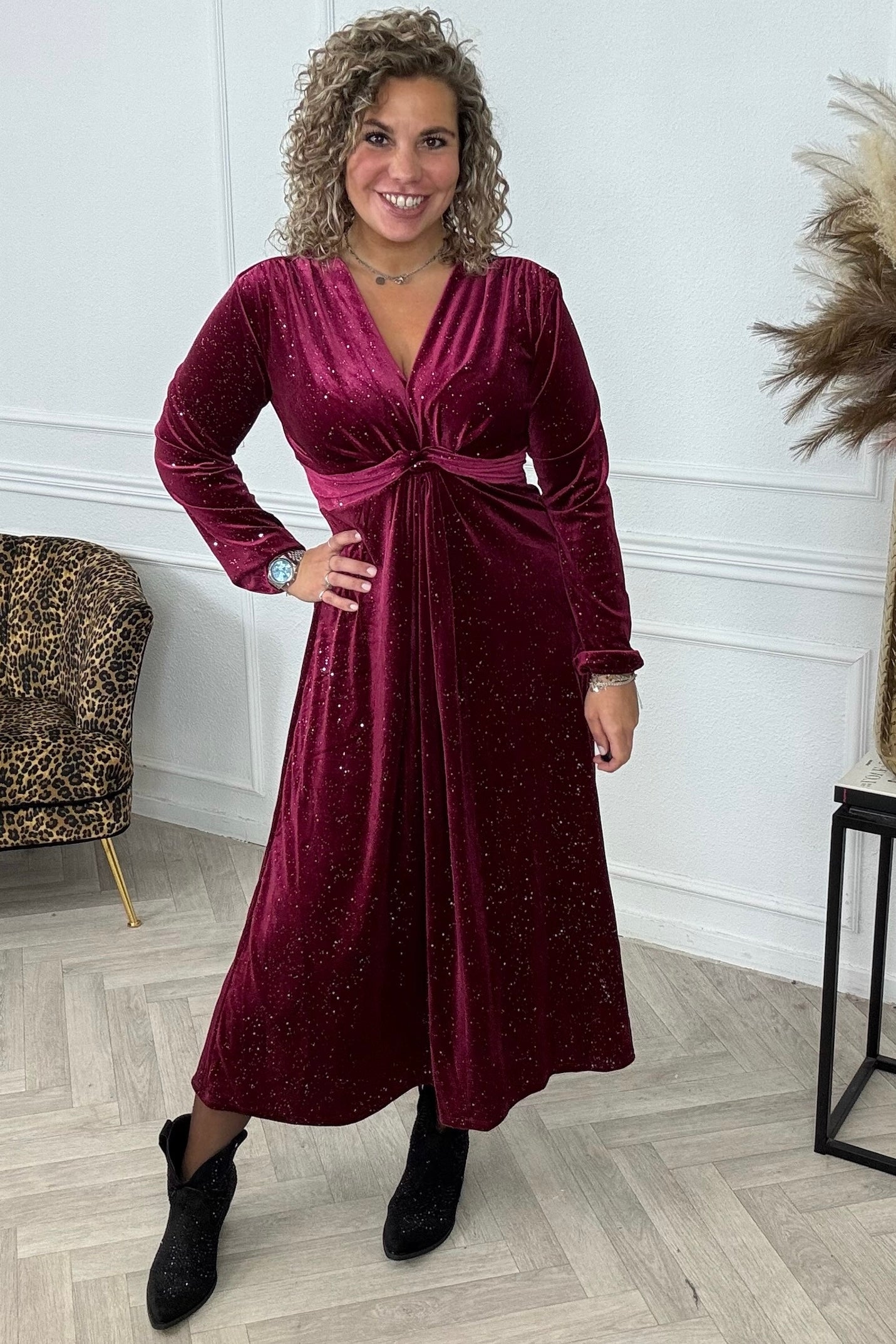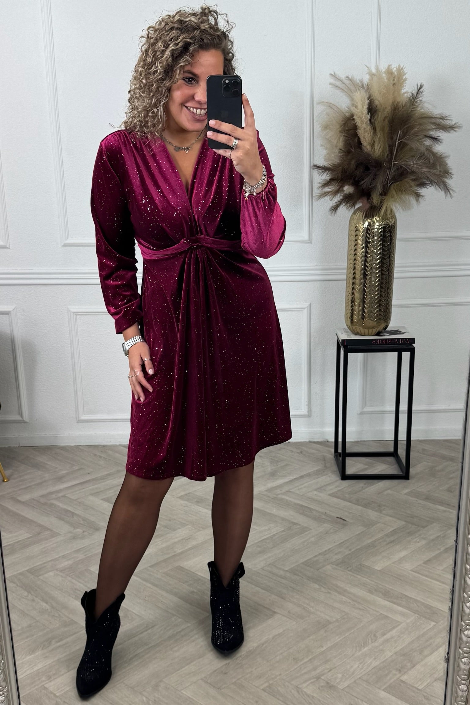 Short Knotted Velvet Sparkle Dress - Bordeaux