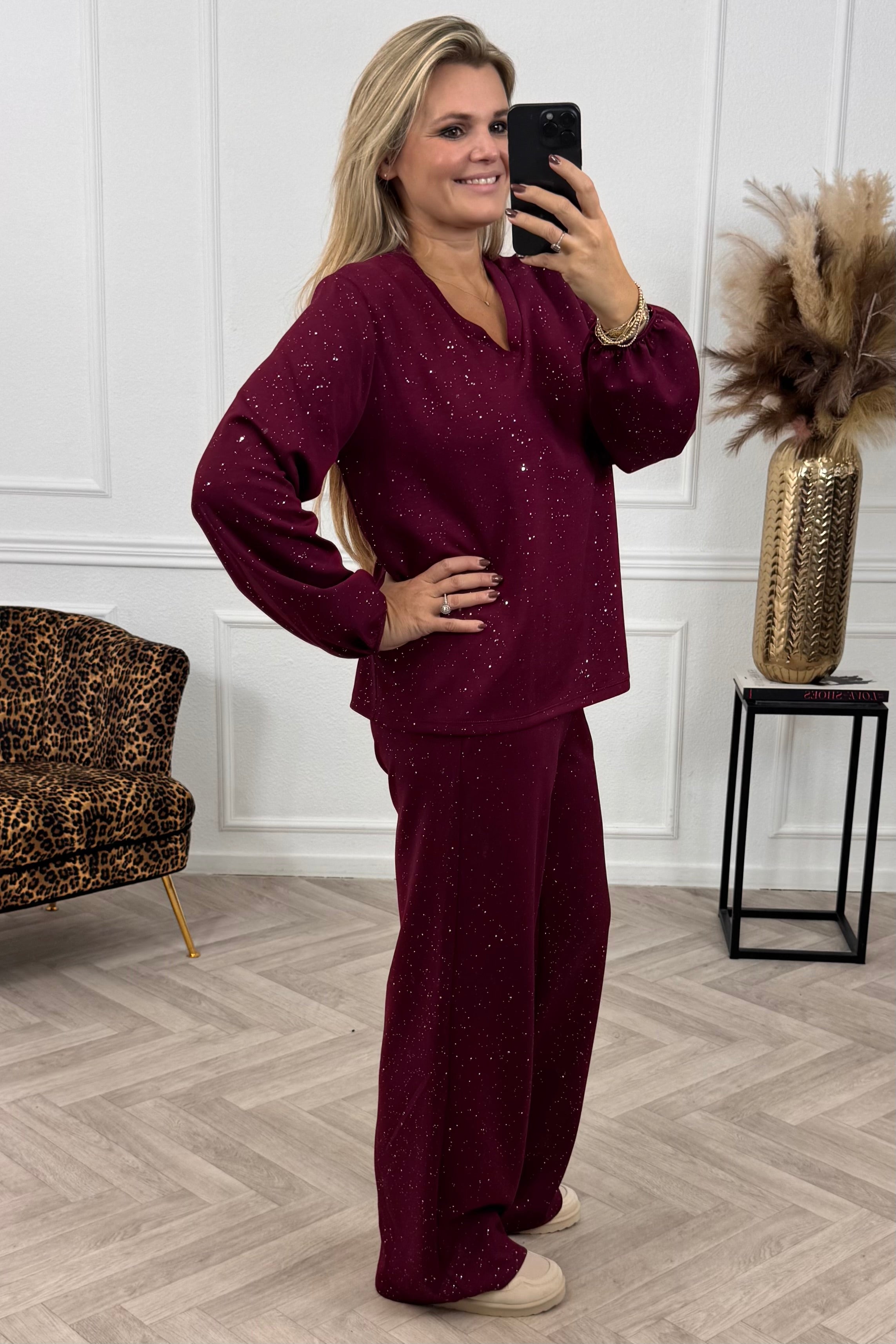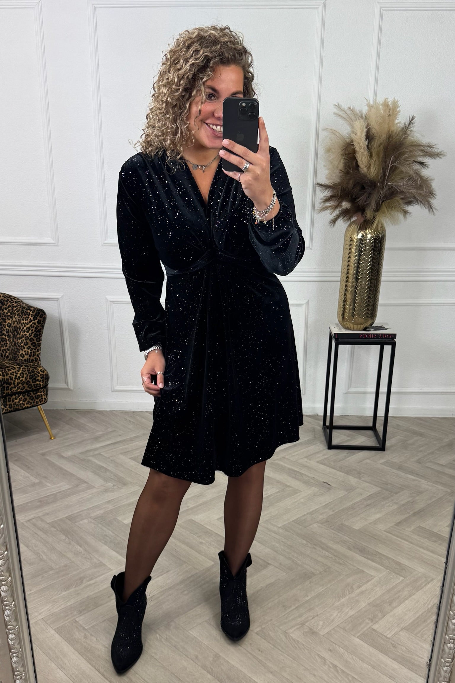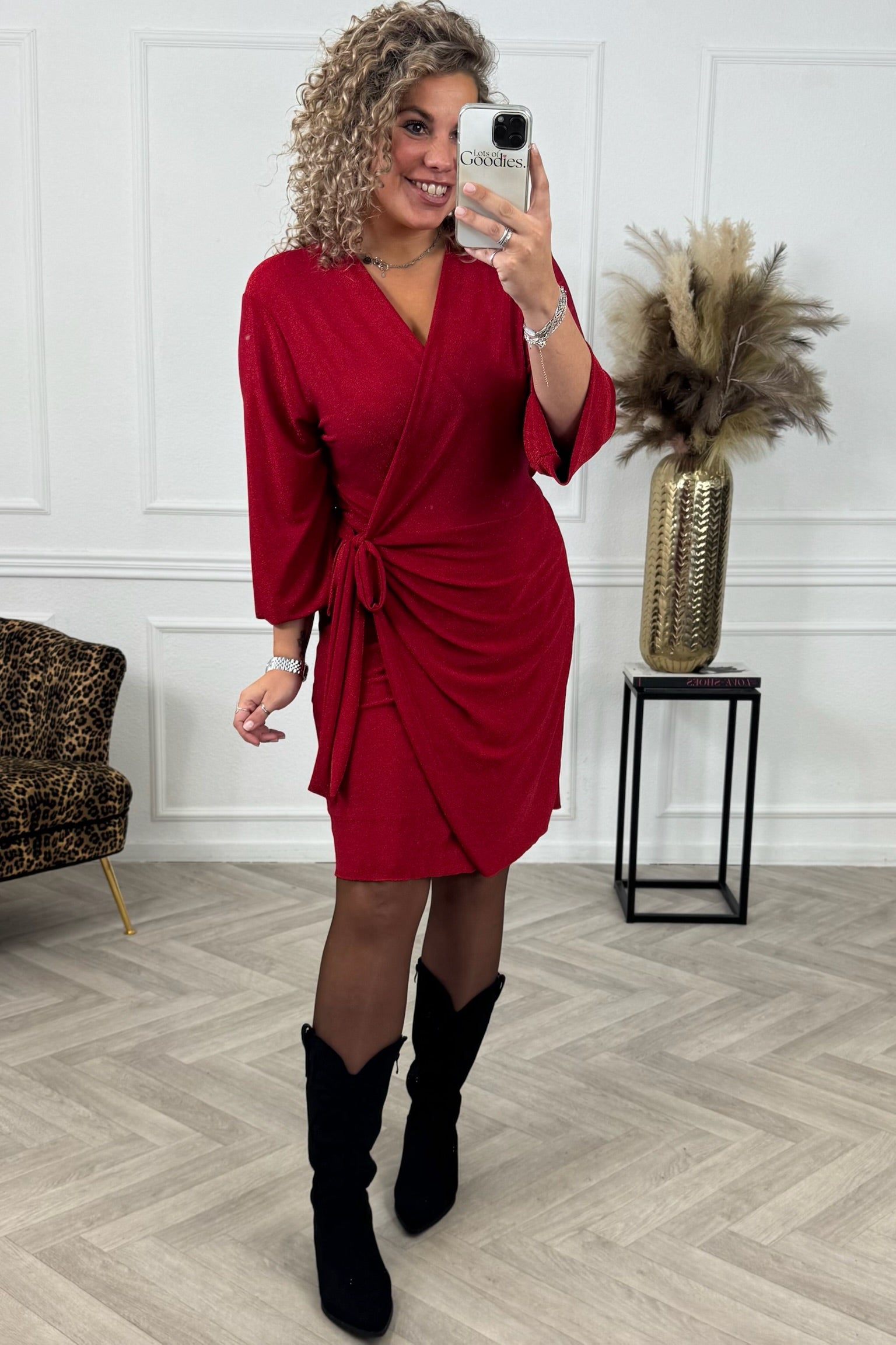 Short Knotted Velvet Sparkle Dress - Bordeaux