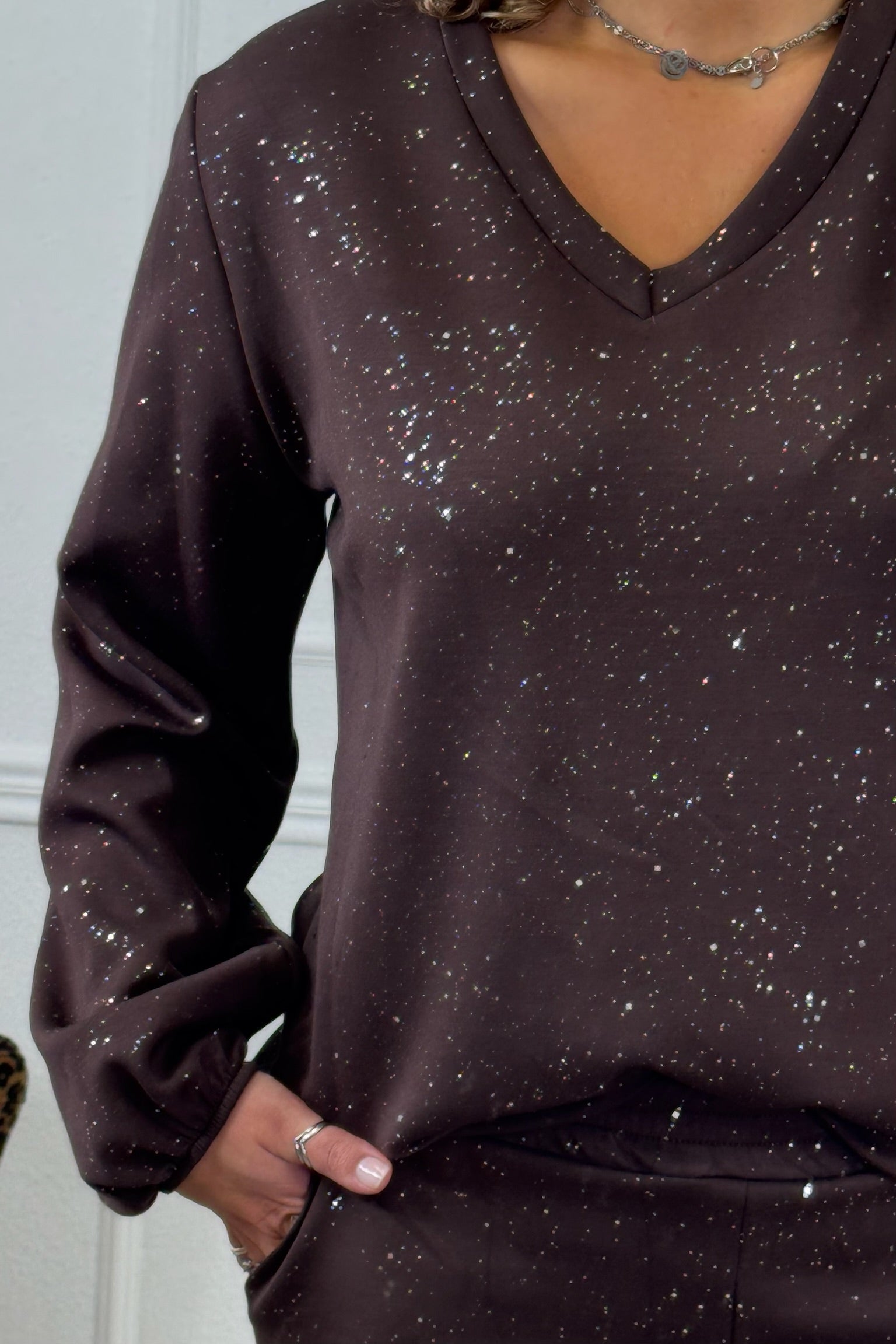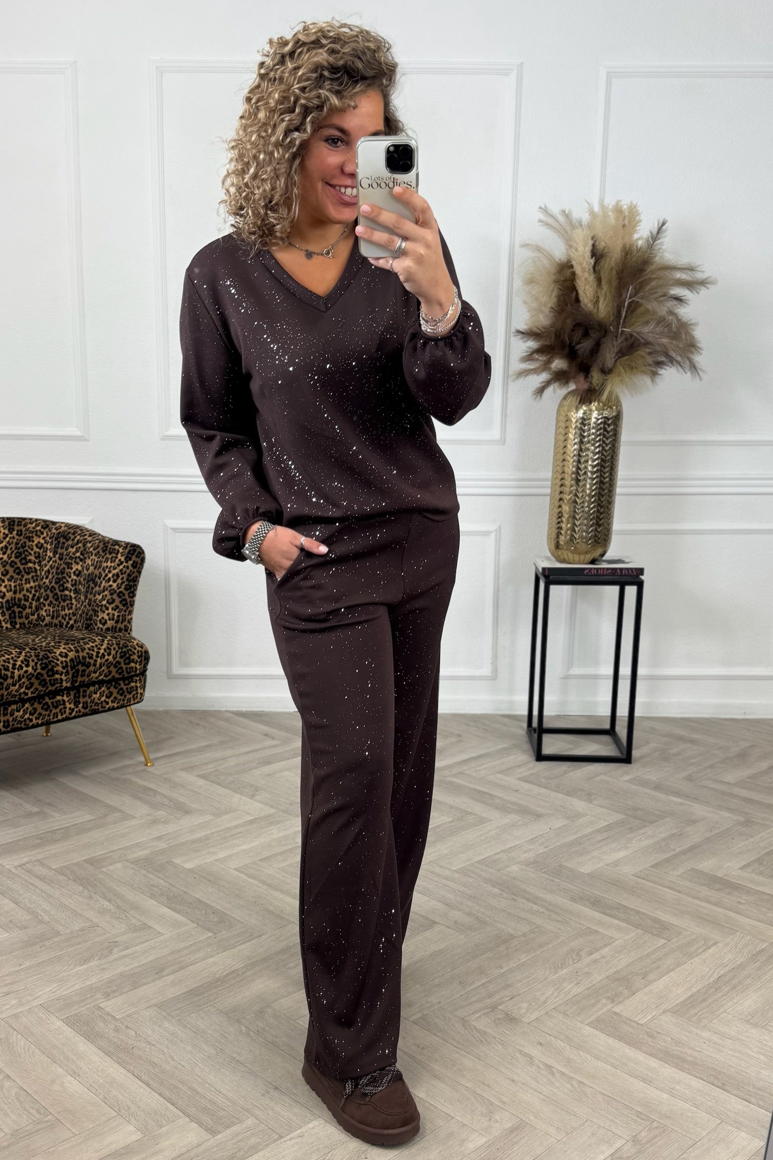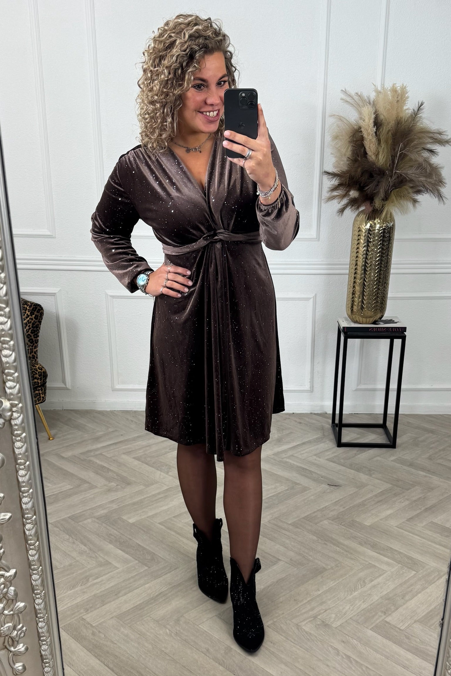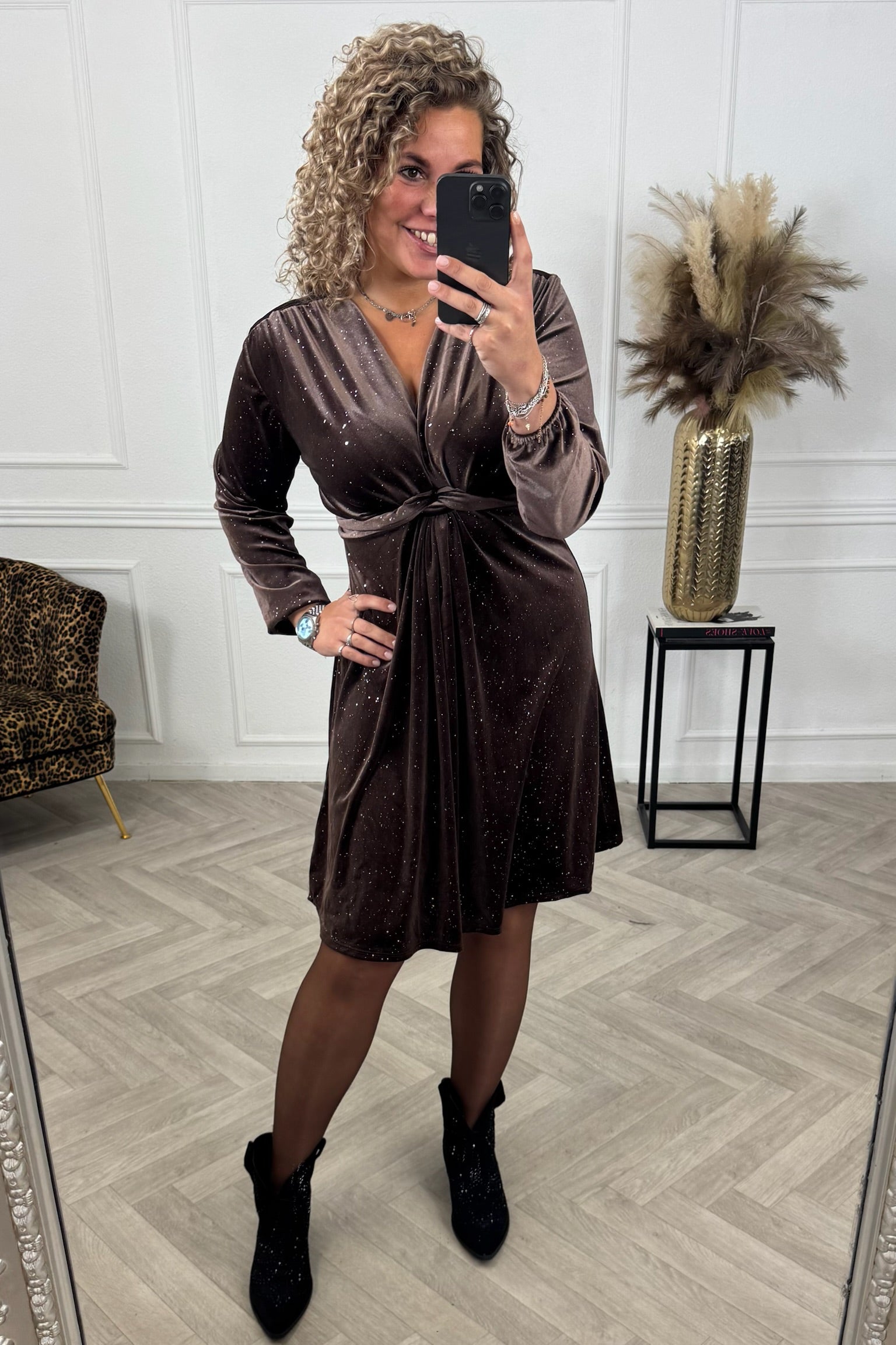 Ivy Glitter Longsleeve Dress - Dark Brown