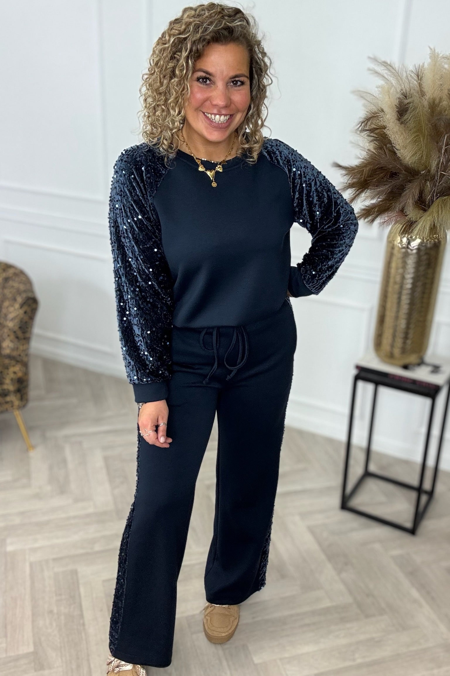 Goodies Wide Leg Glitter Striped Jeans - Blue