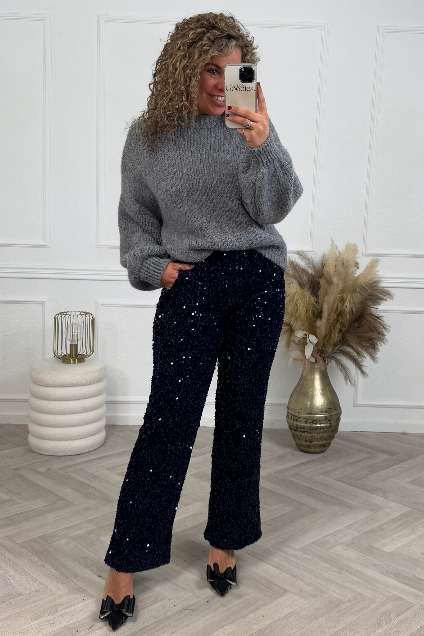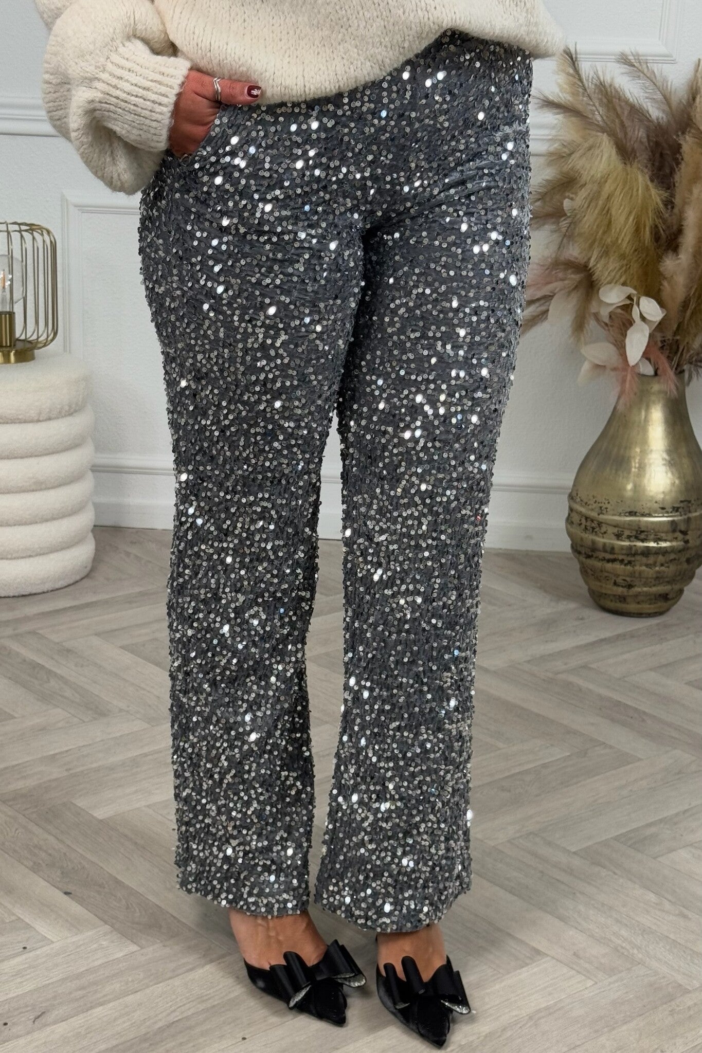 Curvy Sara Sequin Jumpsuit - Silver/Black
