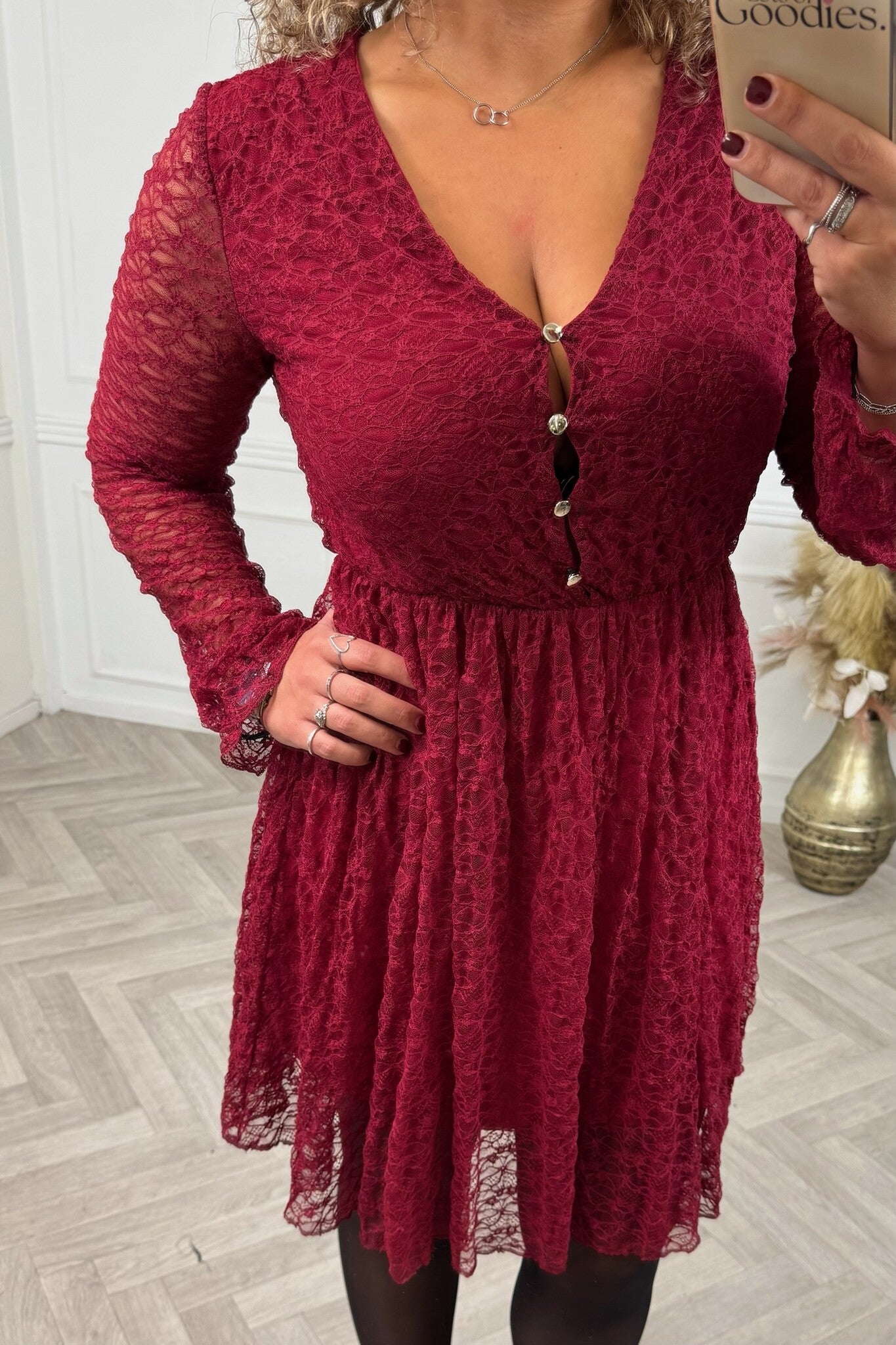 Curvy Sara Sequin Jumpsuit - Bordeaux/Black