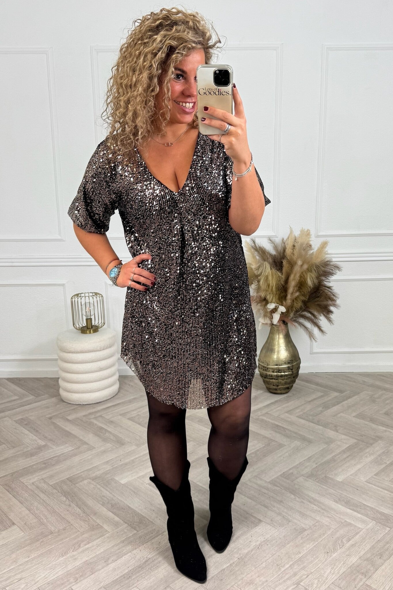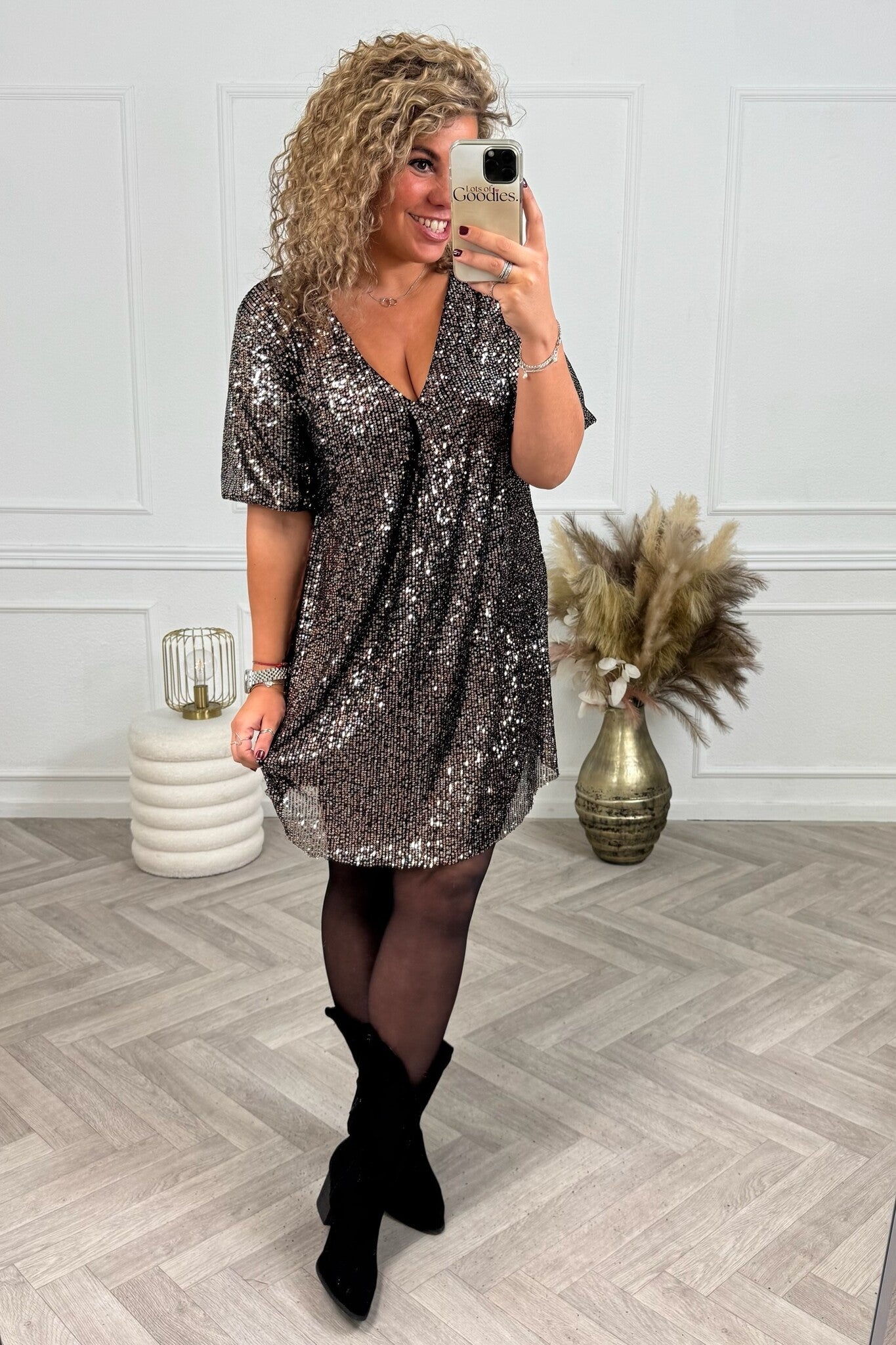 Regular Sara Sequin Jumpsuit - Champagne/Black