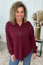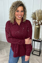 Sparkle Button Blouse - Bordeaux
