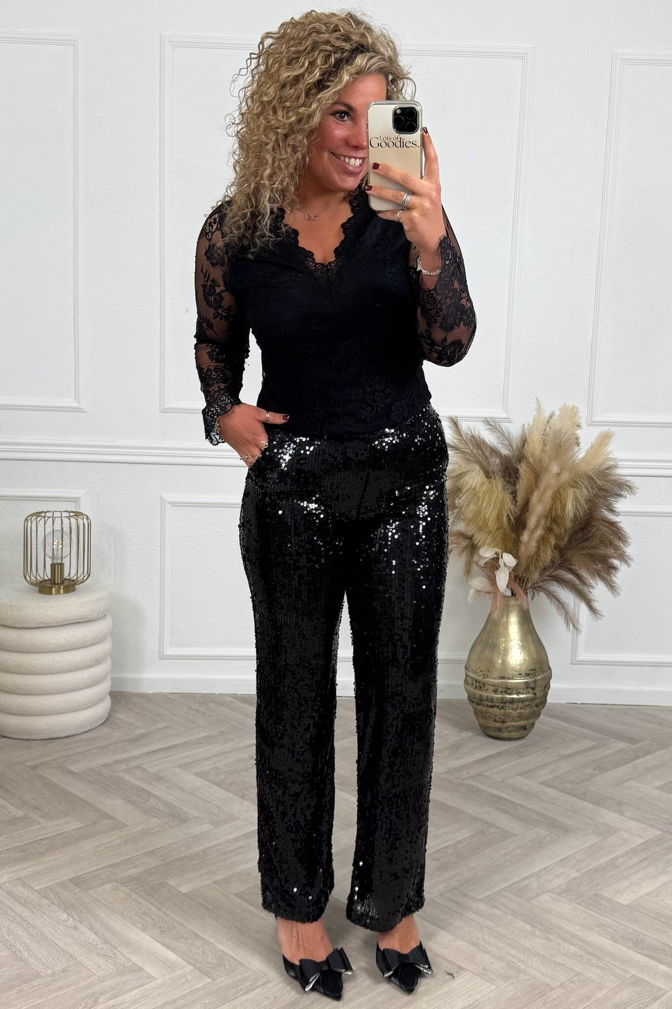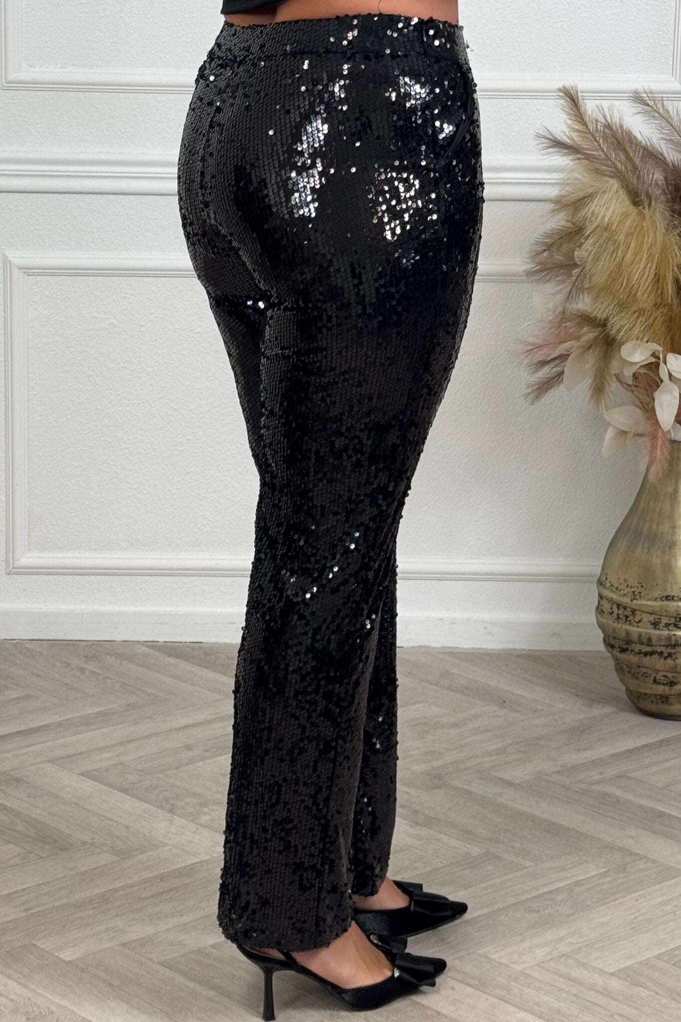 Deze amazing lovertjes broek maakt een outfit helemaal af en is perfect voor een feestje! Shop hem nu in black.