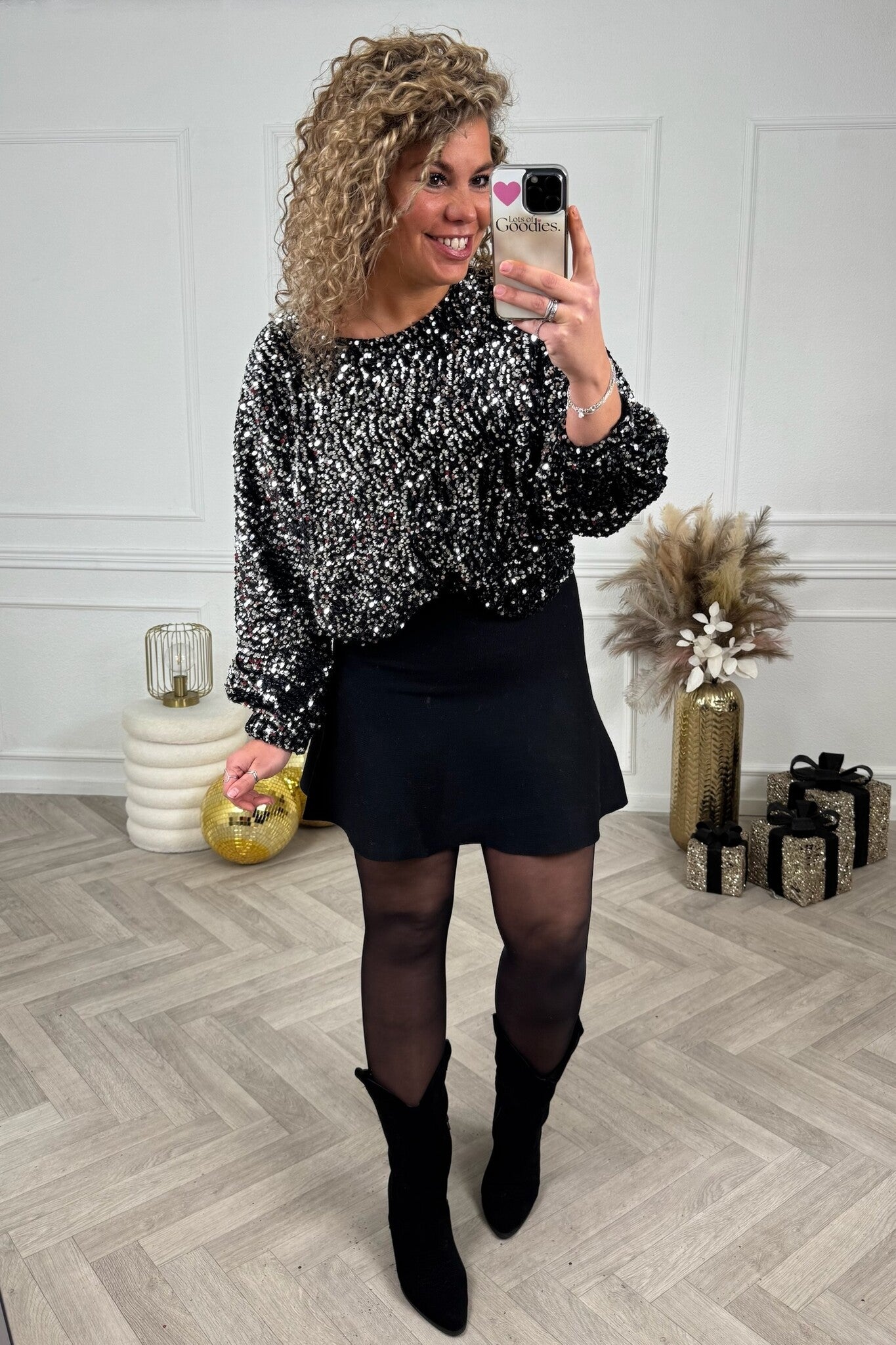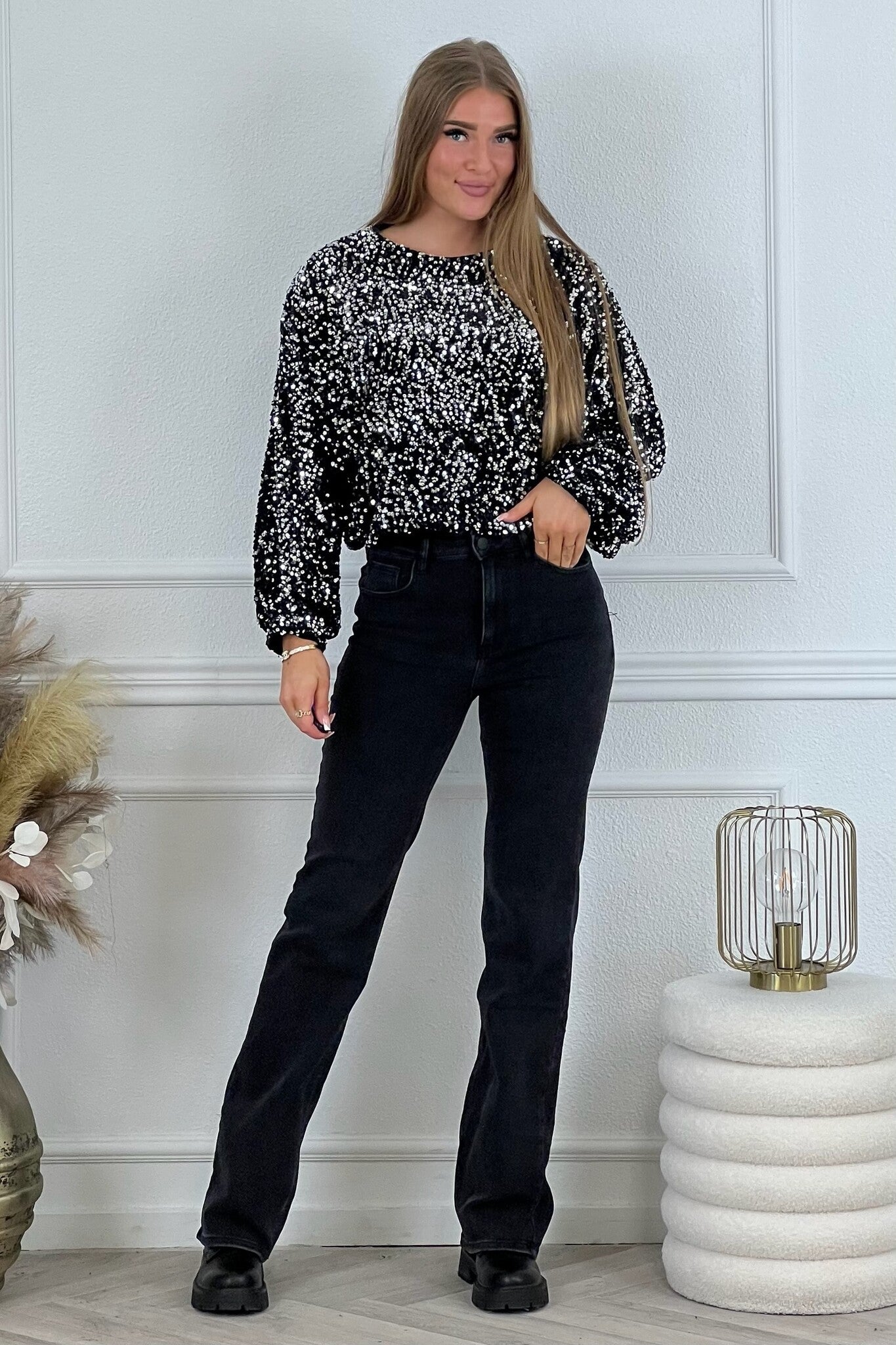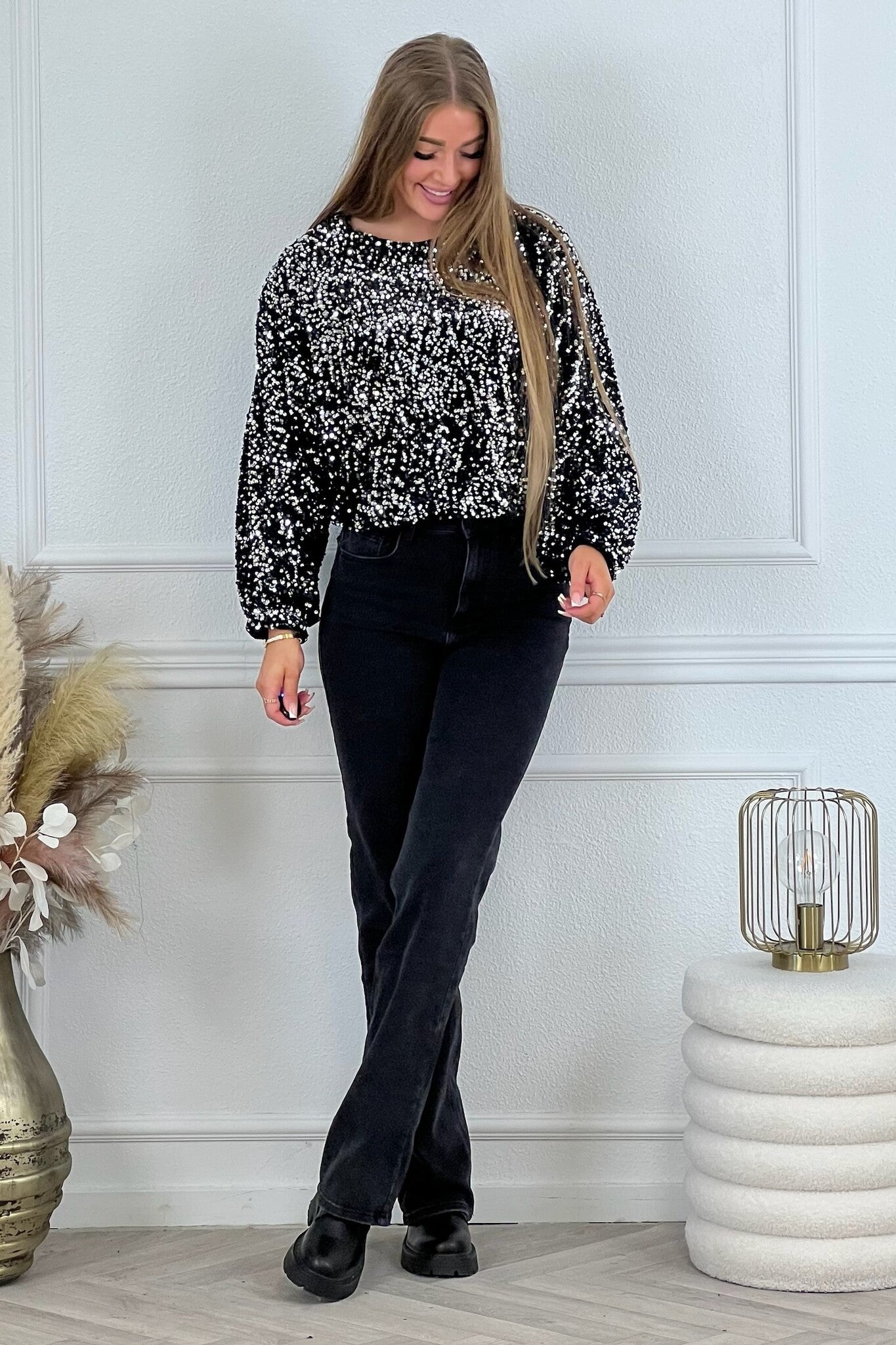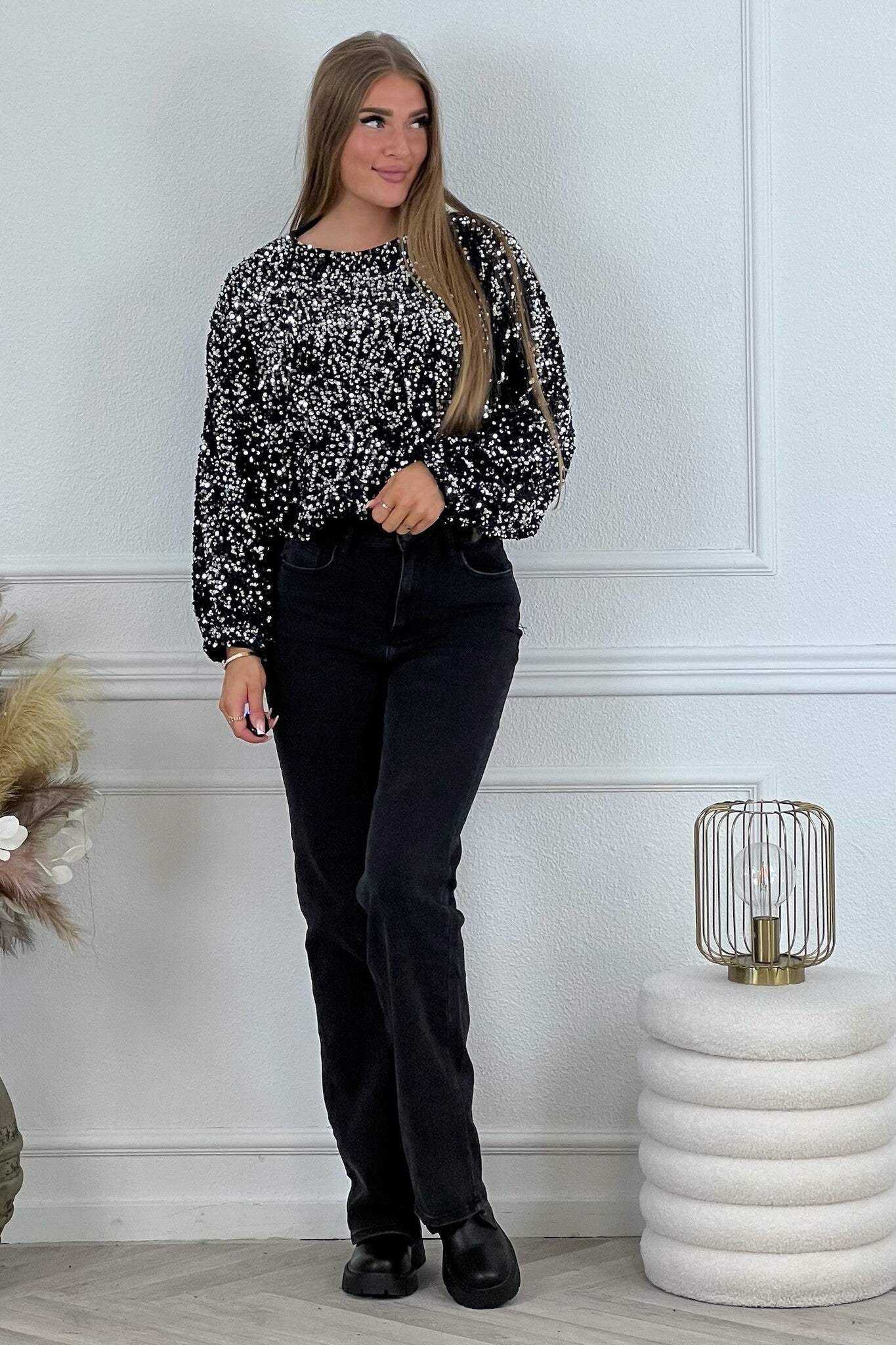 Hoe leuk zijn deze glitter tops! Ook leuk te combineren met onze Sequin Balloon Skirts! Shop hem nu in black/silver.