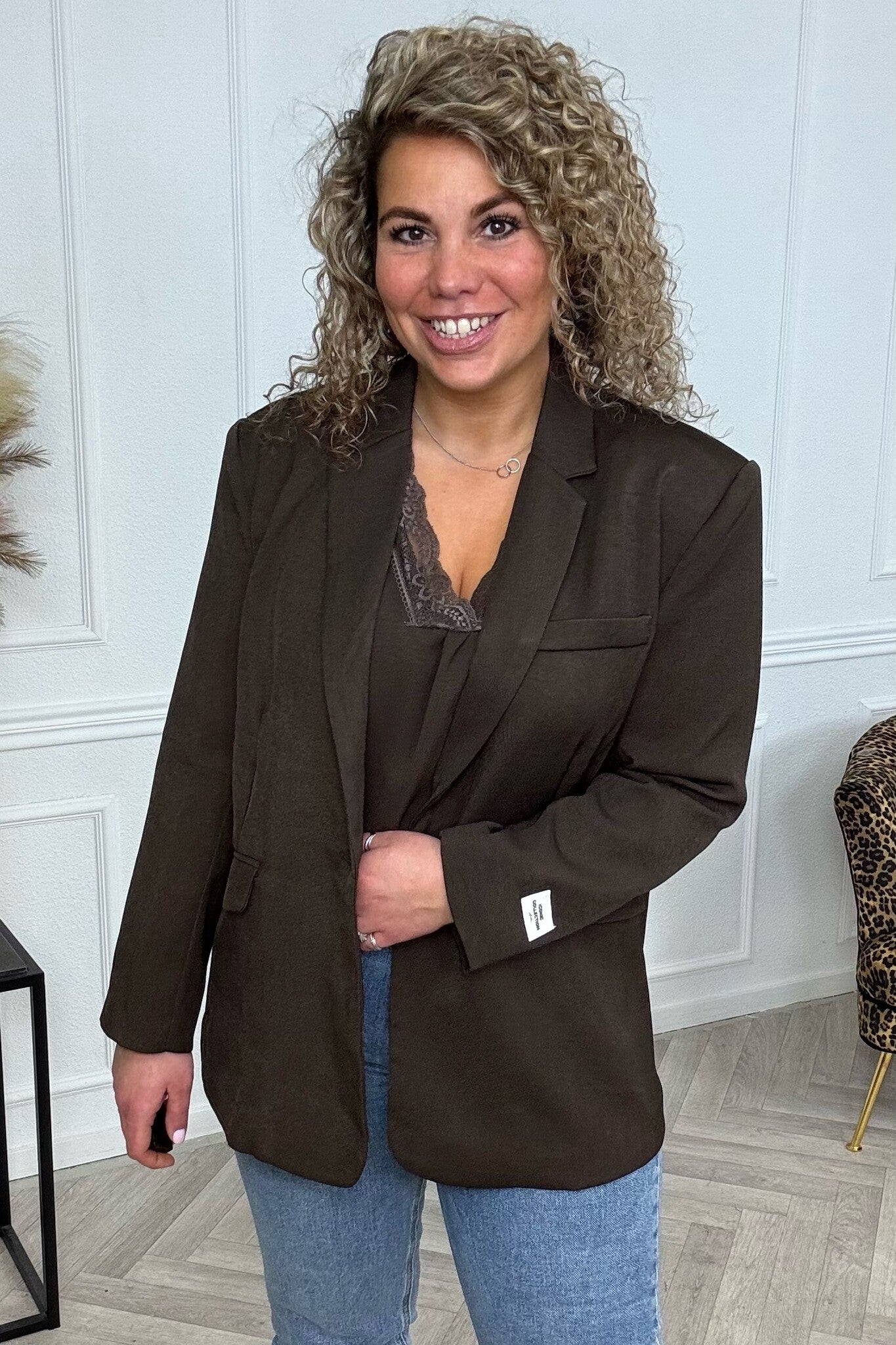 De trendy blazer van het moment, wat een superdeal! Shop hem in s/m en m/l in brown!