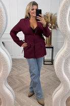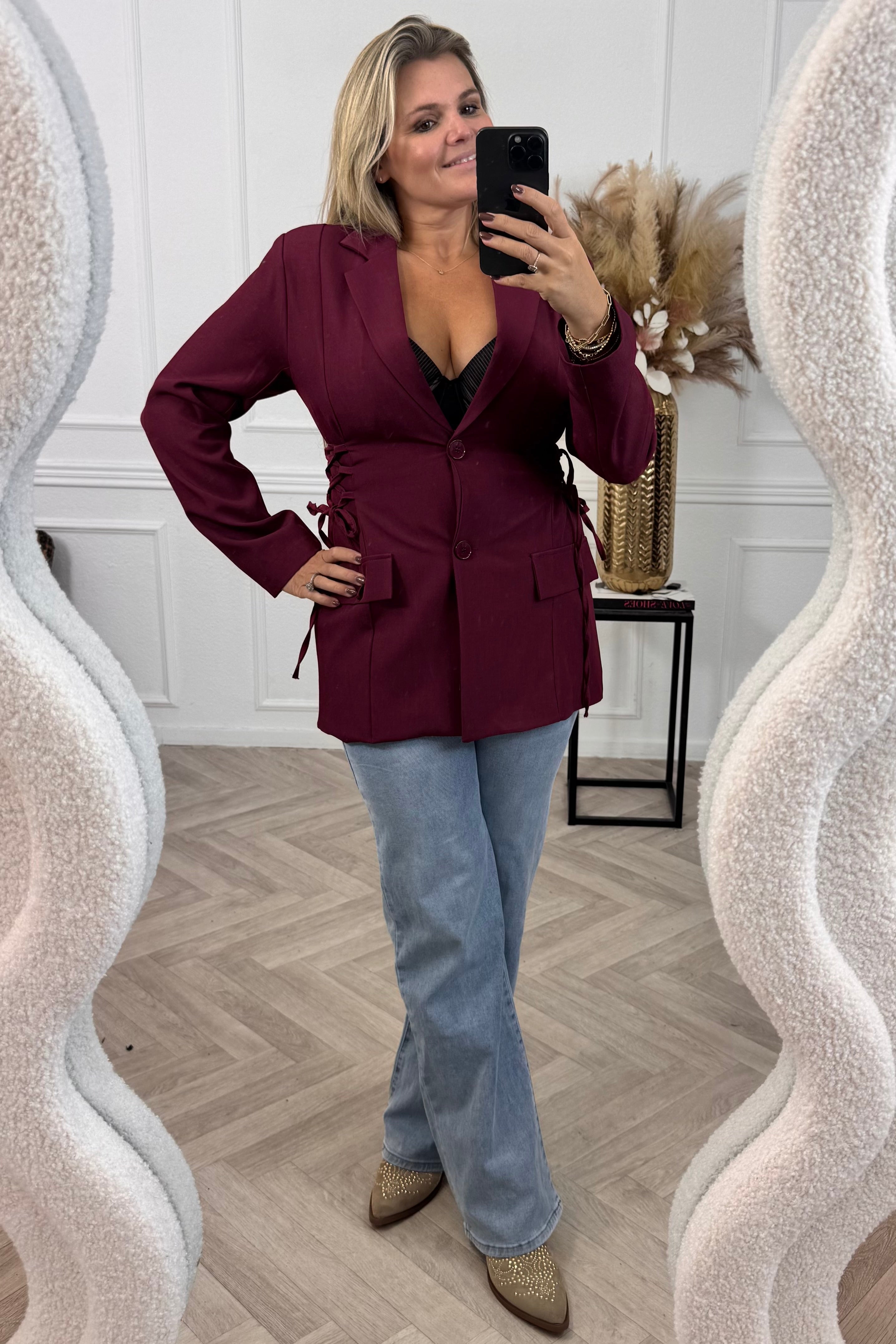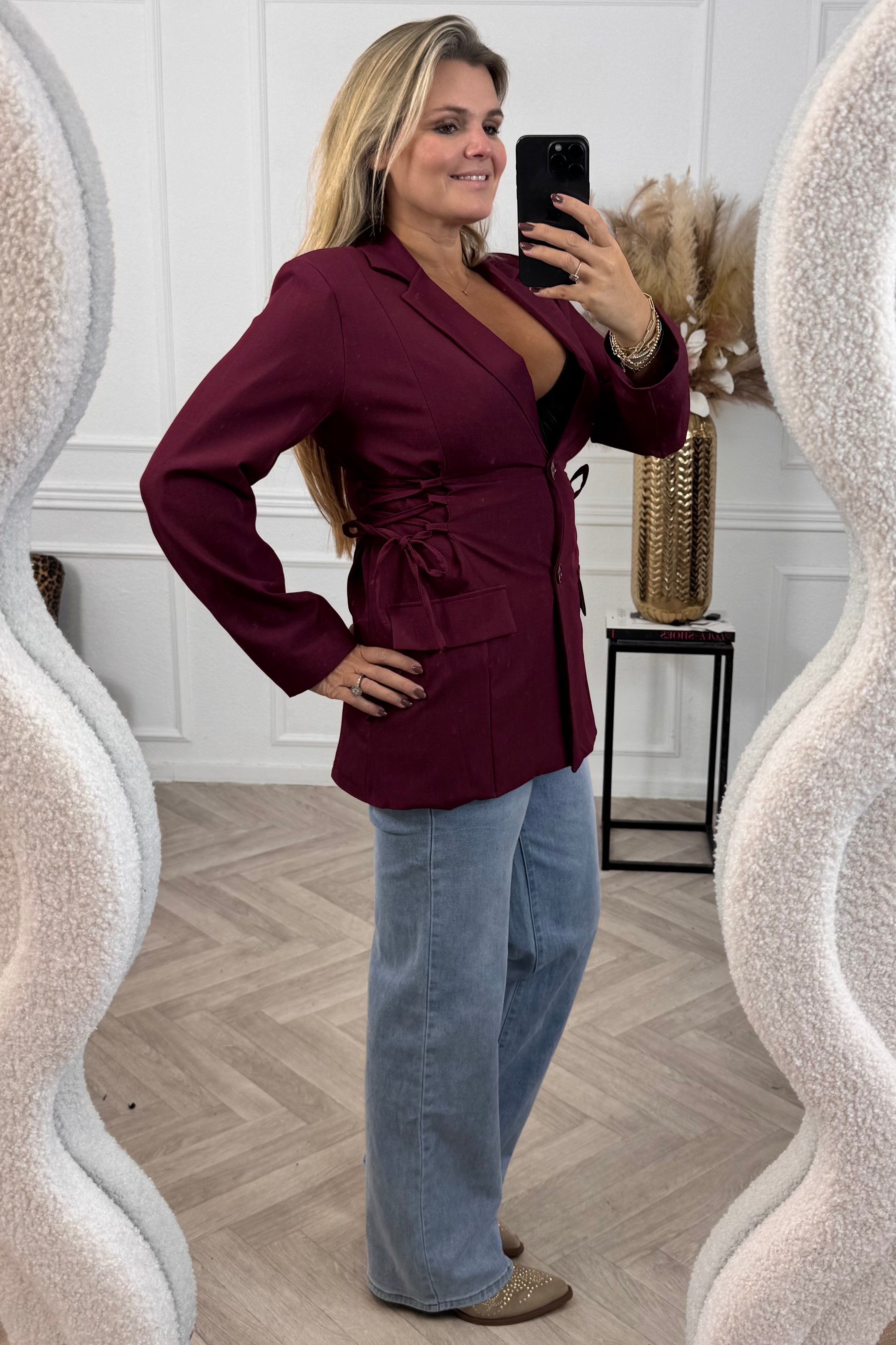 Deze mooie blazer heeft een gevlochten detail aan de zijkanten! Shop hem nu in bordeaux!