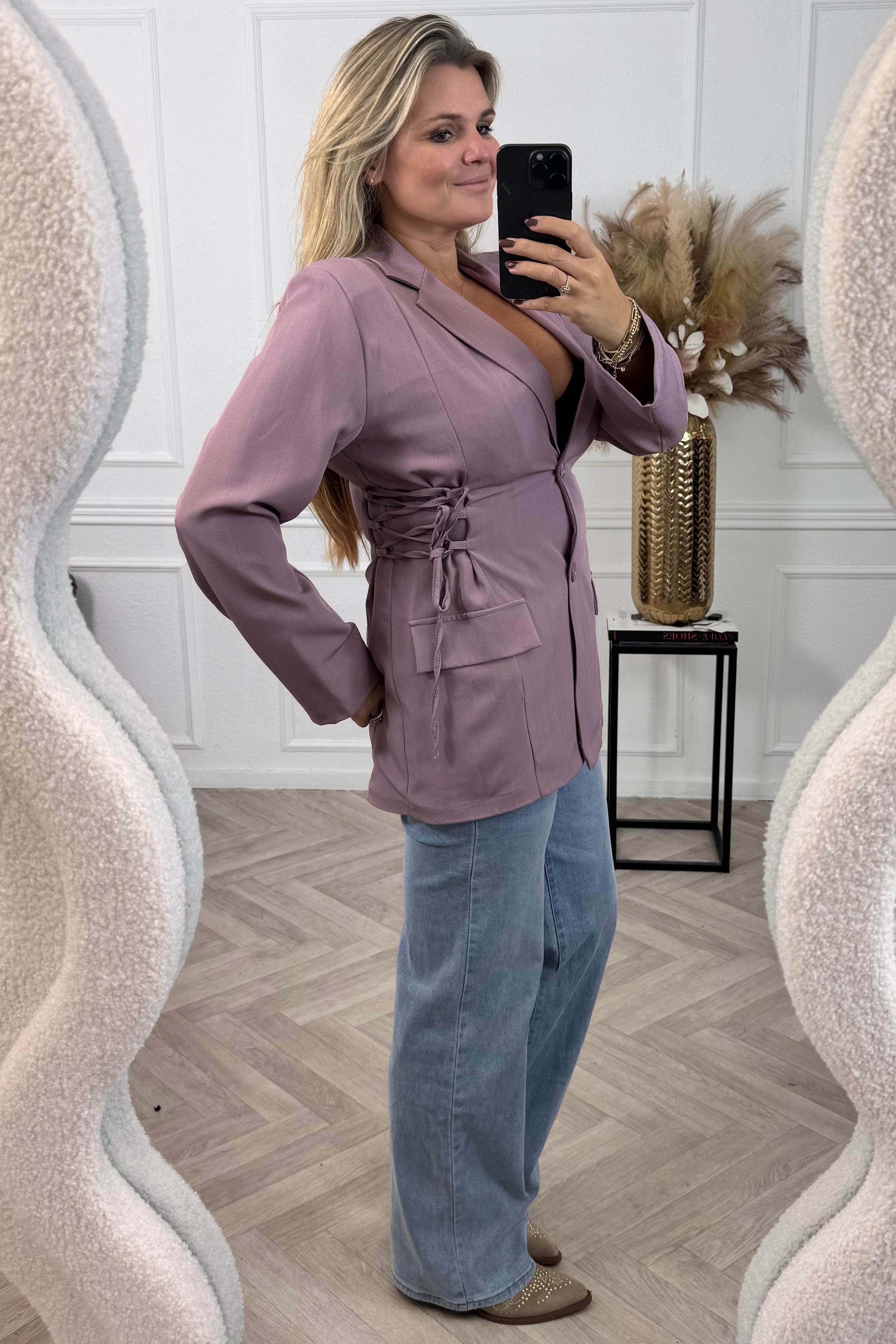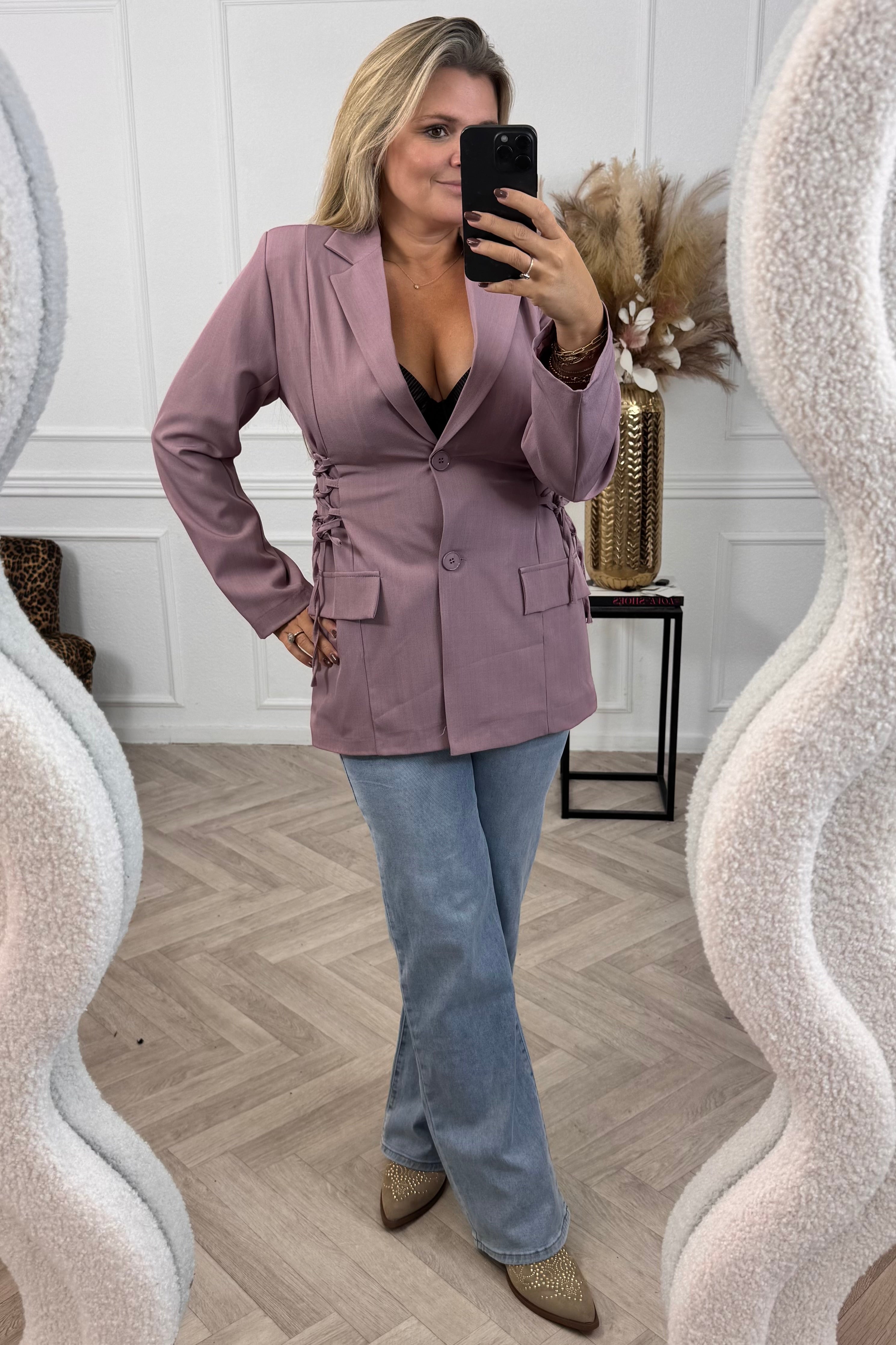 Deze mooie blazer heeft een gevlochten detail aan de zijkanten! Shop hem nu in mauve!