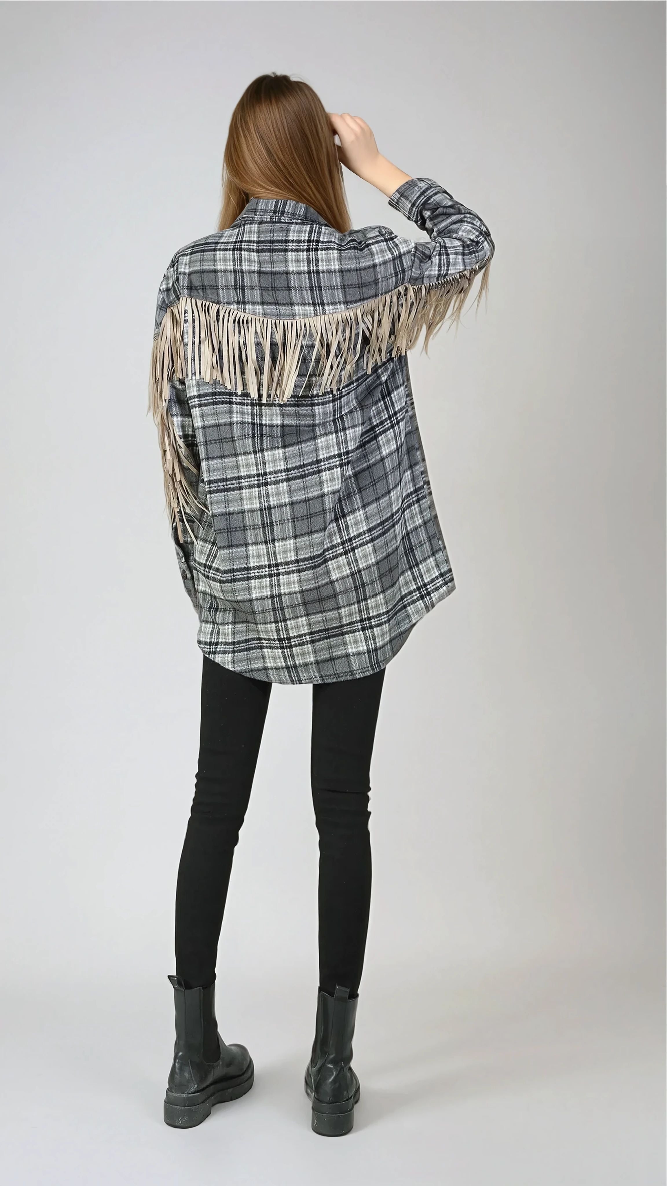Fringe Plaid Blouse - Black