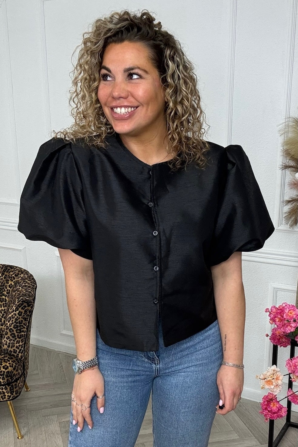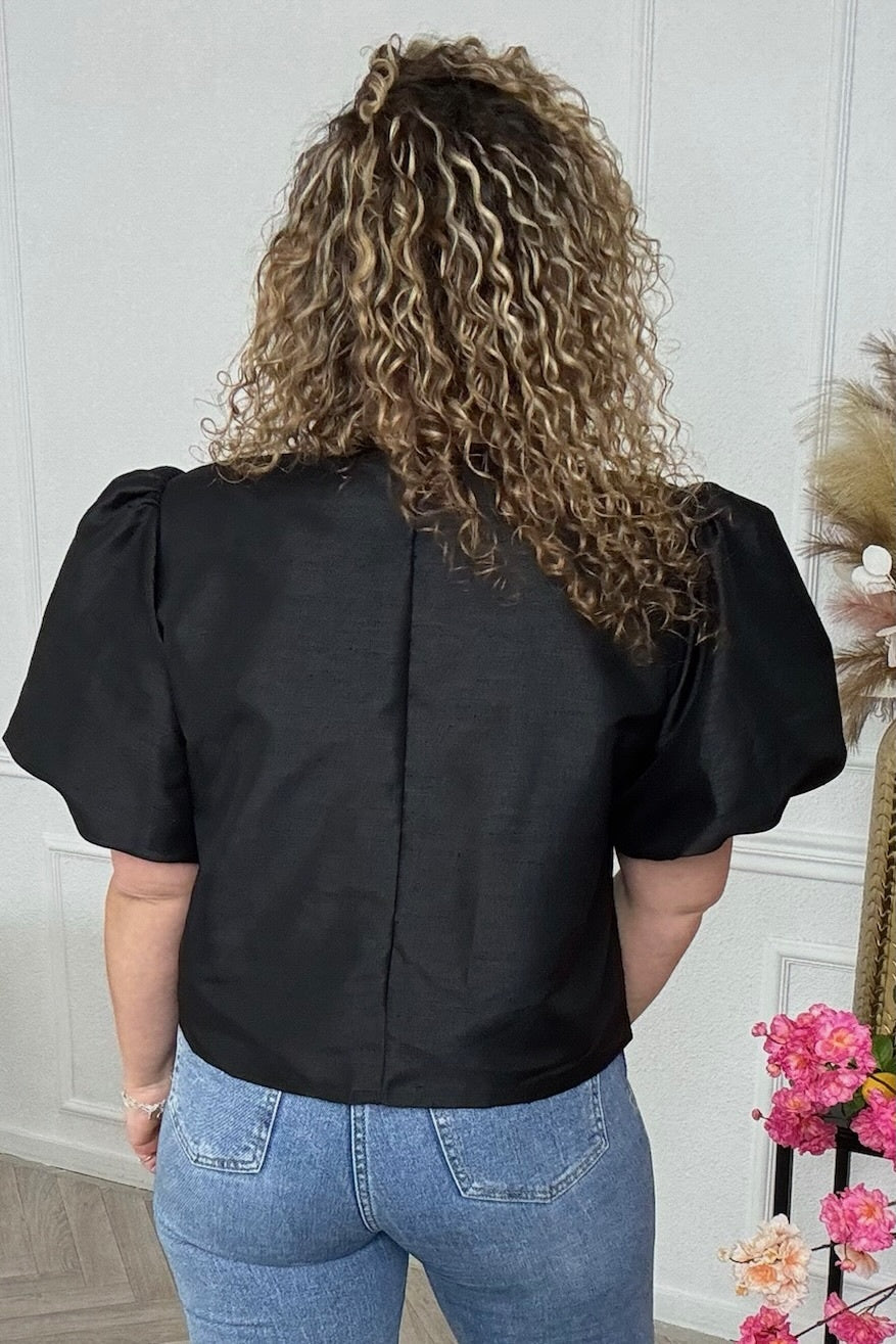 Classy Balloon Sleeve Blouse - Black