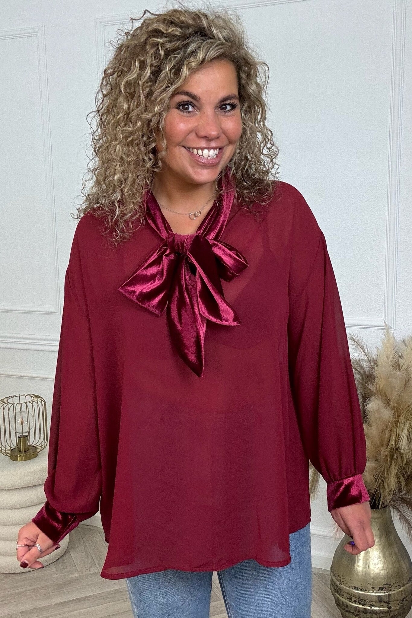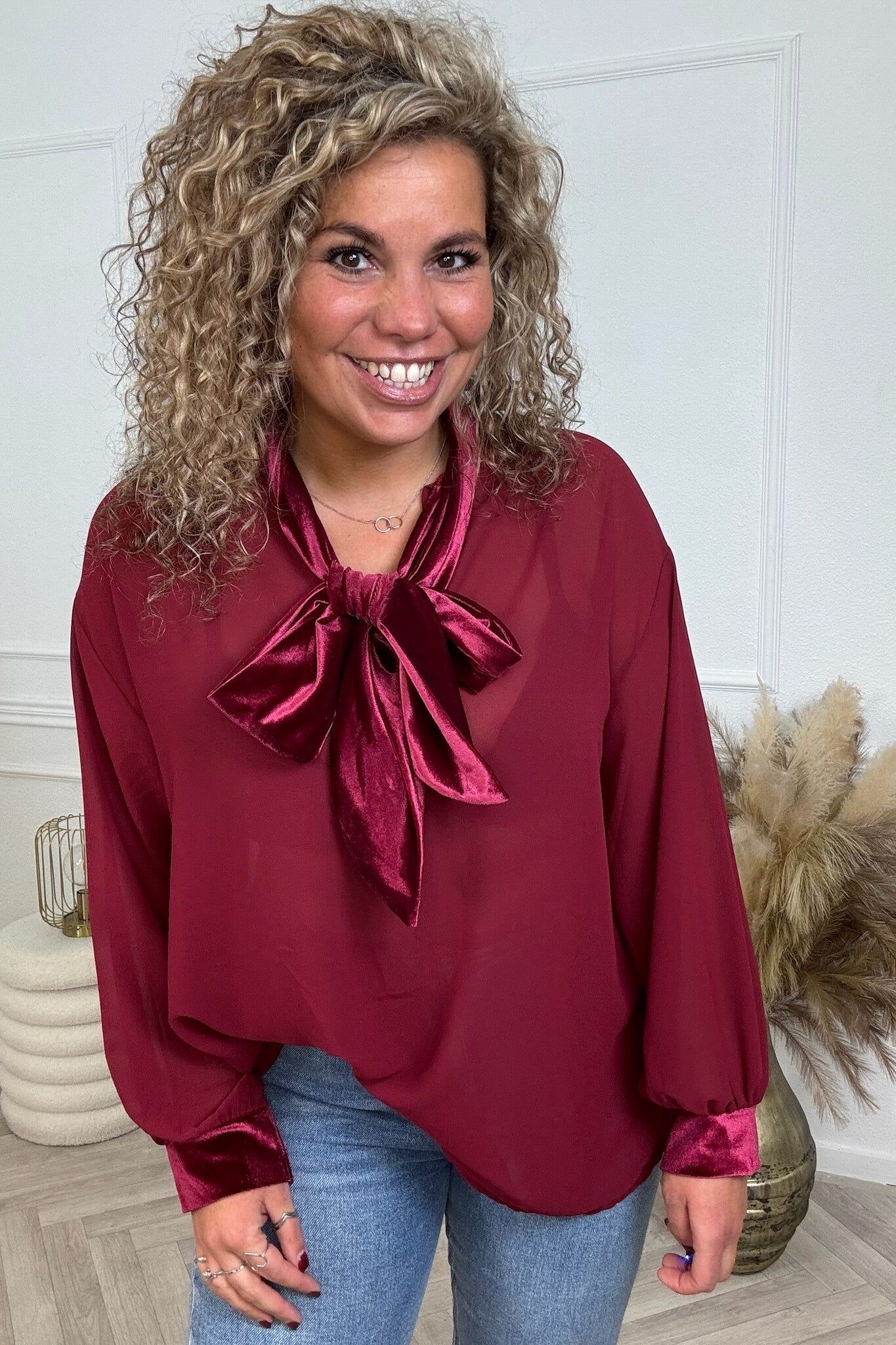 Ultimate Velvet Bow Blouse - Burgundy