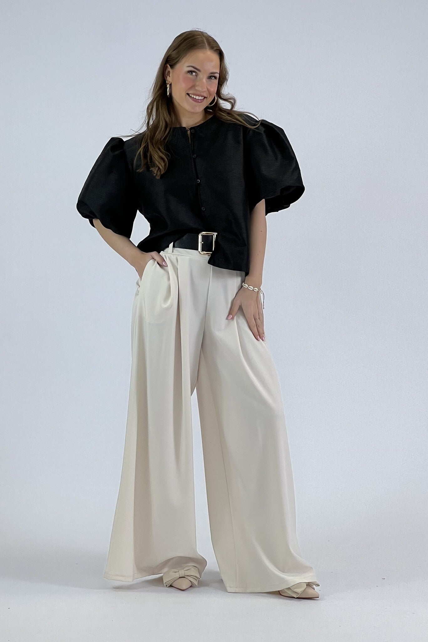 Classy Balloon Sleeve Blouse - Champagne