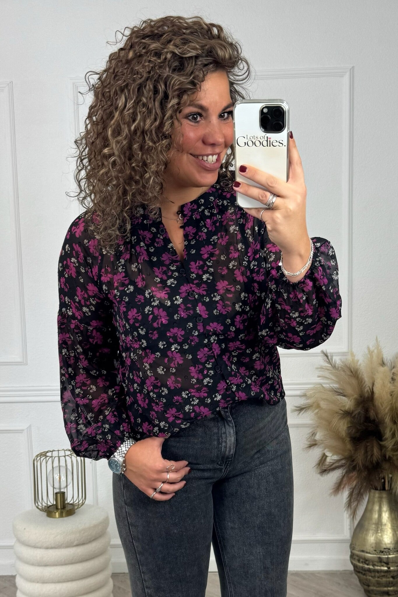 Hoe gaaf is deze blouse met een bloemenprint?! Shop hem nu in black/pink.