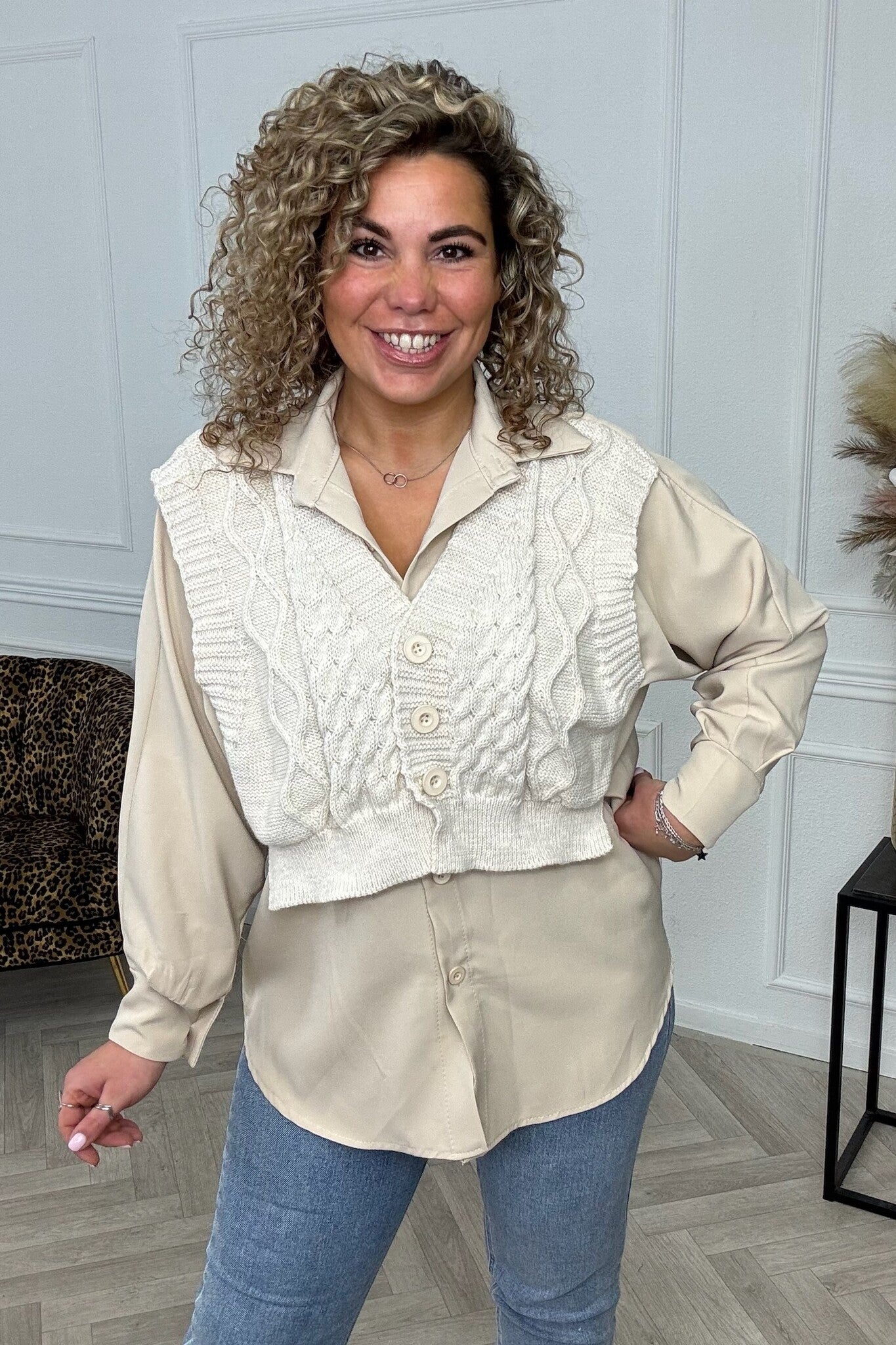 Hoe leuk is deze blouse met een spencer?! De perfecte hippe basic! Shop hem nu in creme.