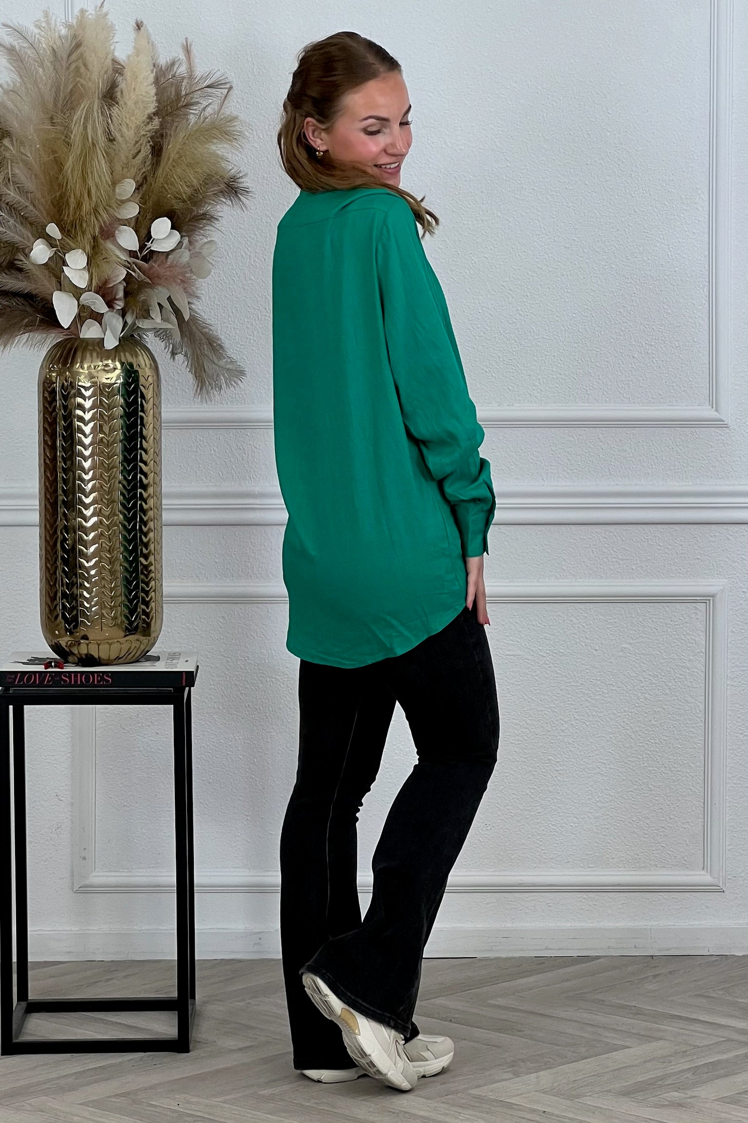 Een fijne basic blouse die altijd goed is! Shop hem in green!