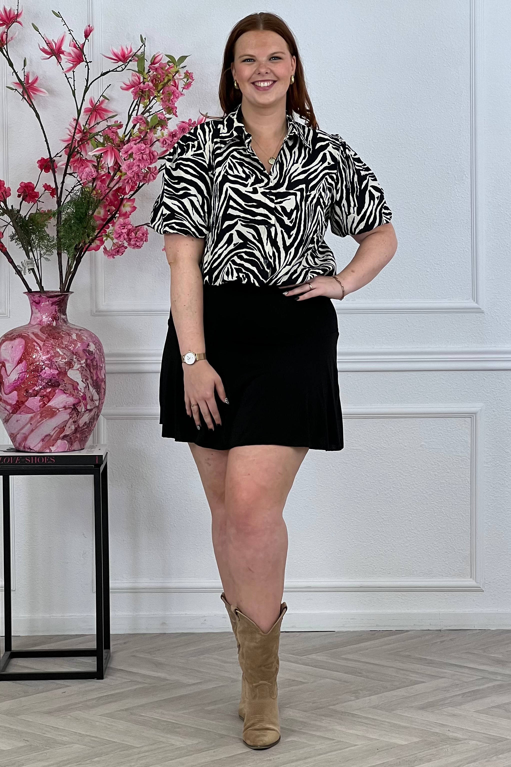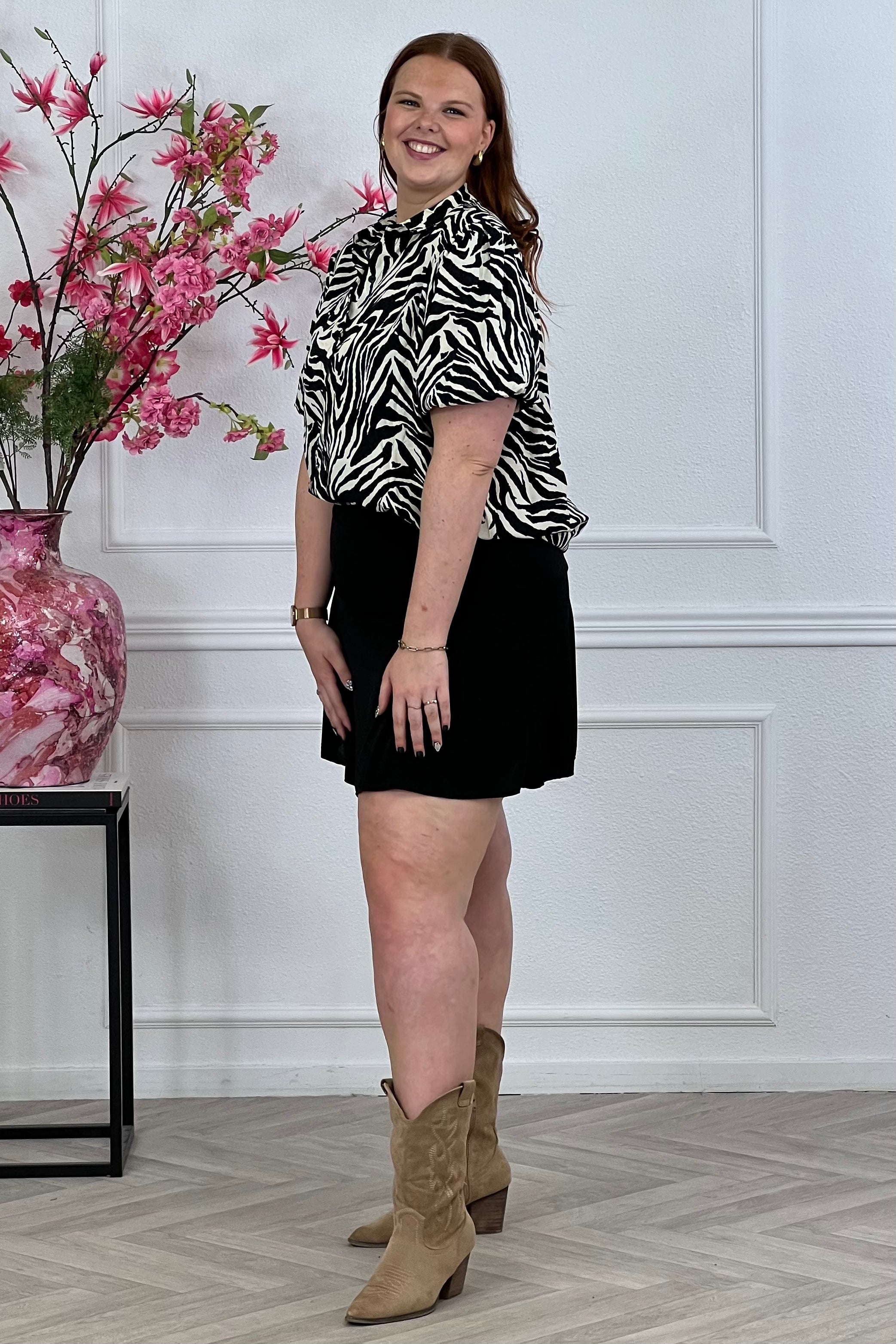 We hebben weer een mooie blouse binnen met zebra print, zo leuk! Shop hem nu in black/white.