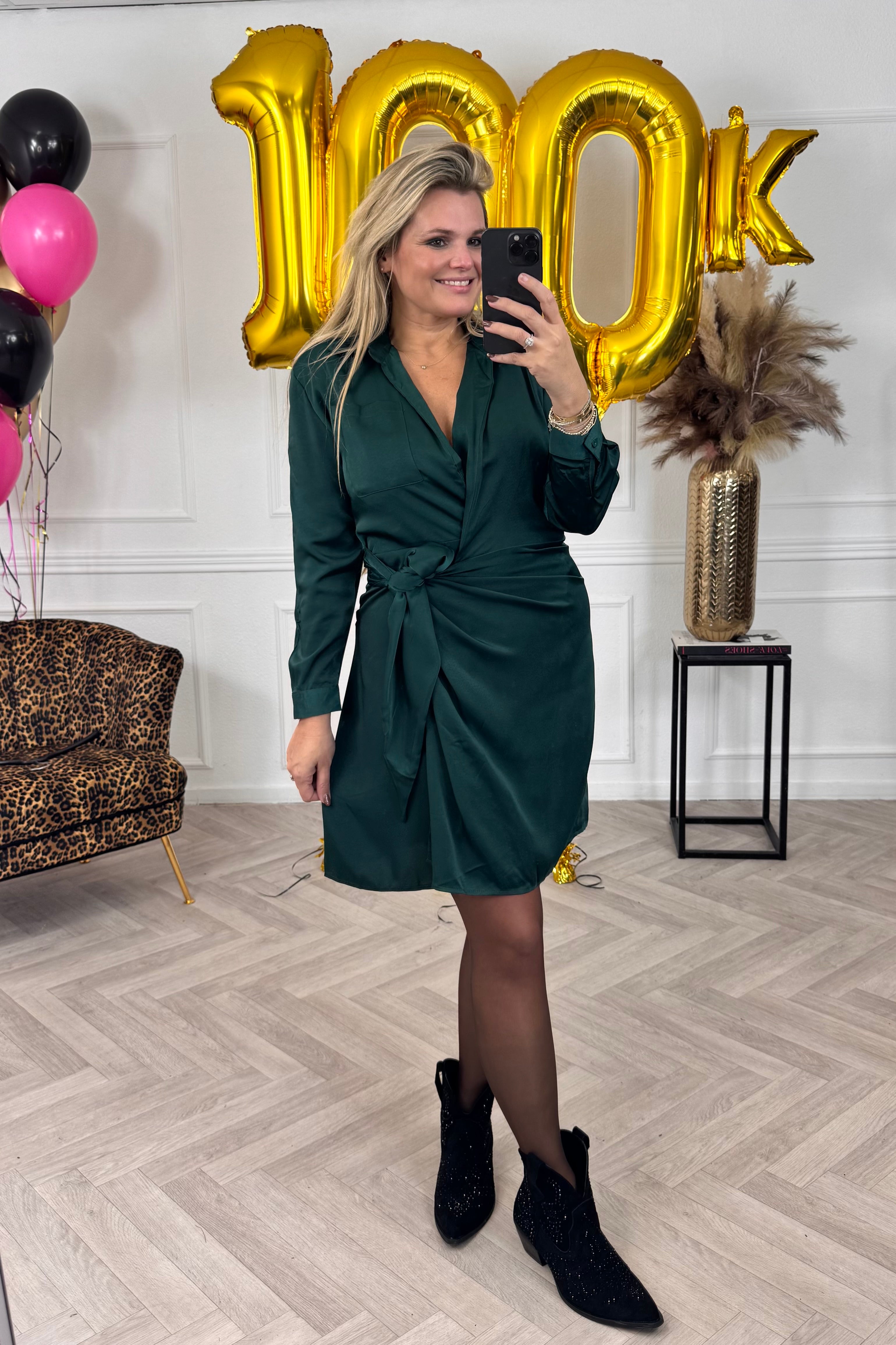 Wat een perfecte jurk is dit! Je maakt het jurkje vast aan de zijkant en de stof heeft een satijnen look. Shop de perfect silk wrap dress nu in green.