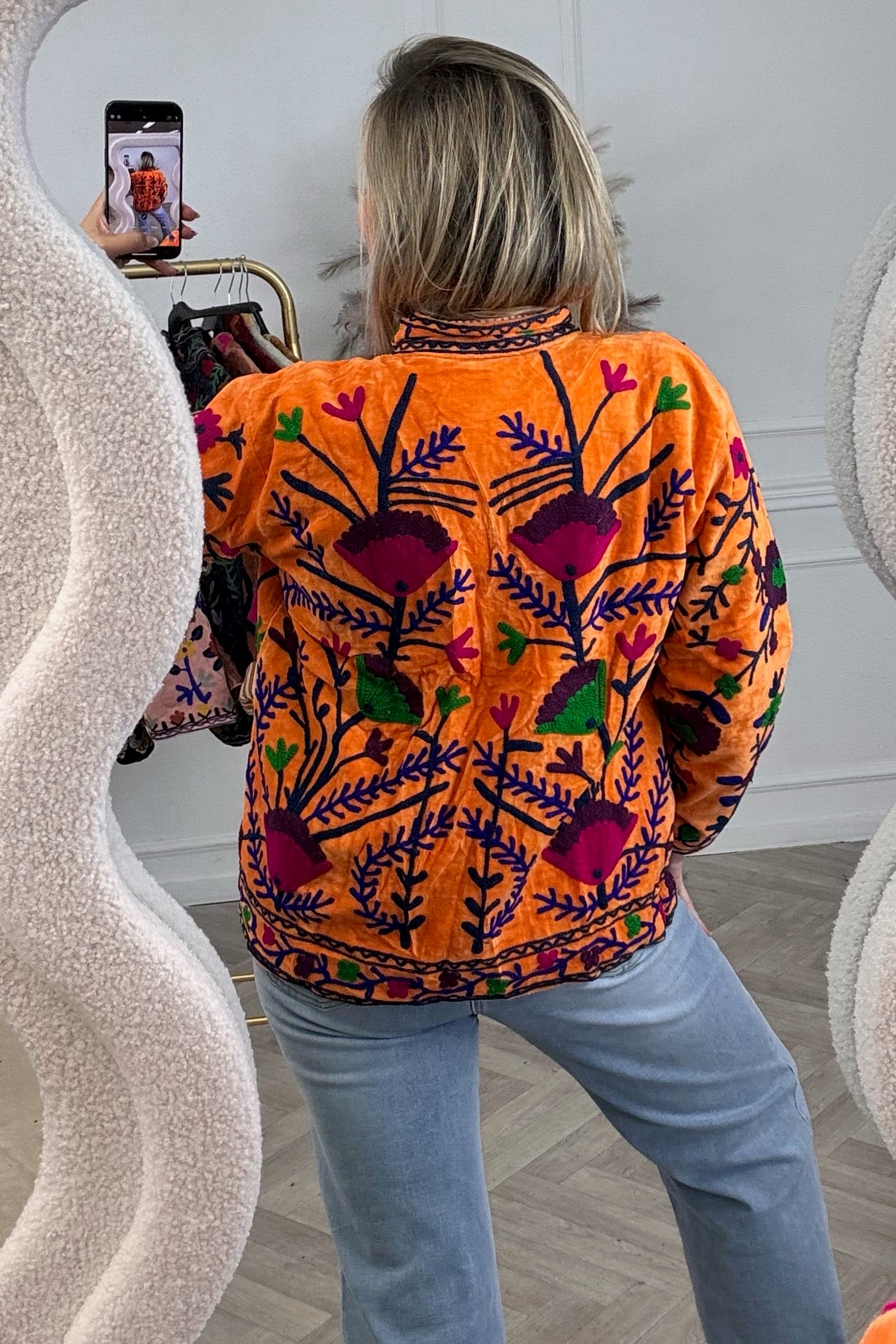 Cotton Velvet Lily Jacket - Orange/Pink