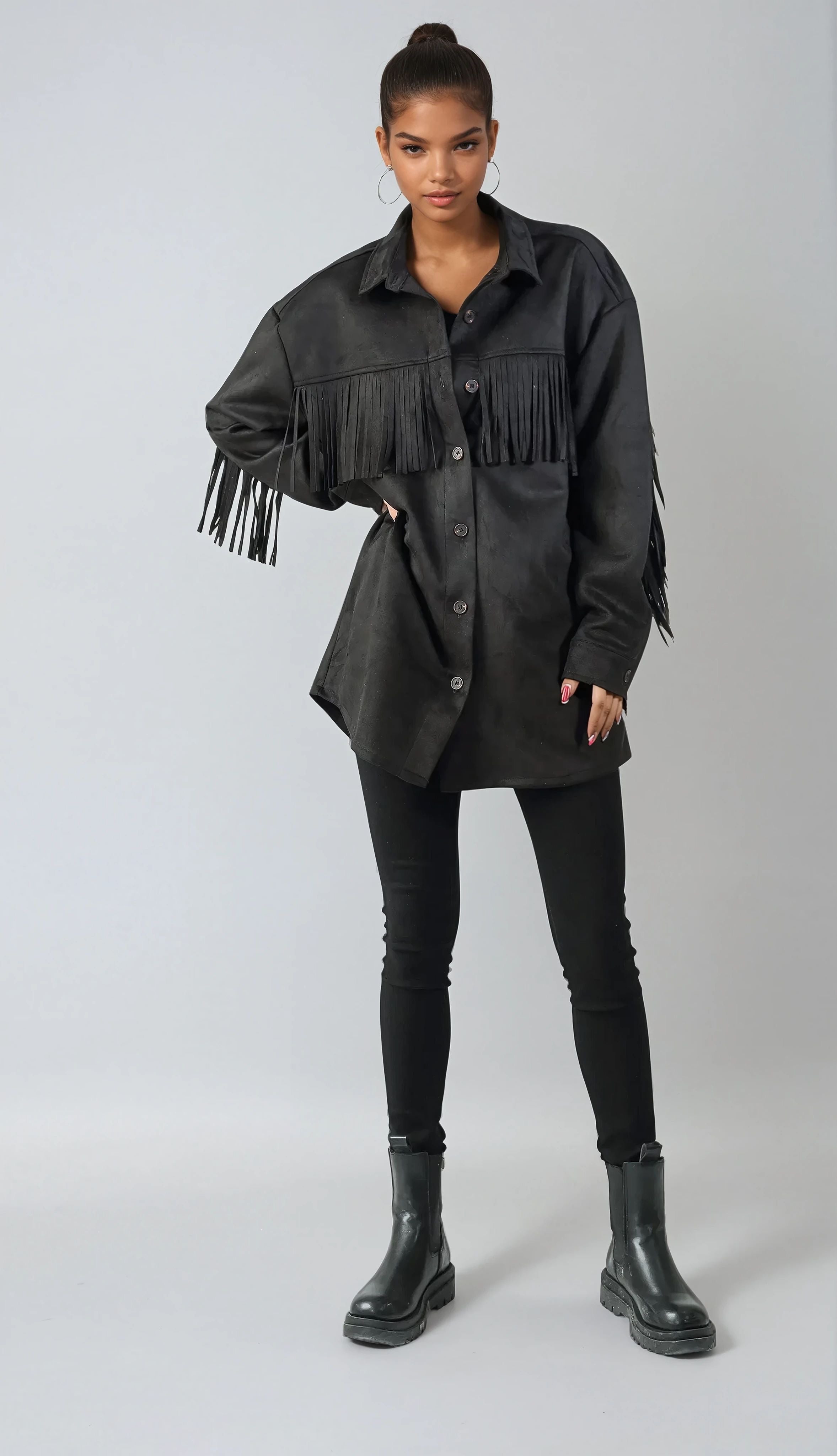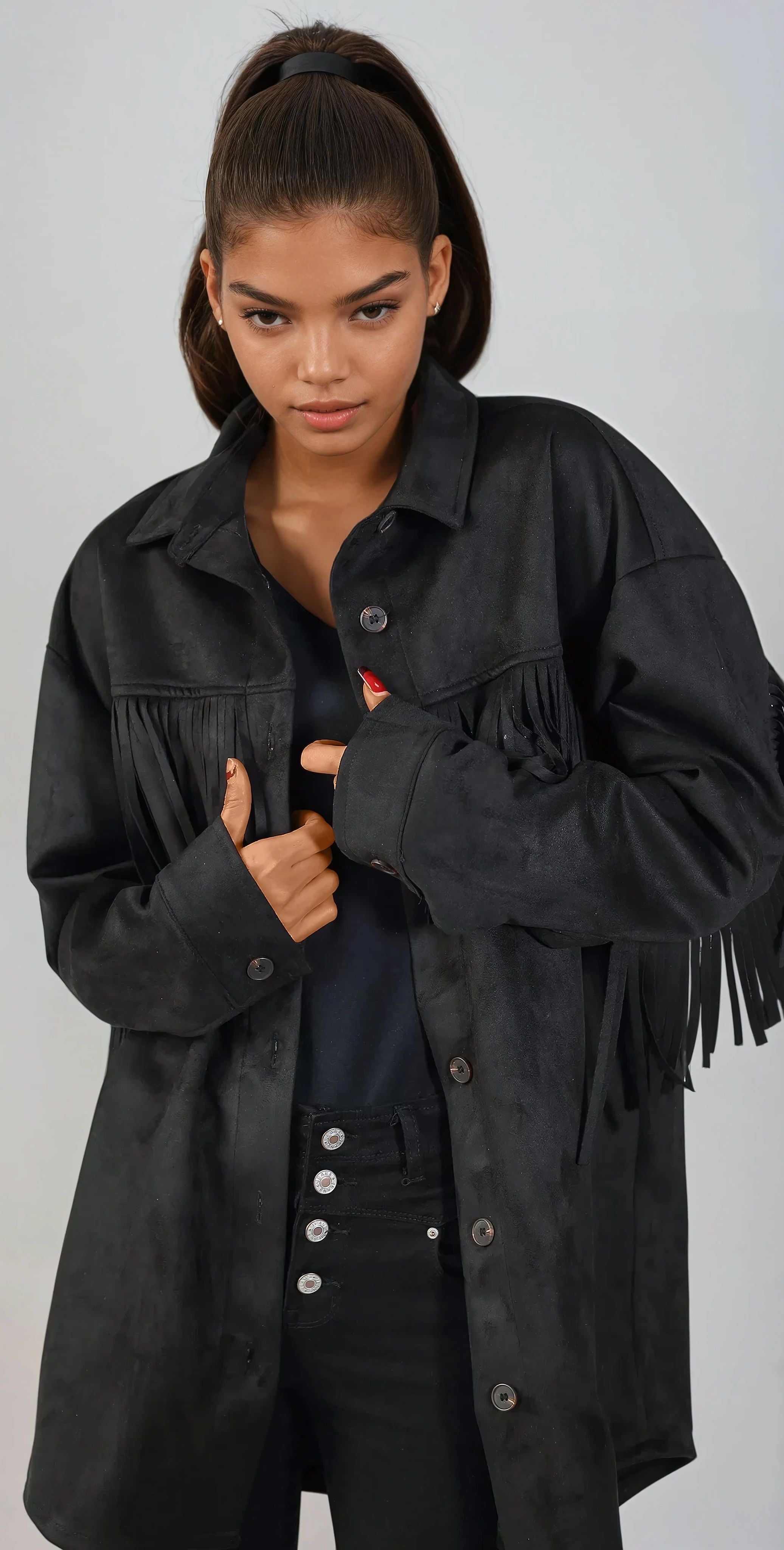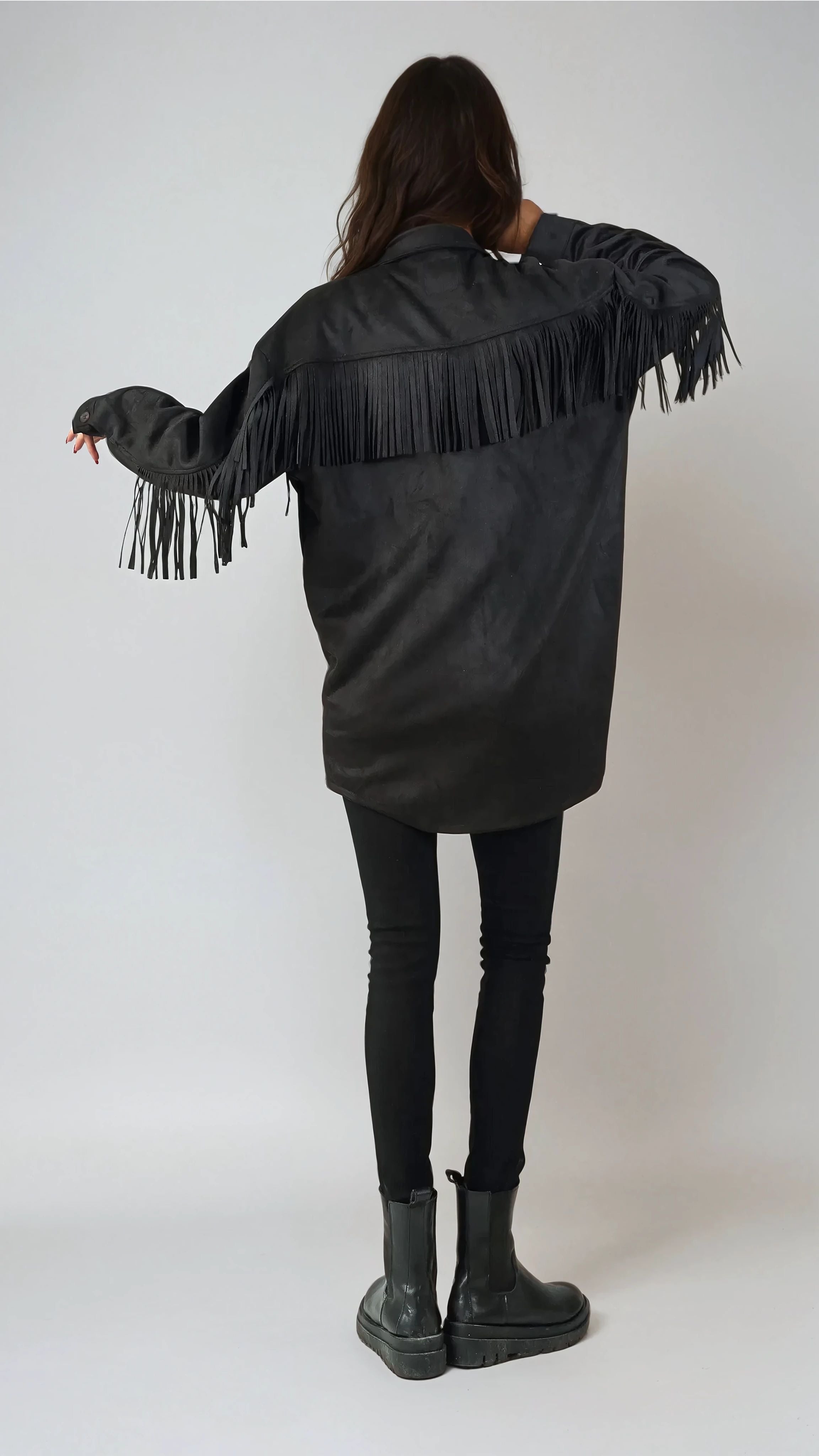 Kijk deze super leuke jasjes! Ze hebben aan de voor en achterkant een leuk fringe detail. Leuk om te dragen als jasje maar ook als blouse! Nu ook in 3 andere kleuren. Shop hem in black!