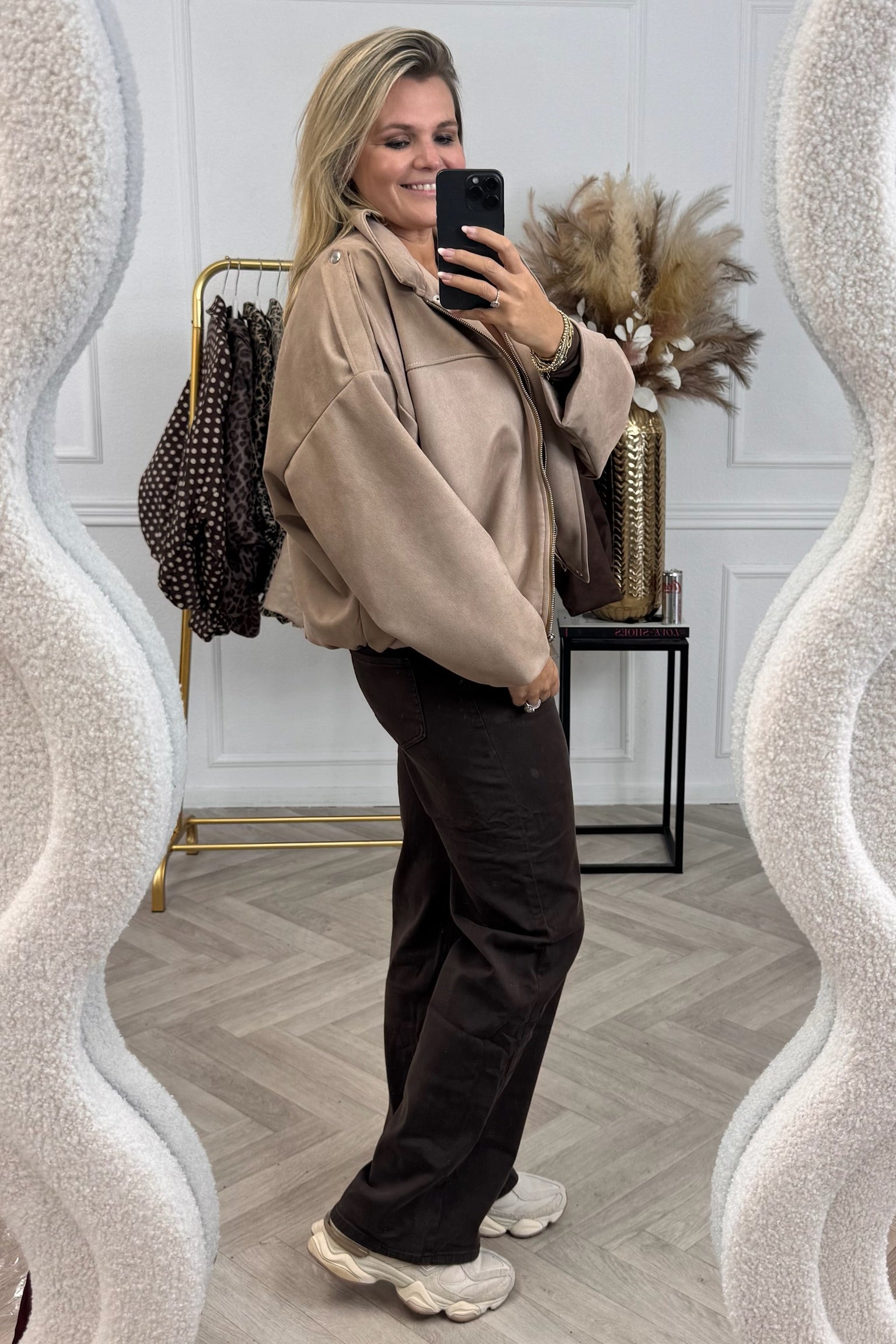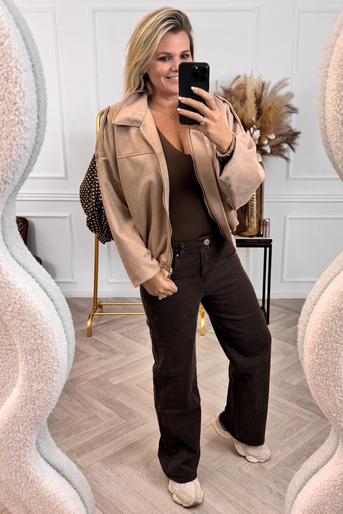 Deze mooie suedine bomber is perfect voor deze tijd van het jaar! Shop hem in beige!