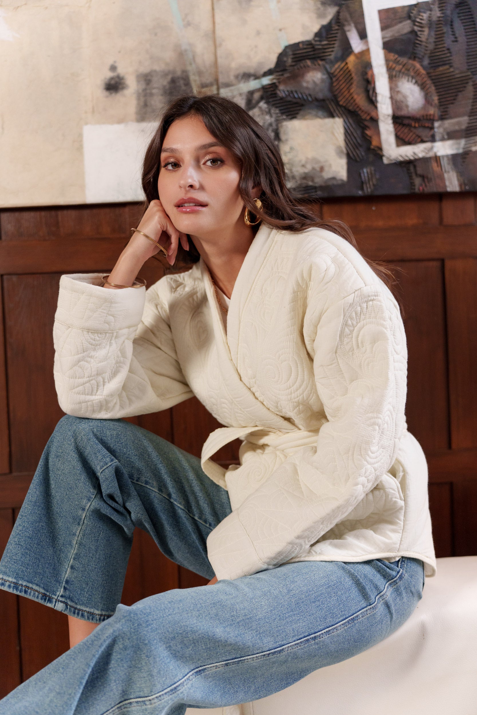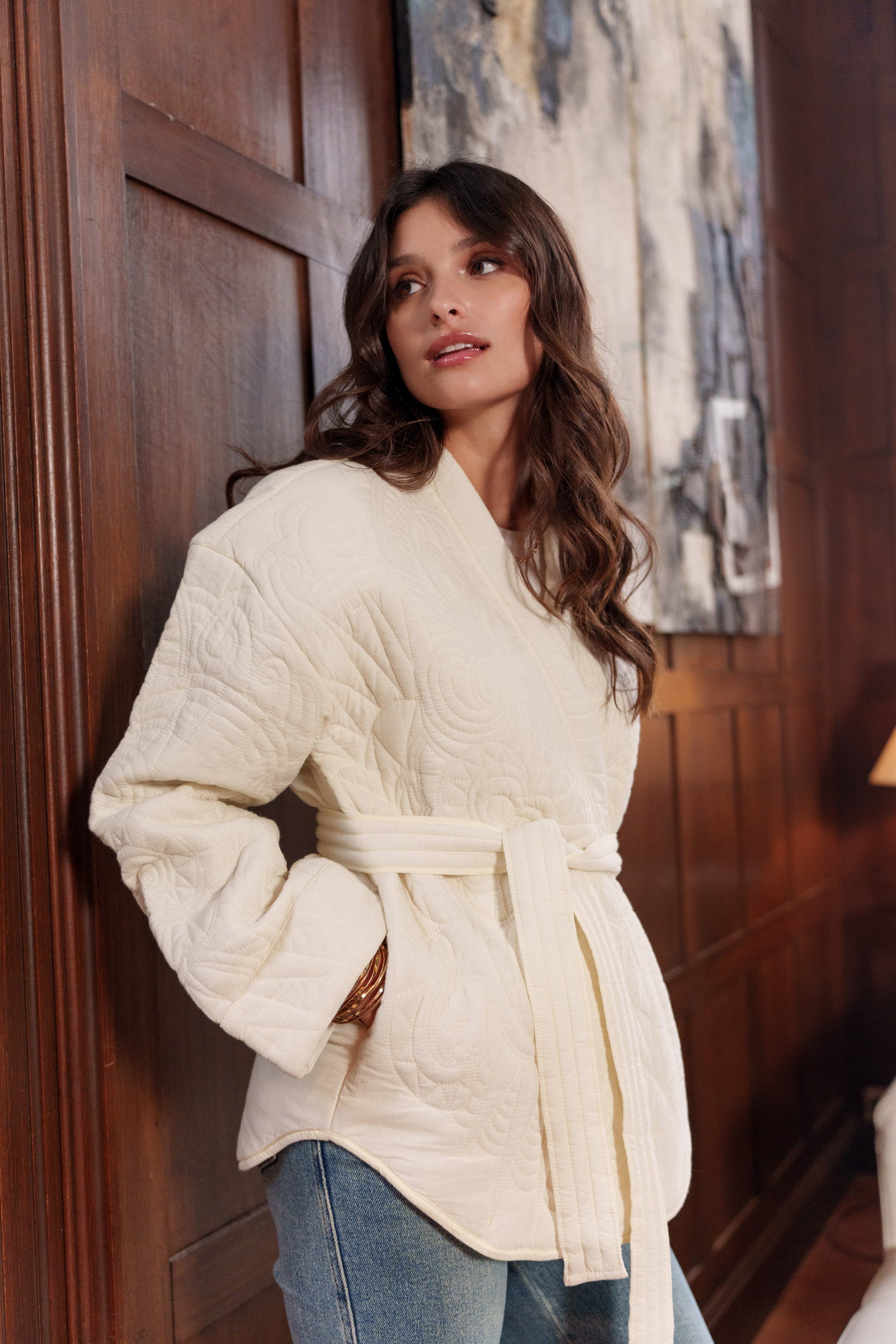 Dit supermooie waisted jasje is nu nieuw online! Shop hem nu met een mooi ceintuur in creme!