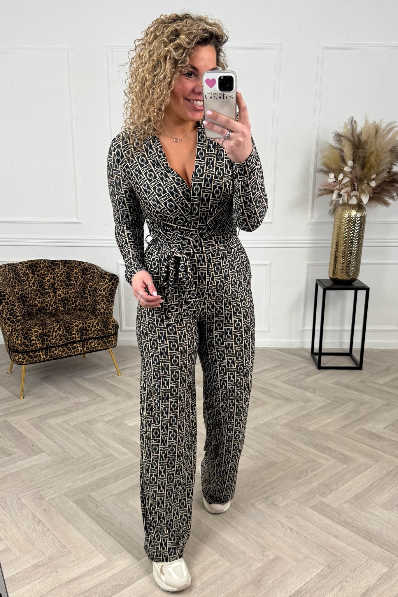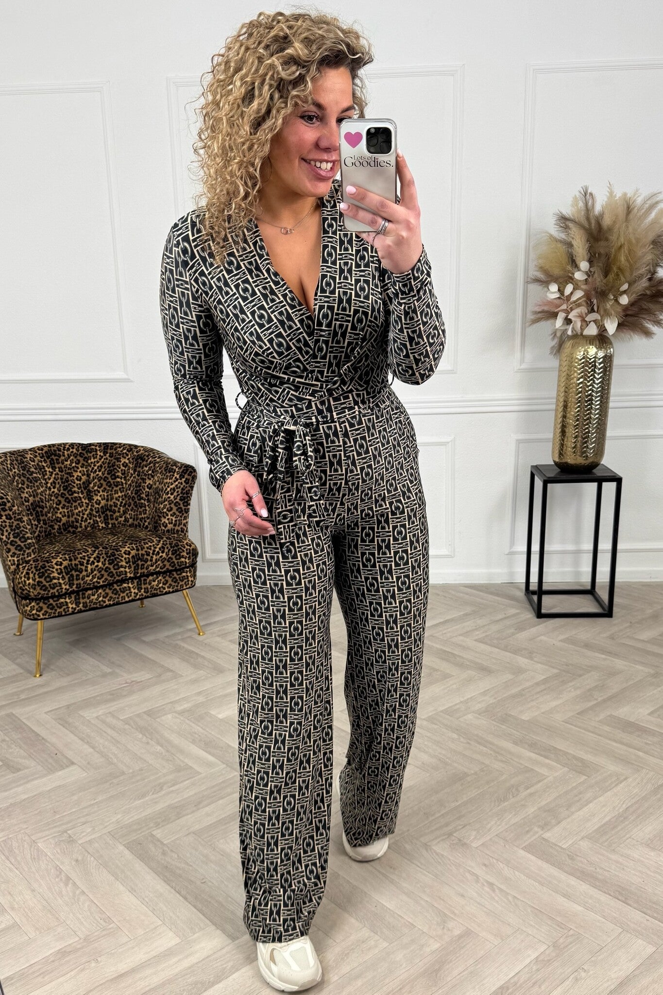 Een mooie jumpsuit met lange mouwen! Verkrijgbaar in verschillende kleuren en printjes! Shop hem met deze mooie chain camel!
