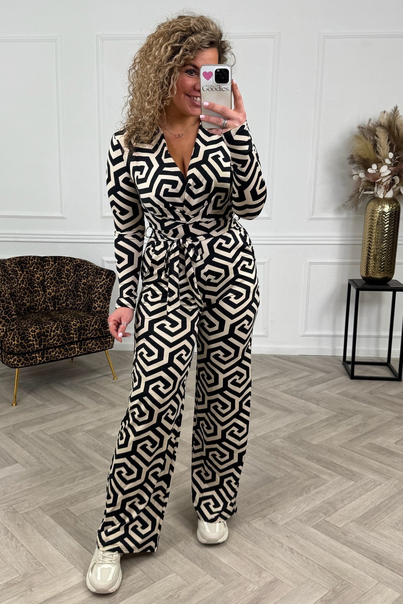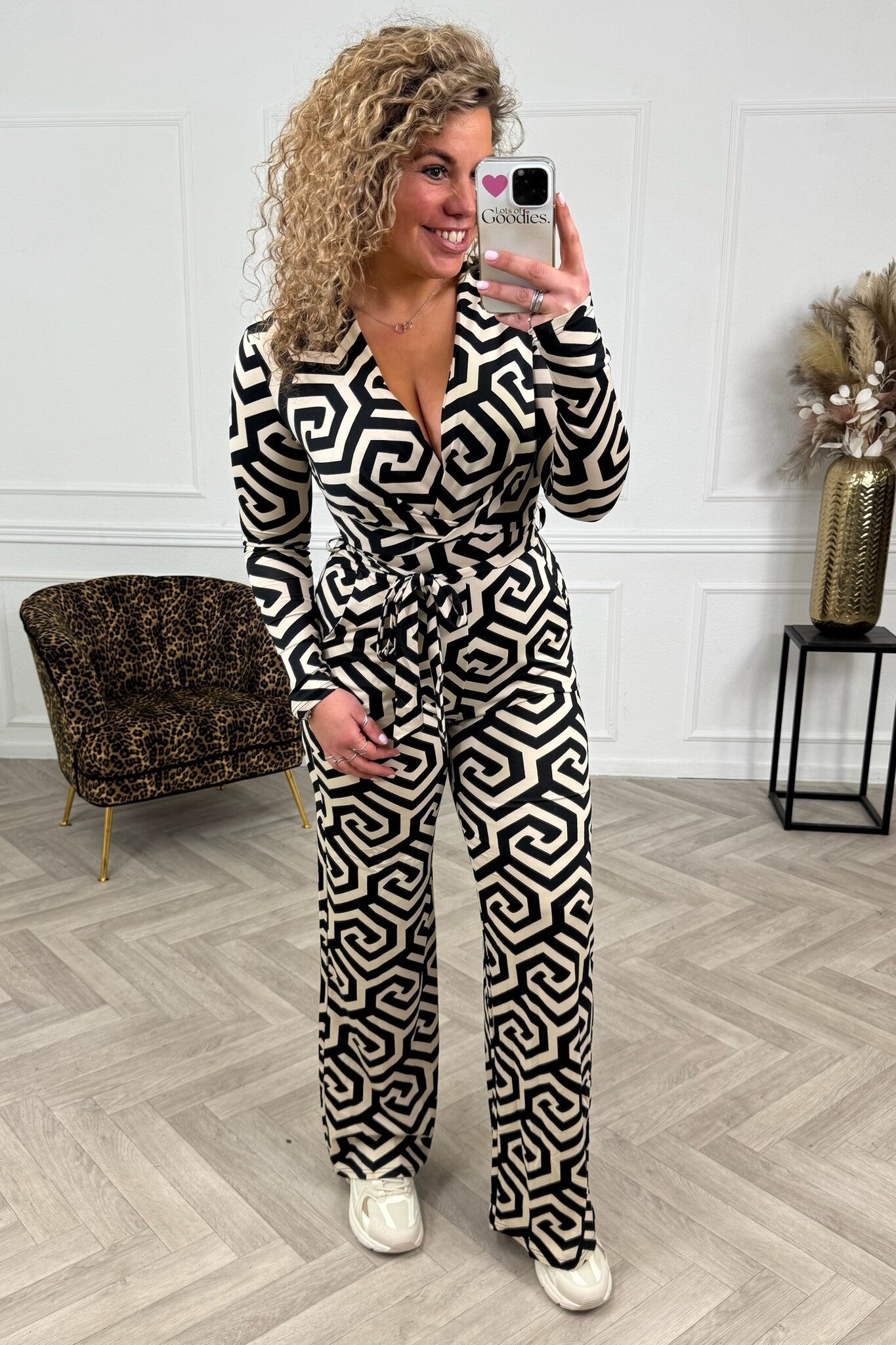 Een mooie jumpsuit met lange mouwen! Verkrijgbaar in verschillende kleuren en printjes! Shop hem met deze mooie maze print!
