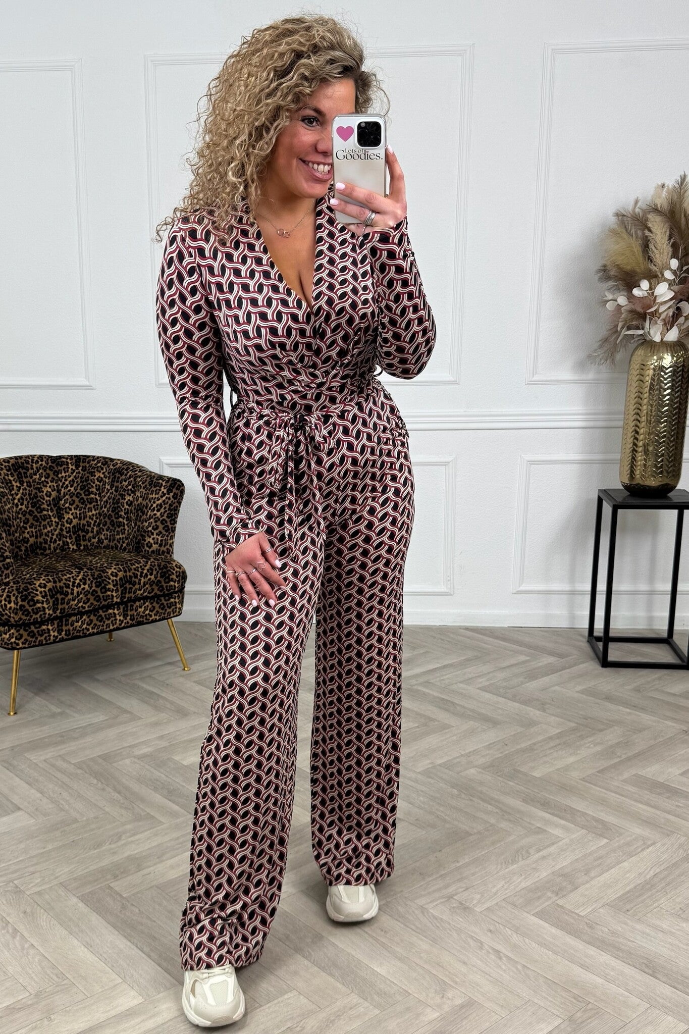 Een mooie jumpsuit met lange mouwen! Verkrijgbaar in verschillende kleuren en printjes! Shop hem met deze mooie swirl print!