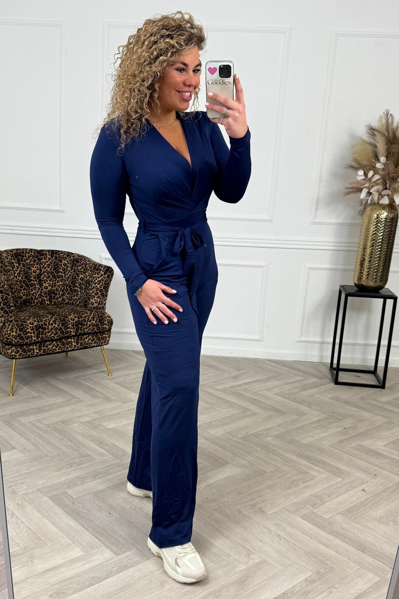 Een mooie jumpsuit met lange mouwen! Verkrijgbaar in verschillende kleuren en printjes! Shop hem in de mooie chique navy!