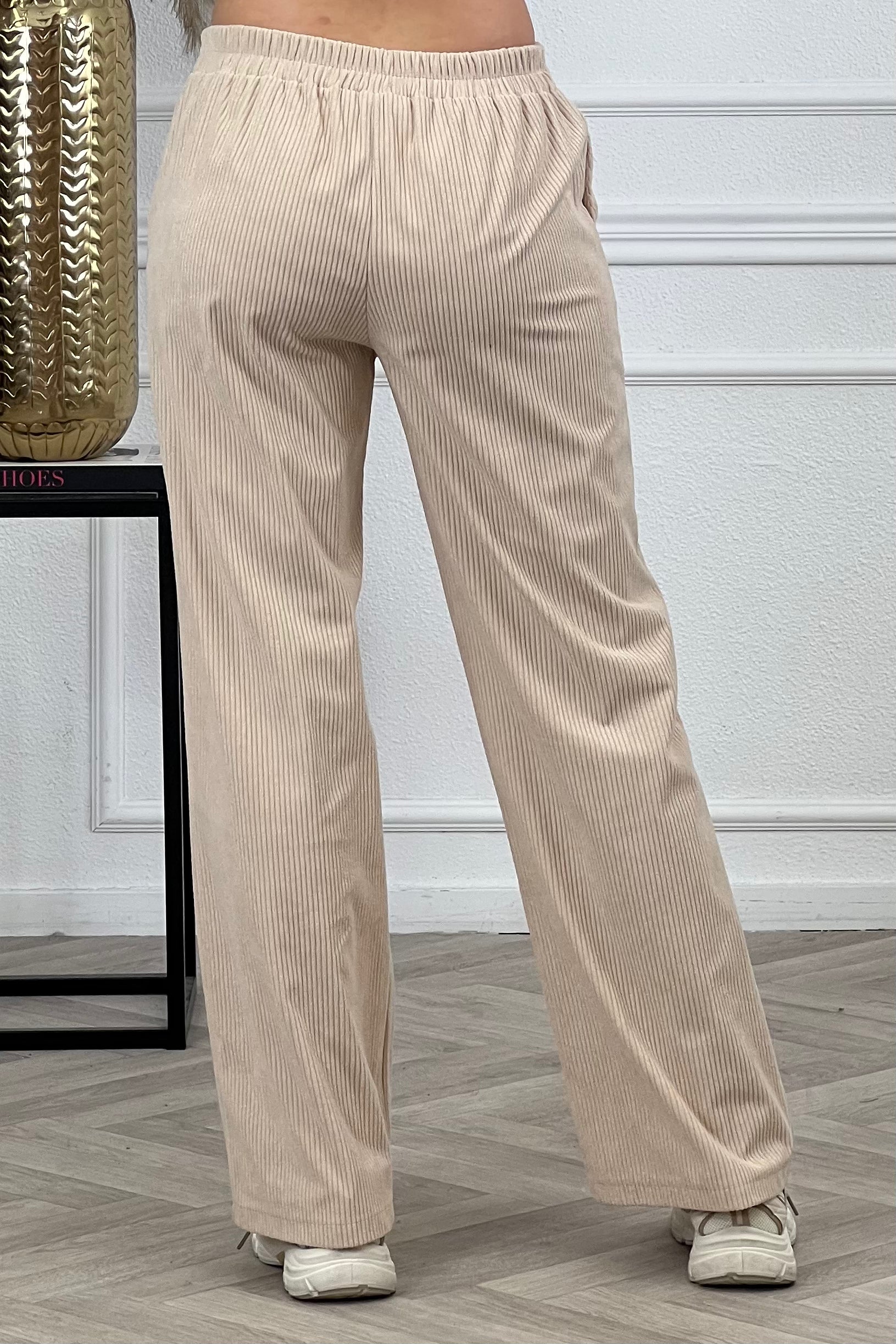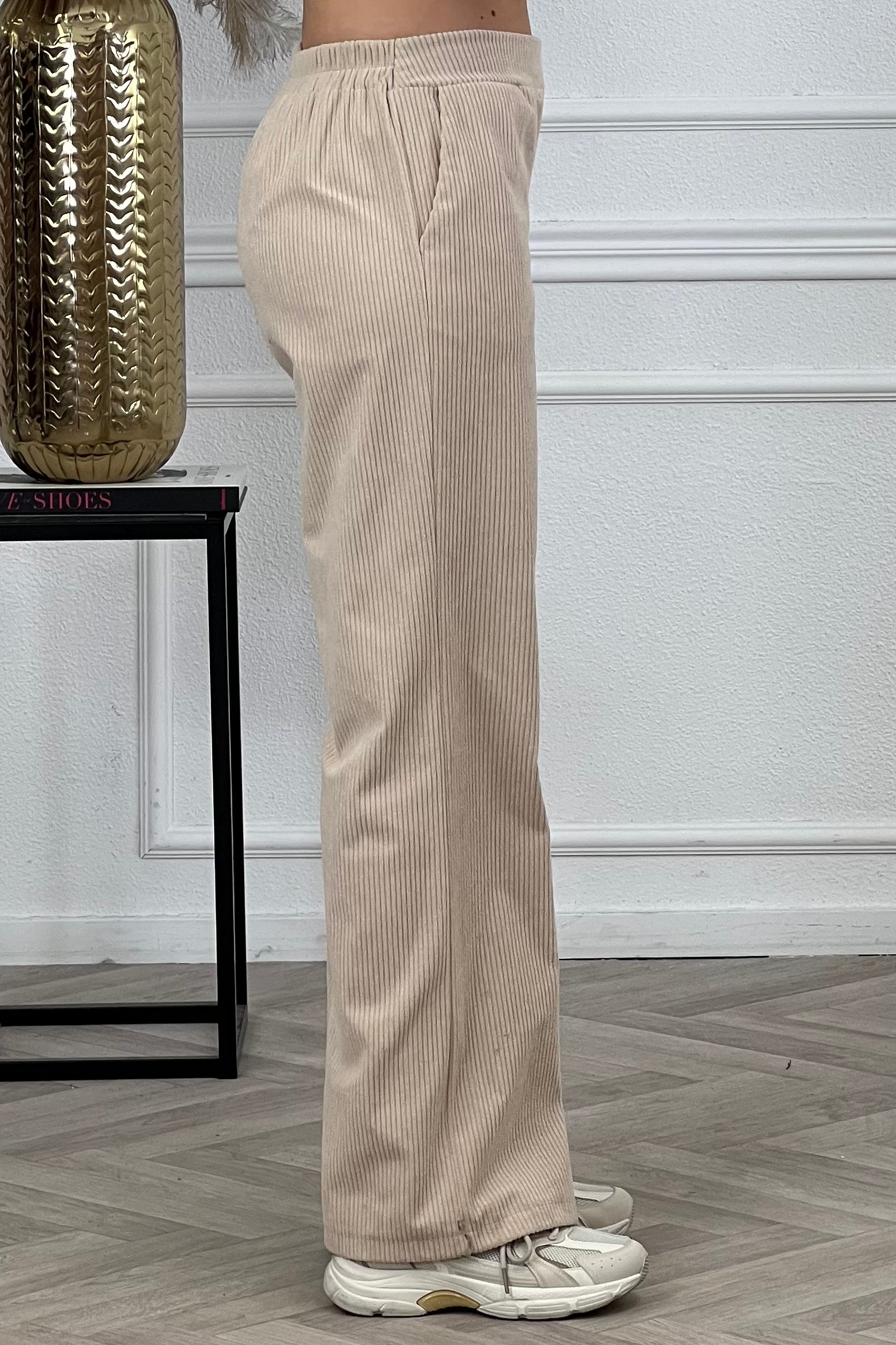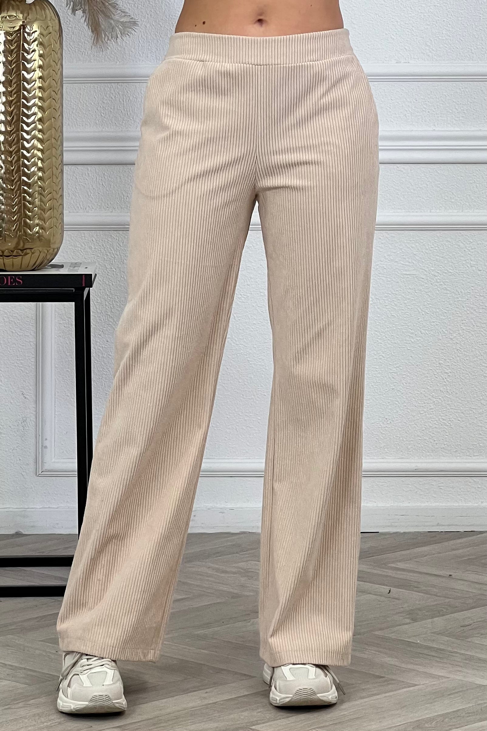 Deze heerlijke comfy broek heeft een mooie ribbed stof, shop hem nu in beige!