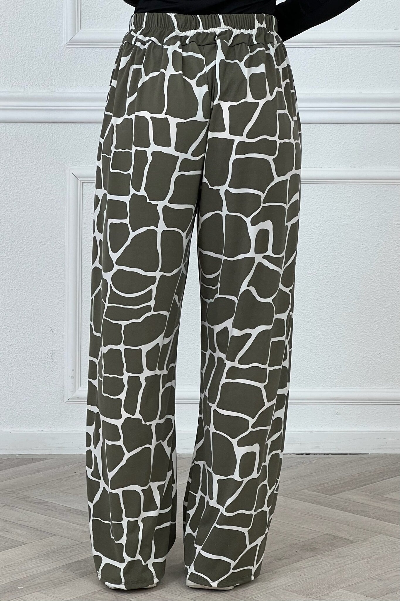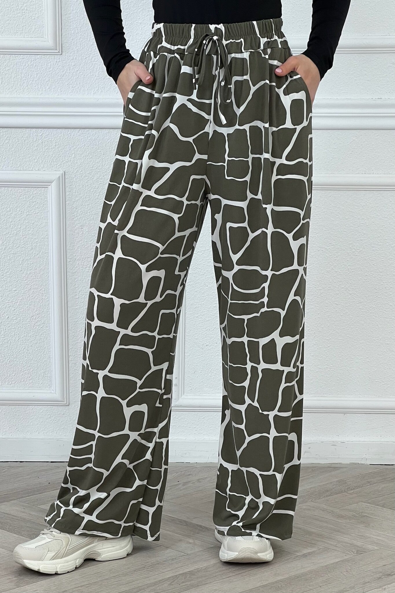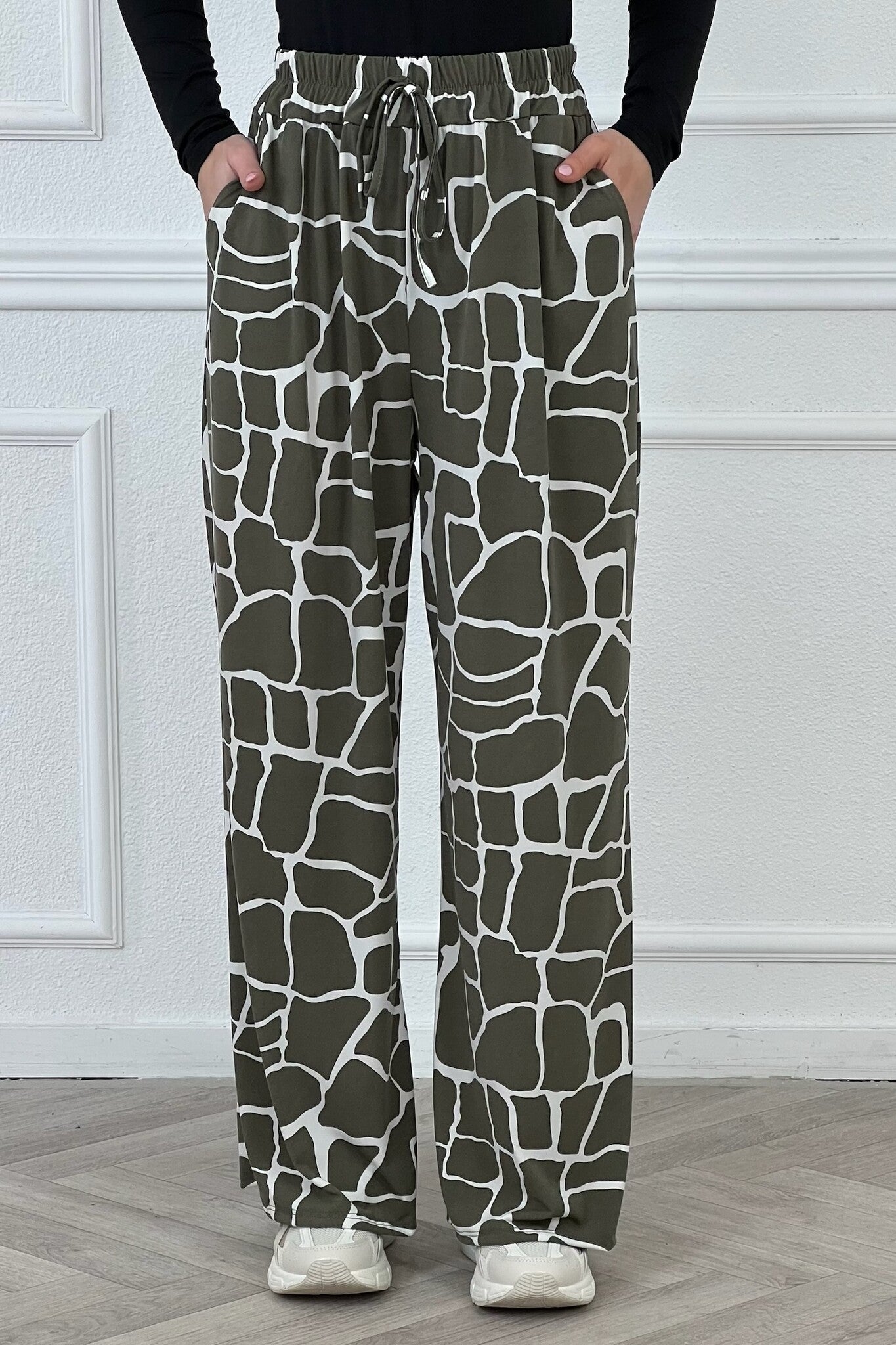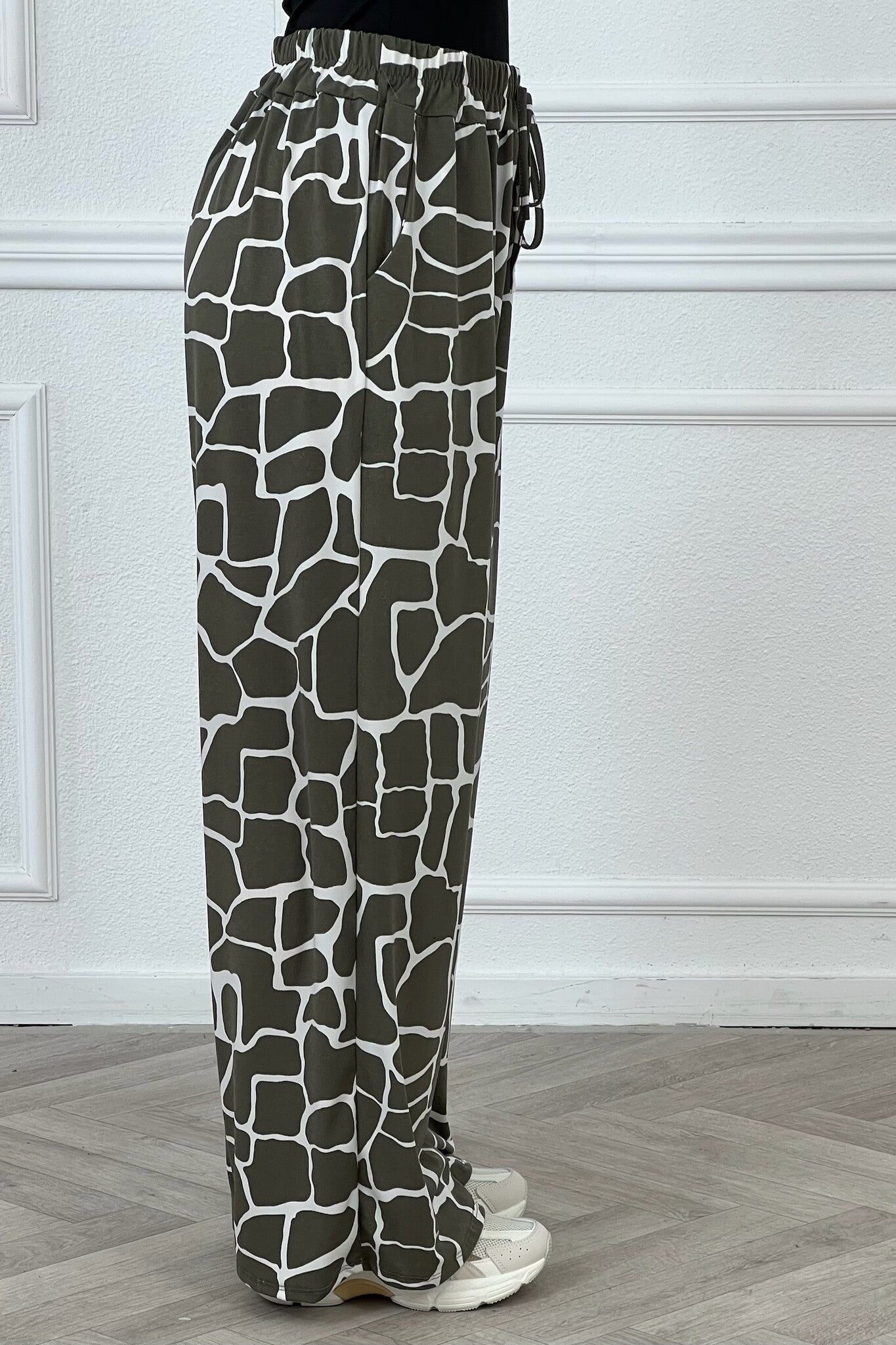 Een mooie wijdvallende broek met een elastieke band en twee touwtjes voor de sier! Shop hem in armygreen!