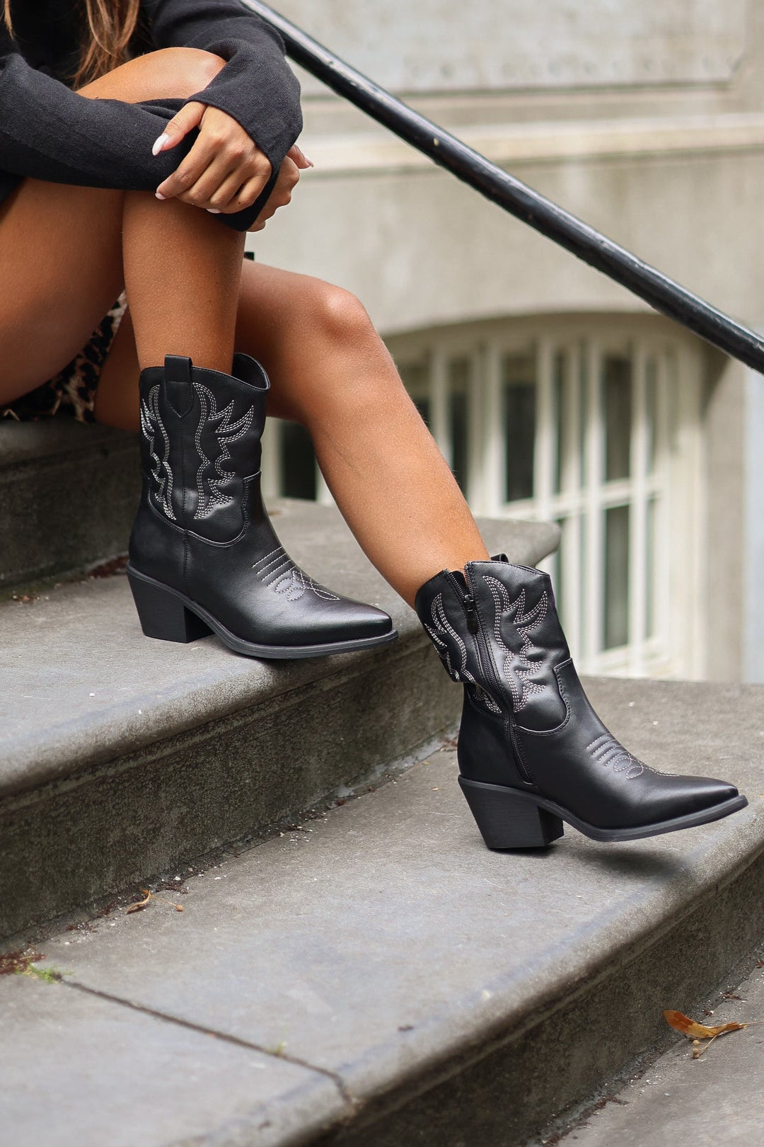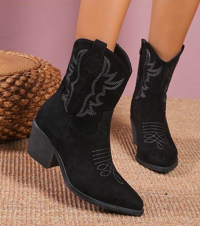 Perfect Short Cowboy Suede Boots - Antracite/Black