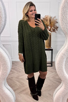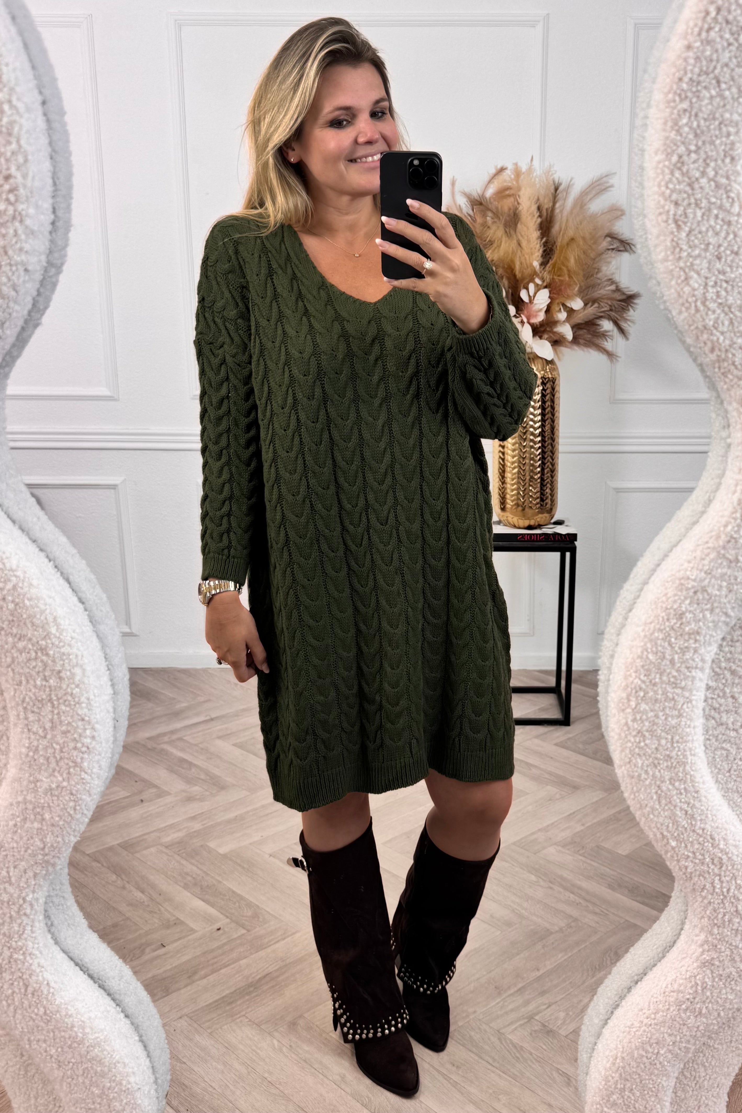 Een super dress voor deze tijd. Zit heerlijk comfy en warm, maar ziet er alsnog fantastisch uit! Shop de braided sweater dress nu in armygreen!