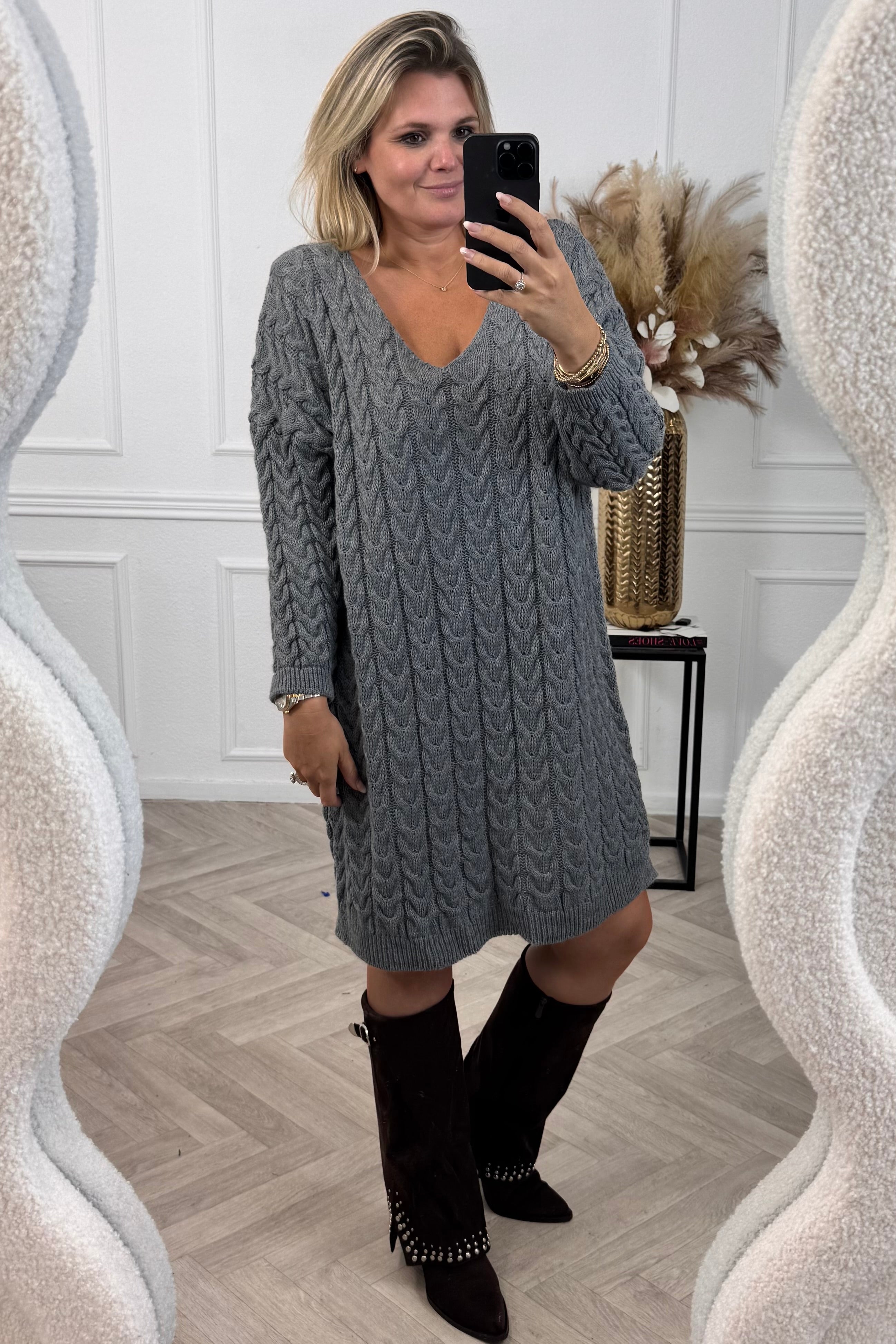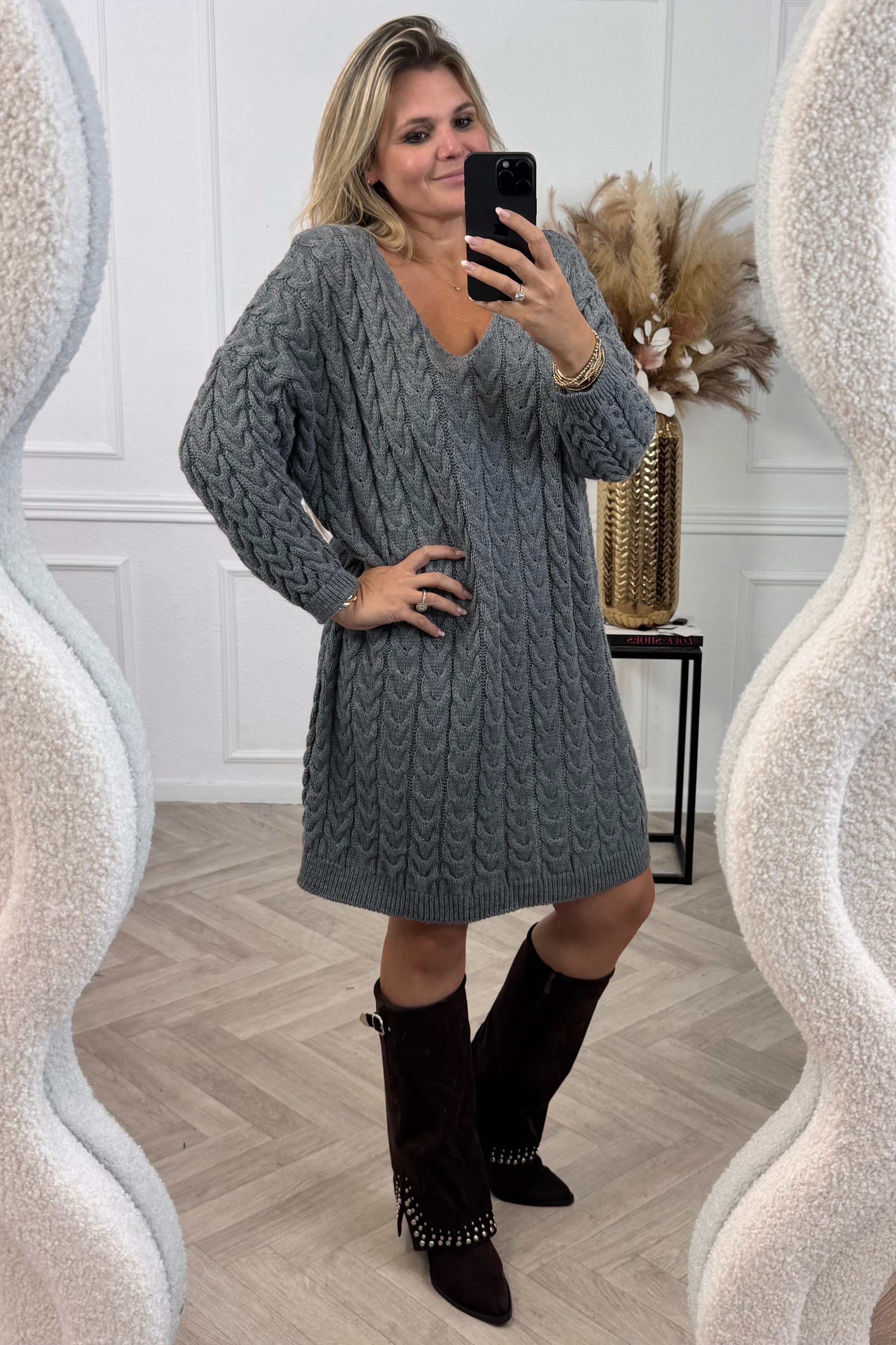 Een super dress voor deze tijd. Zit heerlijk comfy en warm, maar ziet er alsnog fantastisch uit! Shop de braided sweater dress nu in grey!
