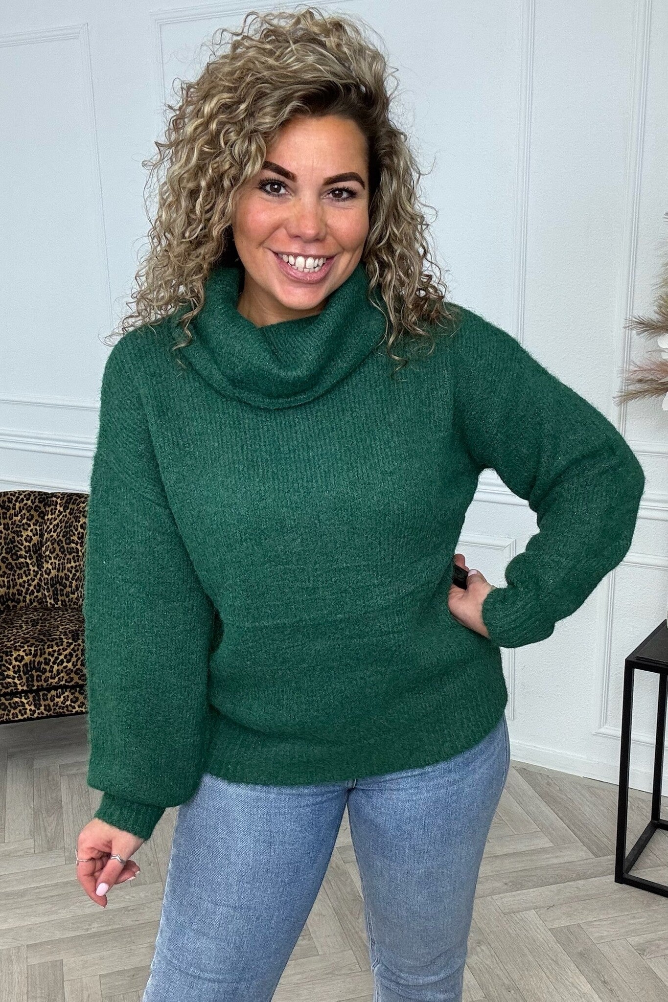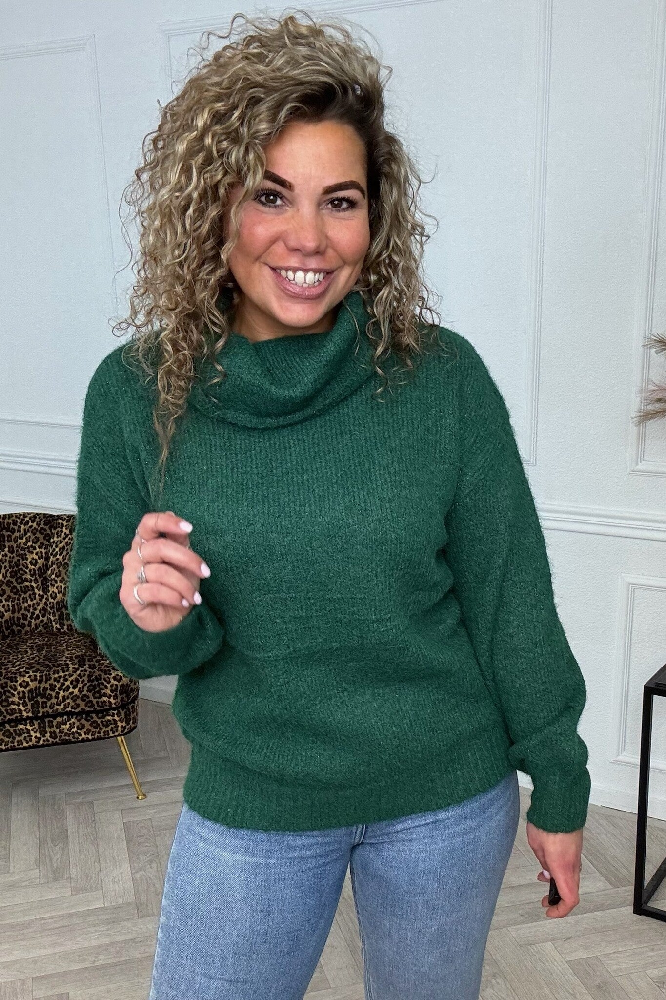 Deze sweater heeft een subtiele glitter en shop je in prachtig bottle green!