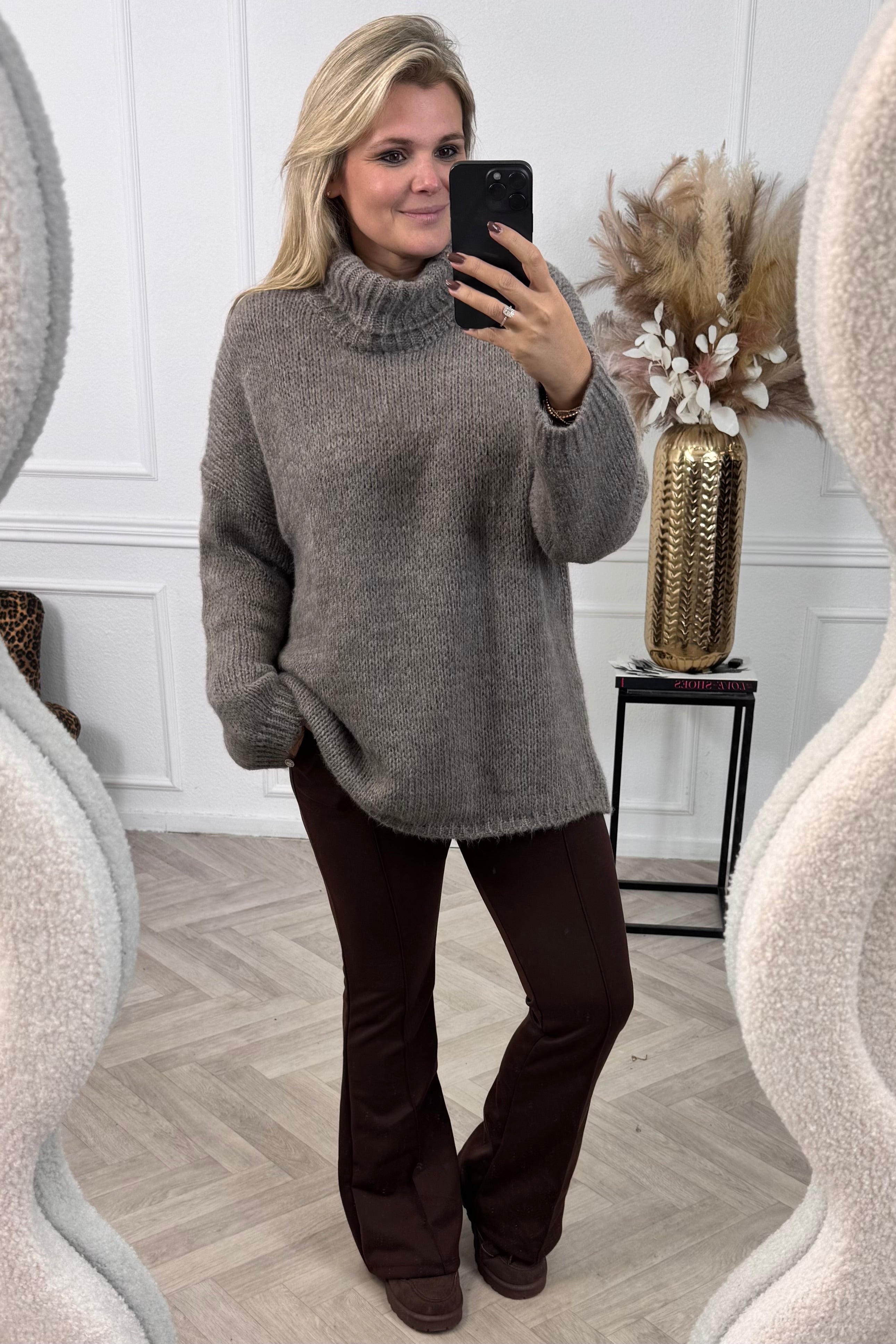 Ontzettend Leuke truien, en heerlijk warm met een coll! Shop de perfect knitted coll sweater nu in taupe!