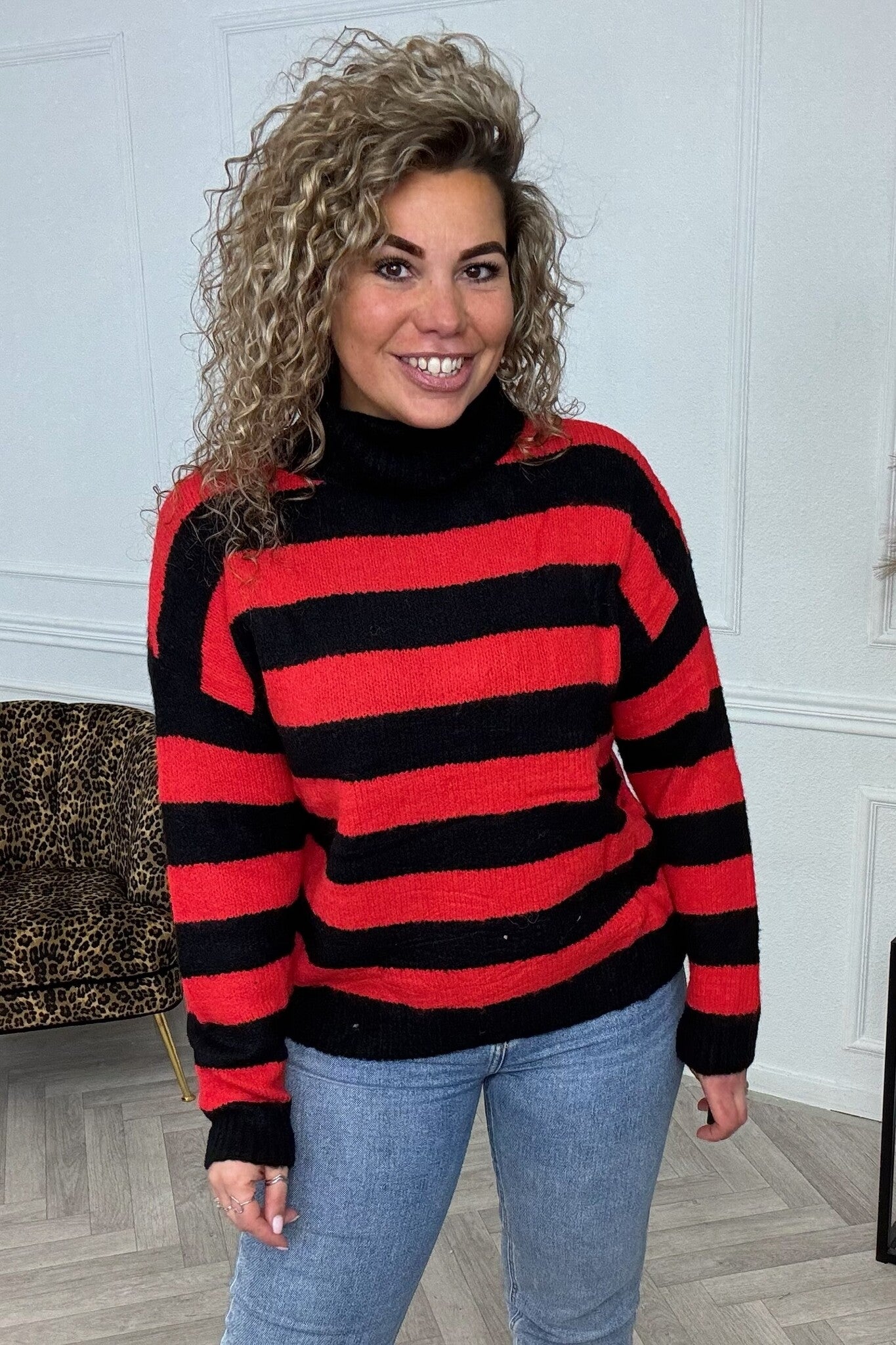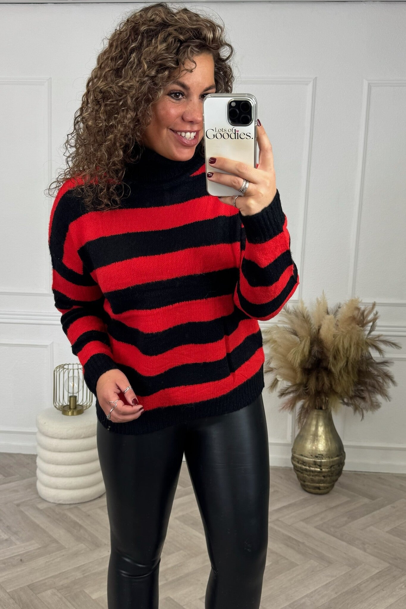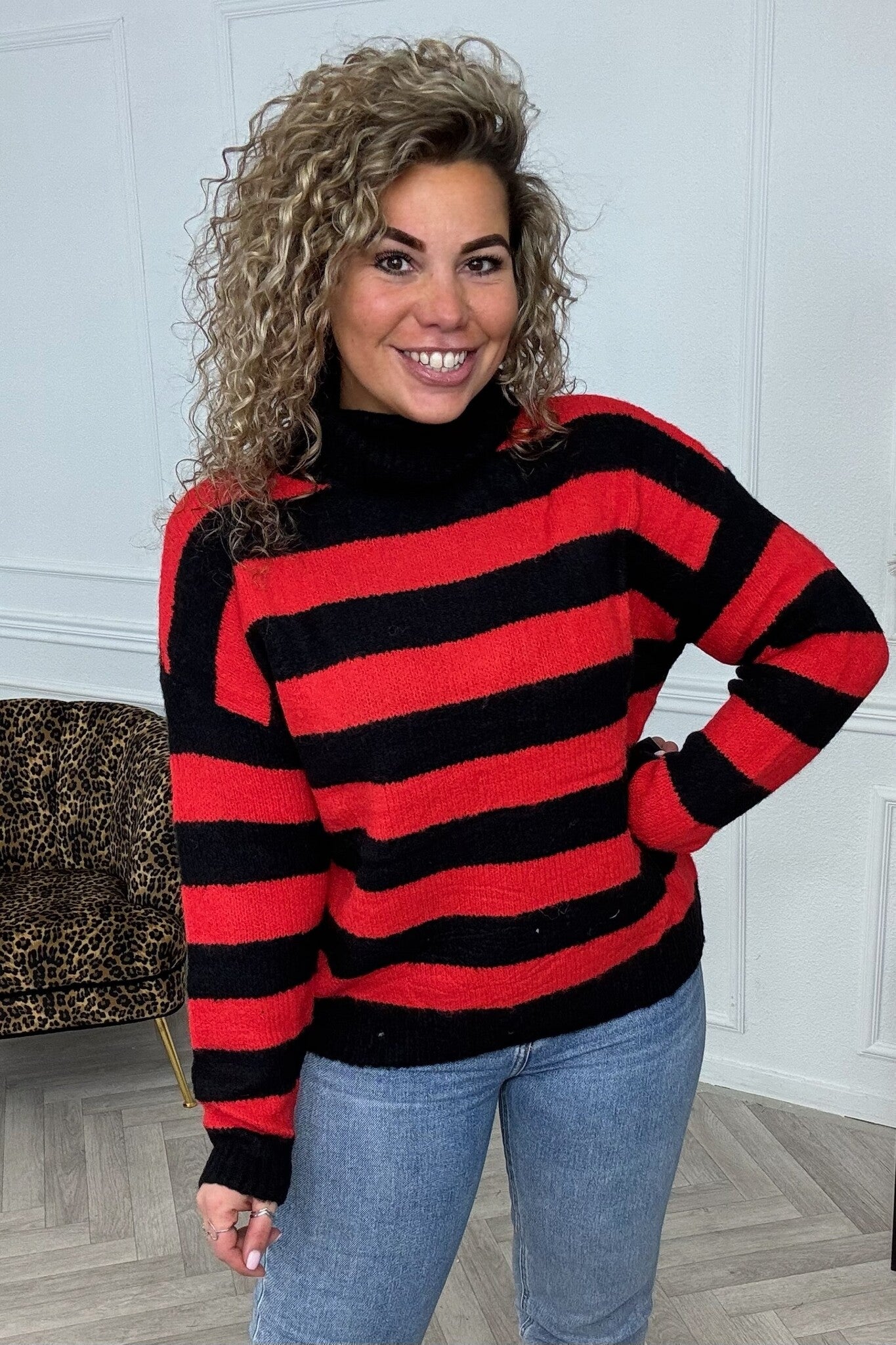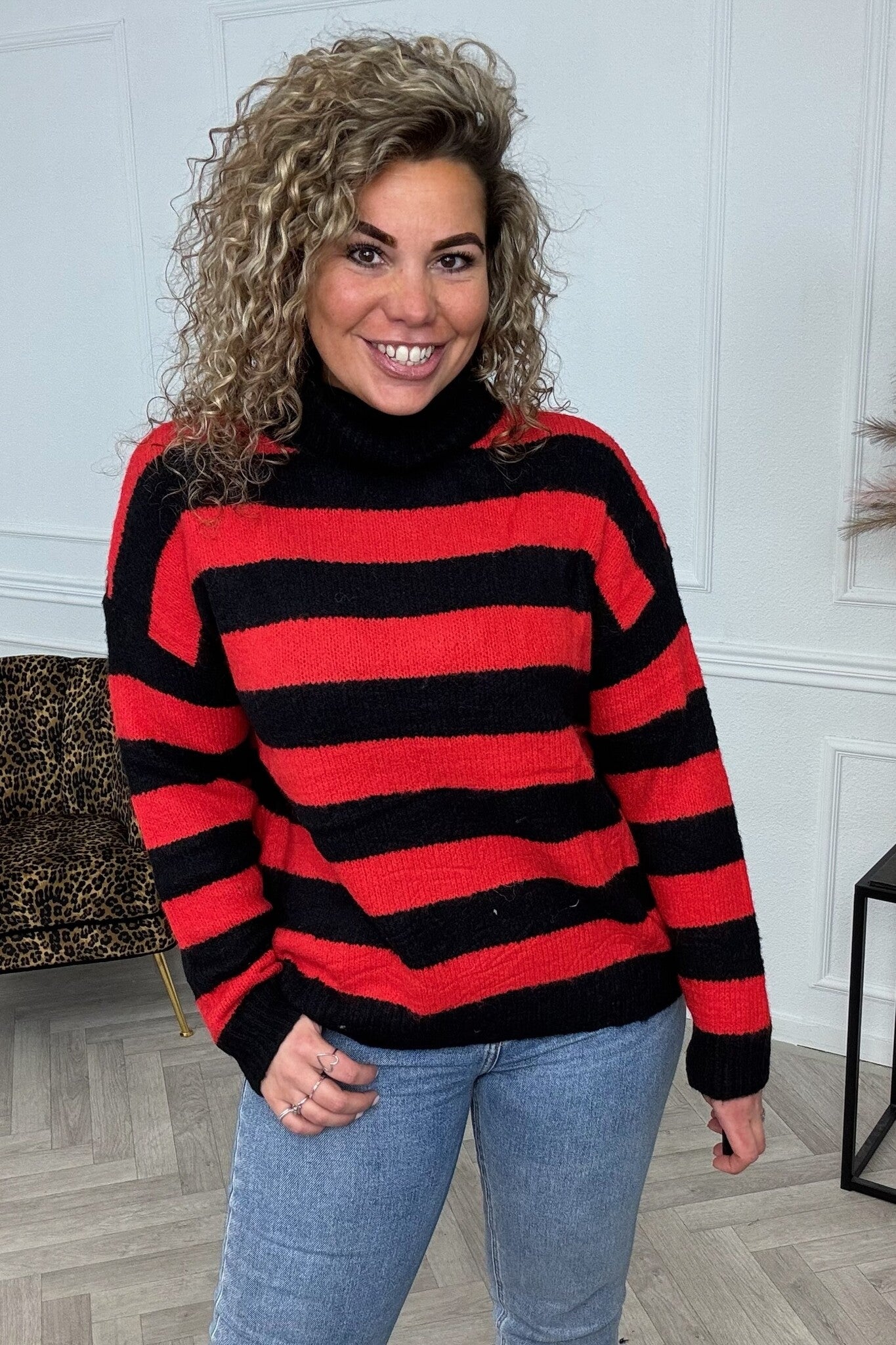 Houdt jezelf lekker warm op de koudste dagen met deze modieuze sweater! Shop hem in Black/Red!