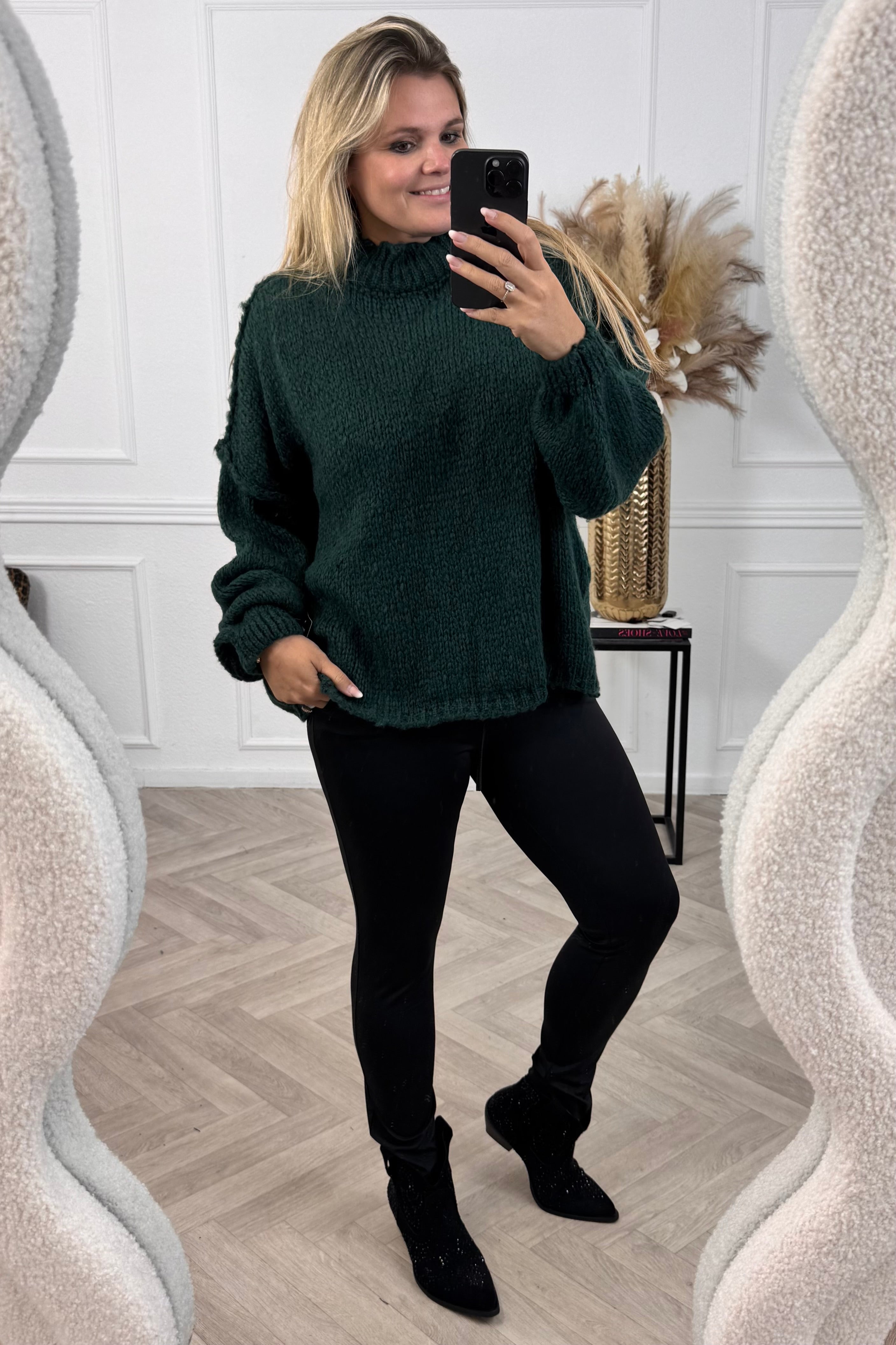 Ontzettend Leuke en Warme truien, met een turtle neck en trendy mauwen! Shop de turtle neck knitted sweater nu in bottle green!