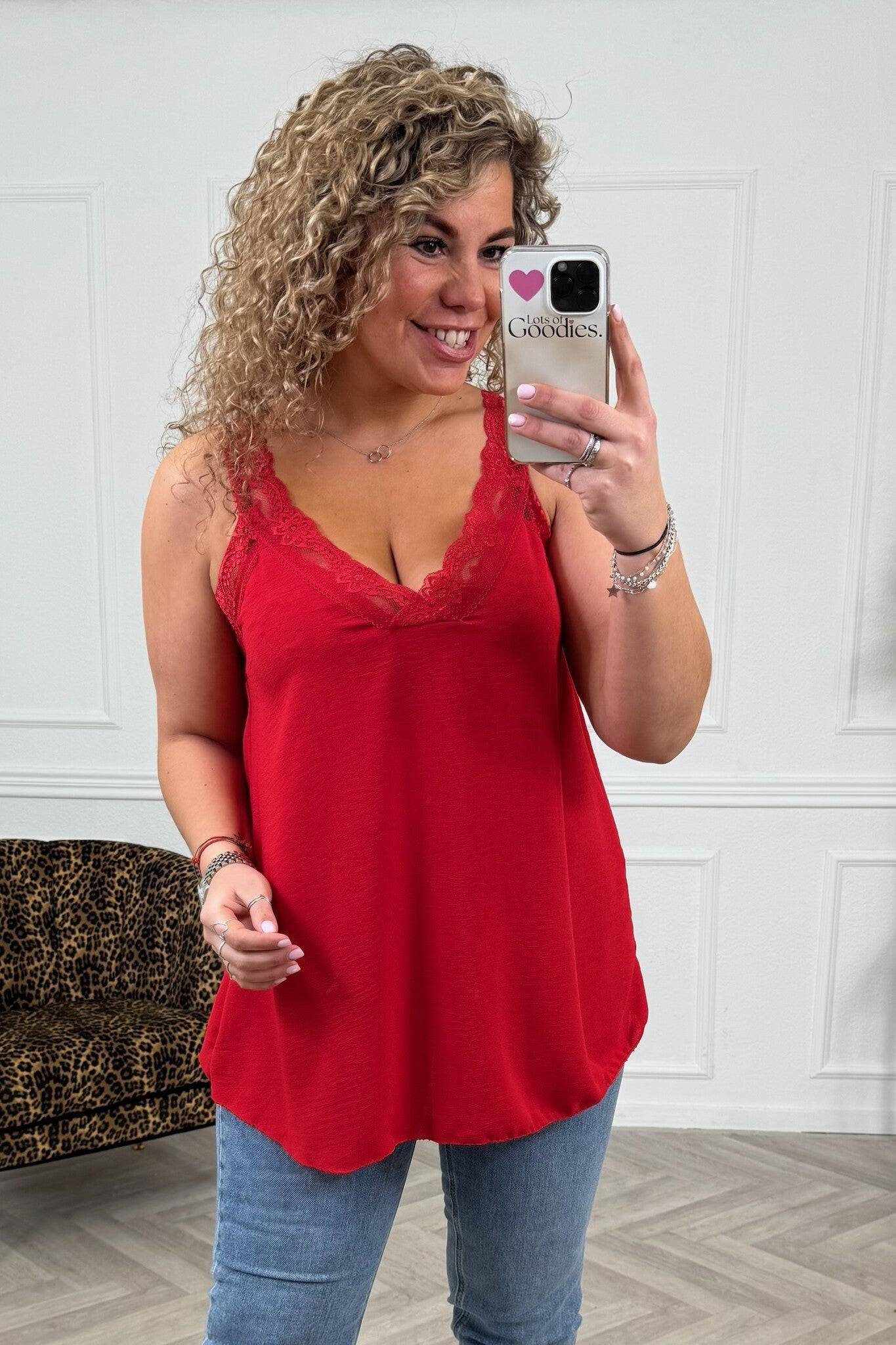 Curvy Sisi Lace Top - Red