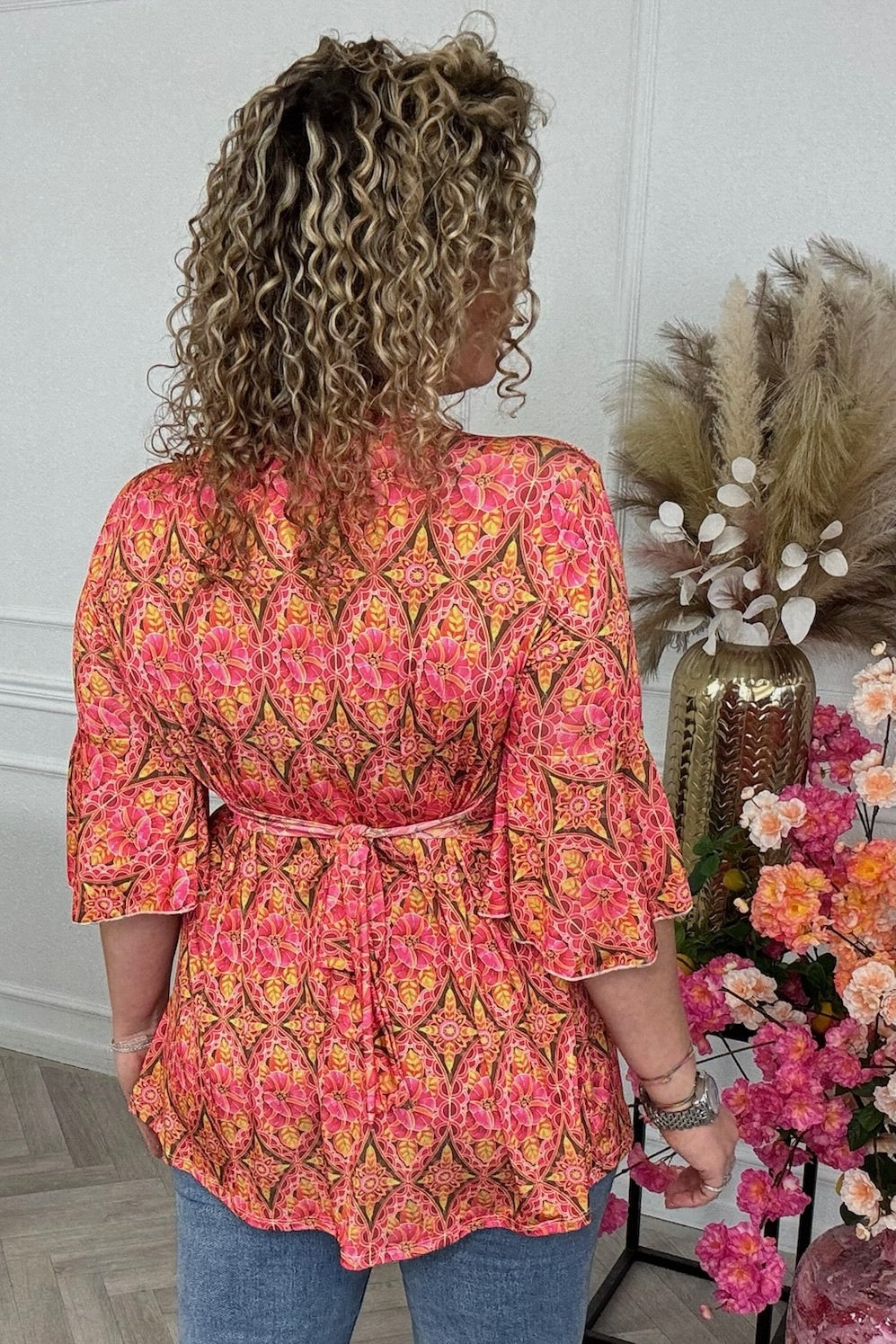 Curvy Knotted Flower Top - Pink/Orange/Oker