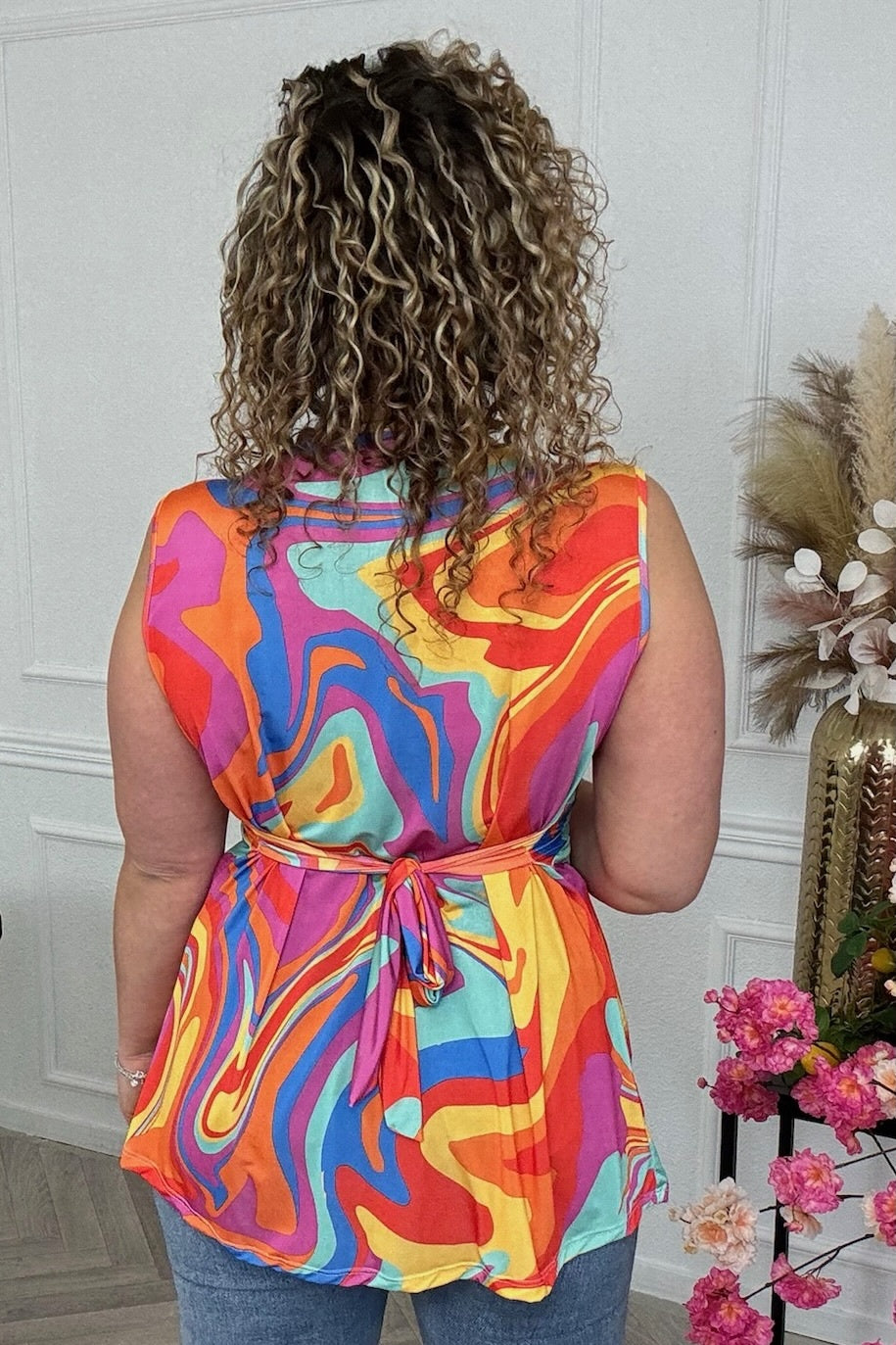 Curvy Knotted Sleeveless Fantasy Top - Pastel