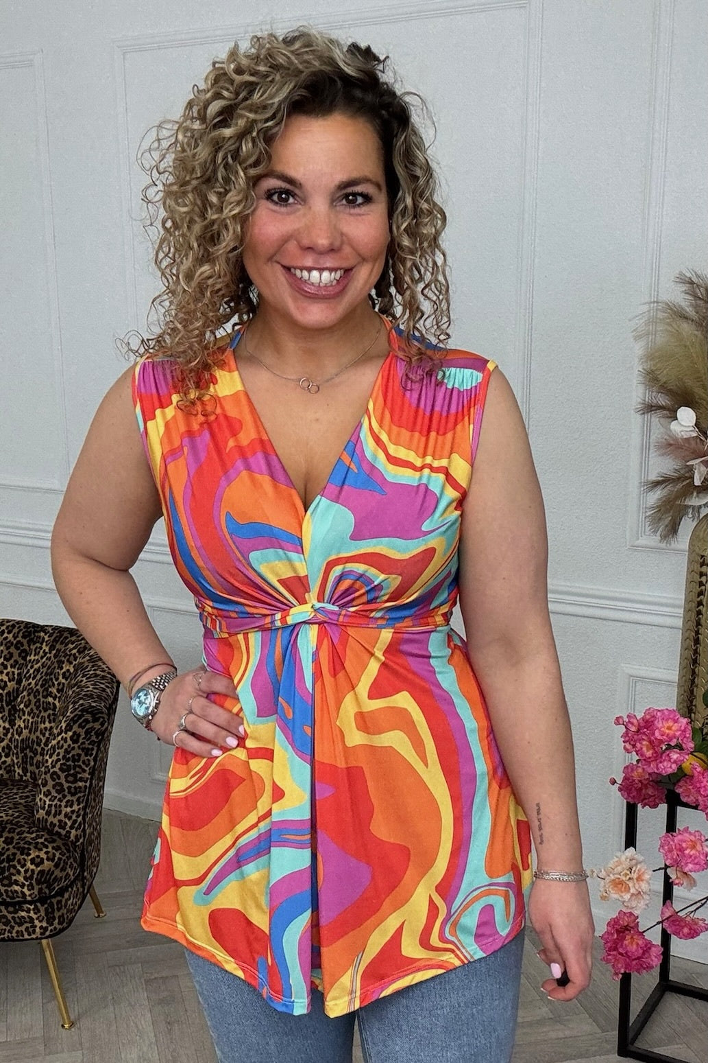 Curvy Knotted Sleeveless Eloise Top - Multicolor