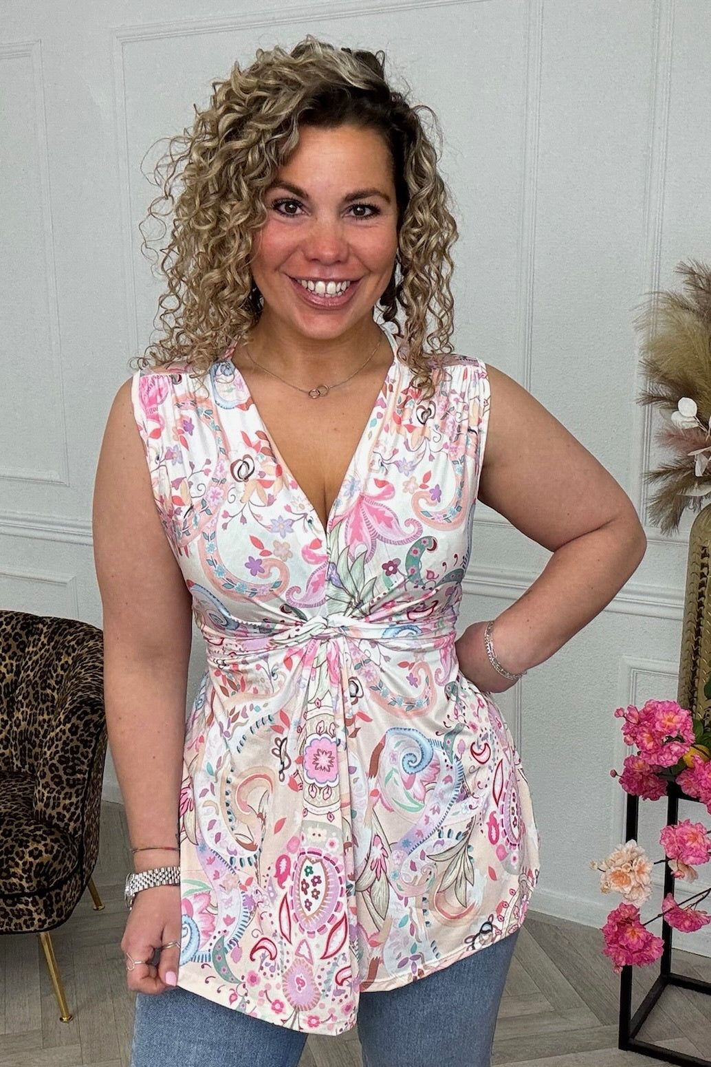 Curvy Knotted Sleeveless Stella Top - Pink