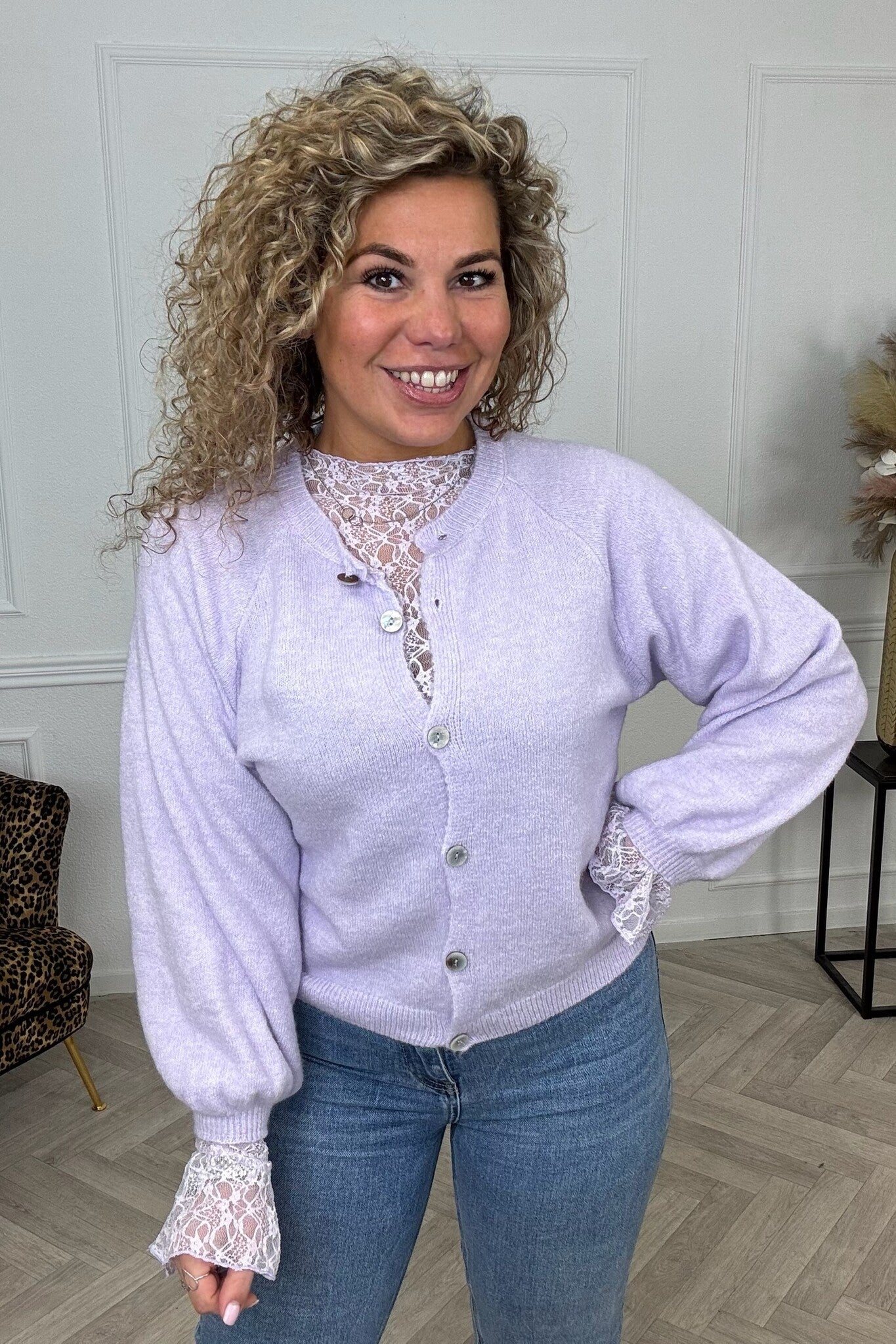 Dit leuke basic vestje is heerlijk heeft witte knopen en combineer je leuk met onze Lace tops voor een complete look. Super leuk voor winter! Shop hem in lila!