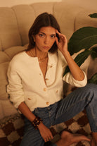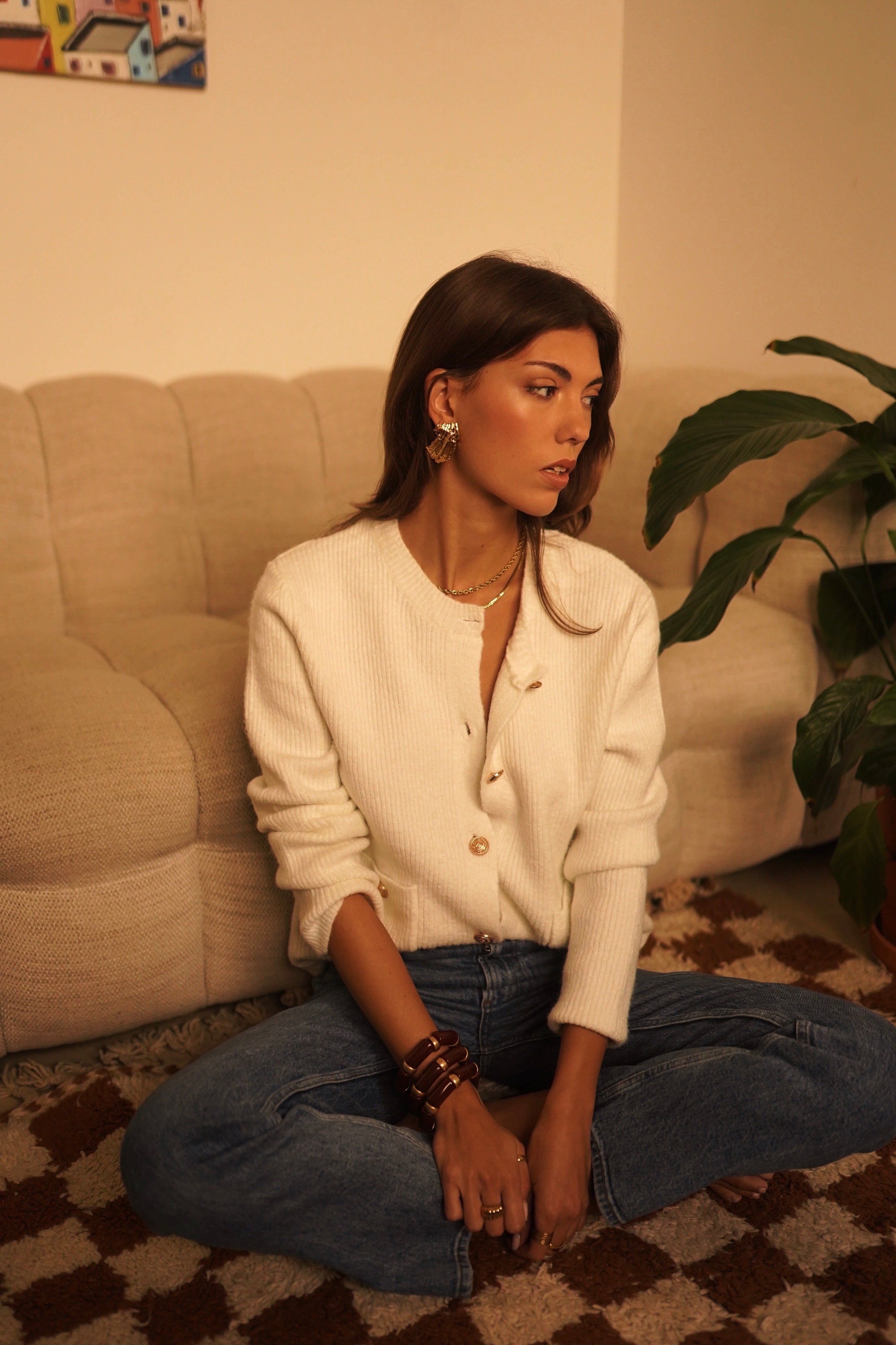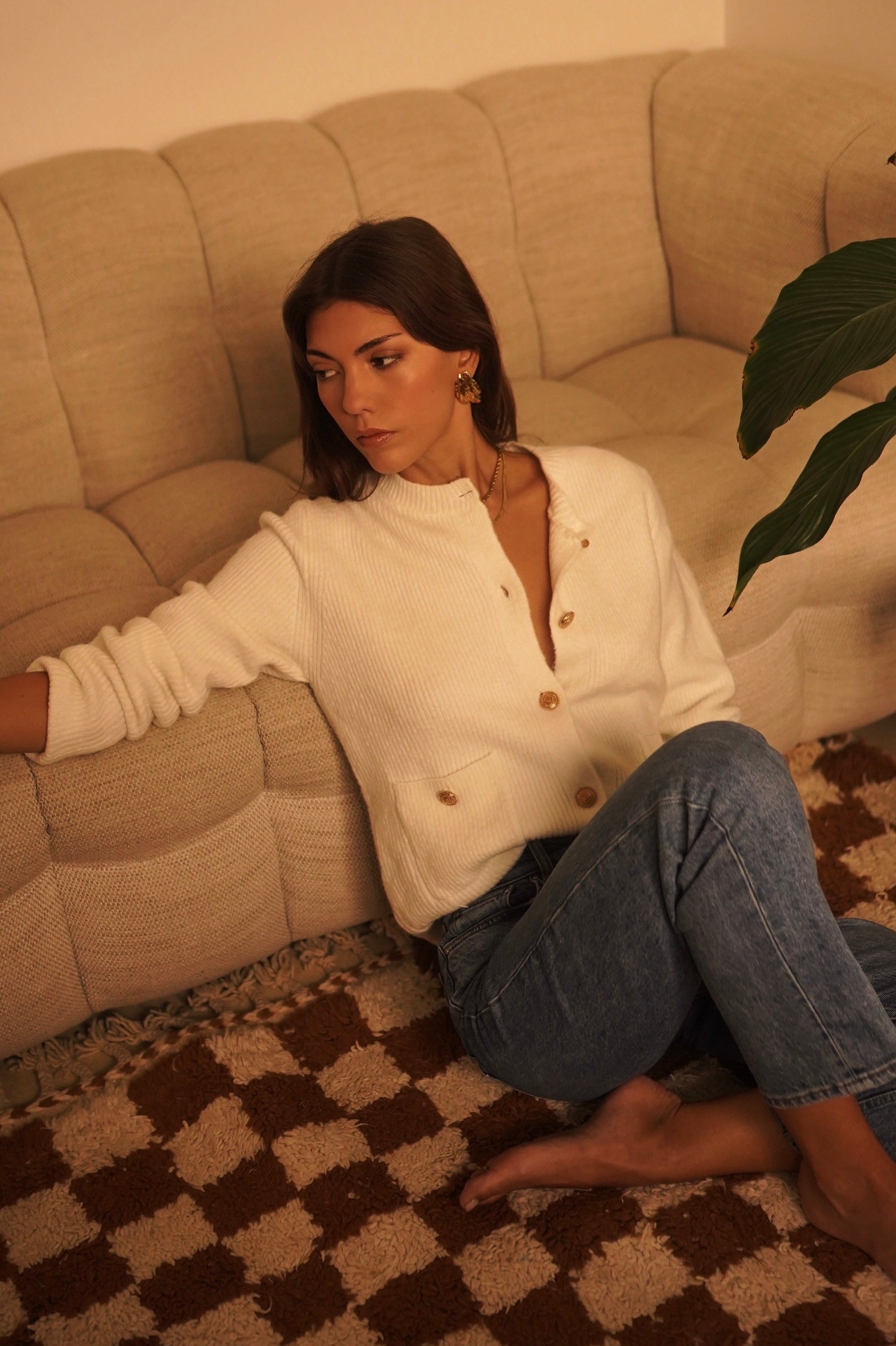 Dit prachtige vestje met gouden knoopjes is zo leuk! Shop hem nu in creme!