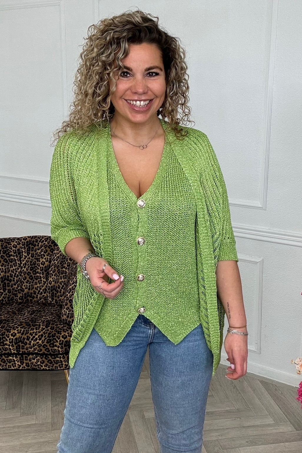Maak jouw outfit helemaal compleet met deze combideal van een vest & gilet, gemaakt van lurex (stof met een glittertje). Shop deze set in prachtige kleurtjes, zoals lime!